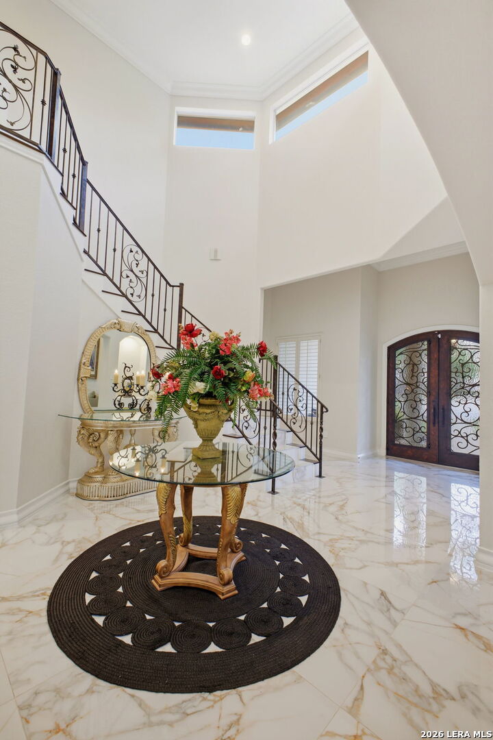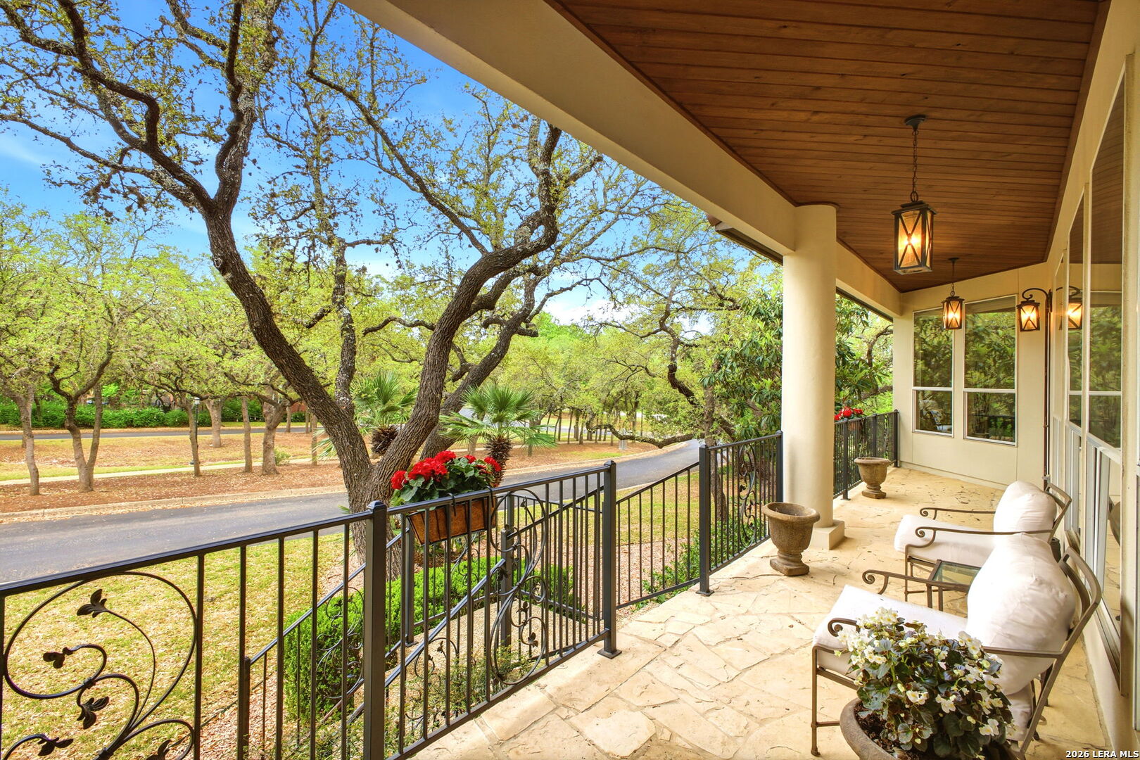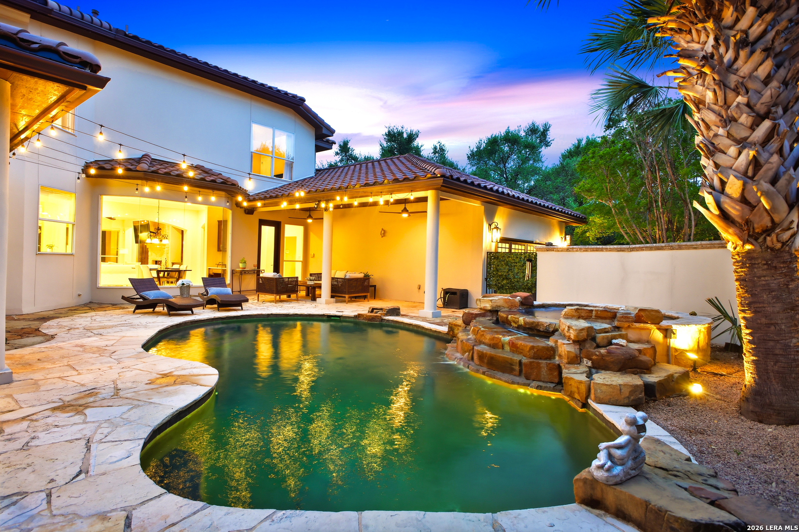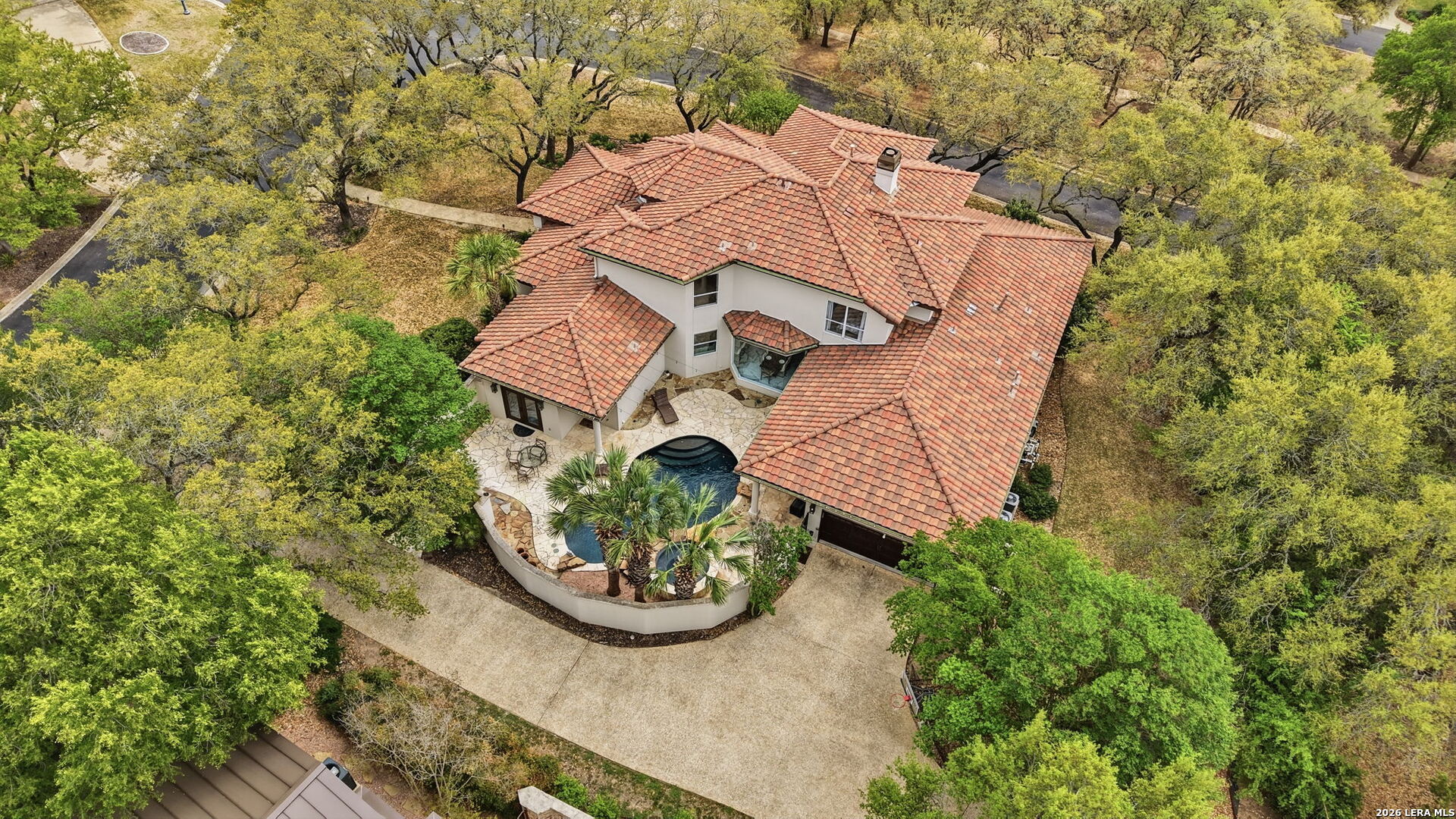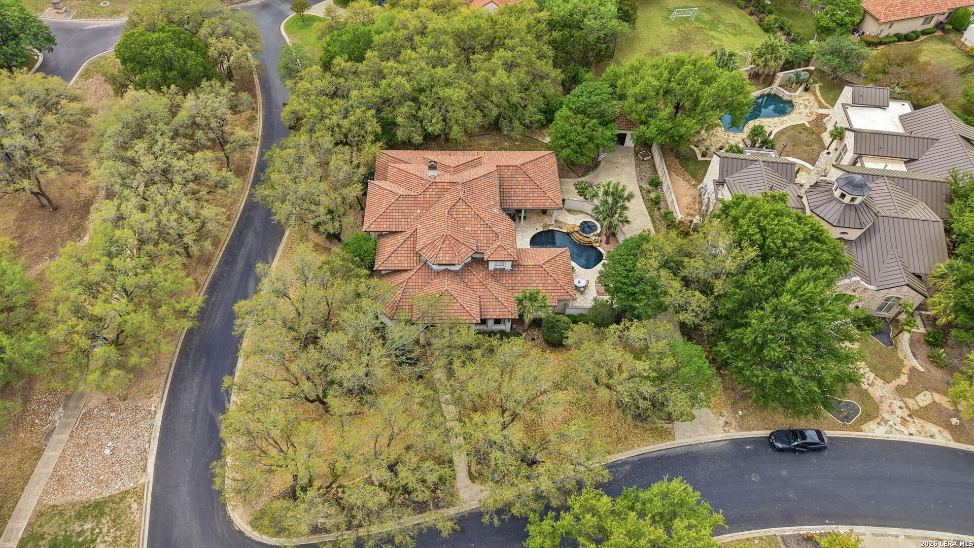 Welcome home to 1 Belcourt Place inside the Dominion! Enjoy over half an acre of mature trees and lush green space inside the highly sought after neighborhood. Host your friends at your pool equipped with the Outdoor projector and sound system entertainment package everyone will be talking about. Send your kiddos off to school with the bus route stopping right at your house. Walk out your front door and enjoy the holiday festivities on the greenbelt directly in front of your home. You even have your very own Golf Cart Garage! Seller has invested significantly in high-quality renovations throughout, including a fully updated chef's kitchen with quartz countertops, backsplash, farmhouse sink, premium faucet, new appliances, and induction cooktop with Sub-Zero refrigerator. Flooring and finishes have been upgraded across the home, creating a modern, move-in-ready luxury feel Home offers 4 bedrooms, 5 baths, Office, Three spacious living areas on the main level plus an additional upstairs living area, and a large formal dining room with direct access to the pool-perfect for large gatherings. The backyard is a private retreat with a stunning heated pool, spa, covered patio, and three palm trees-perfect for entertaining, Two balconies overlook a park, with walking access to scenic Dominion lakes and trails. Located in a highly desirable school zone. The spacious ground floor primary suite features a glamorous bathroom with dual vanities, dual closets, and a walk-through shower and soaking tub. Gorgeous hard wood flooring throughout the Master bedroom. The primary suite features a stunning wall of windows overlooking the serene park and mature trees, filling the space with natural light. Enjoy direct access to a spacious private balcony-perfect for morning coffee or unwinding in the evening surrounded by sunshine and the peaceful sounds of nature. The windows are enhanced with upgraded motorized shades, easily controlled at the touch of a button for added comfort and convenience. The breakfast area is highlighted by a dramatic wall of windows overlooking the private pool and palm trees, bringing in abundant natural light and a true indoor-outdoor living experience. This home is a rare find, ideally located directly across from a serene park, offering exceptional privacy with no homes immediately in front. The spacious main level features multiple living areas, creating an open and comfortable layout that feels both expansive and highly functional. A full bathroom with direct access from the pool area adds everyday convenience. The spacious main level features multiple living areas, creating an open and comfortable layout that feels both expansive and highly functional. This home is truly one of a kind!