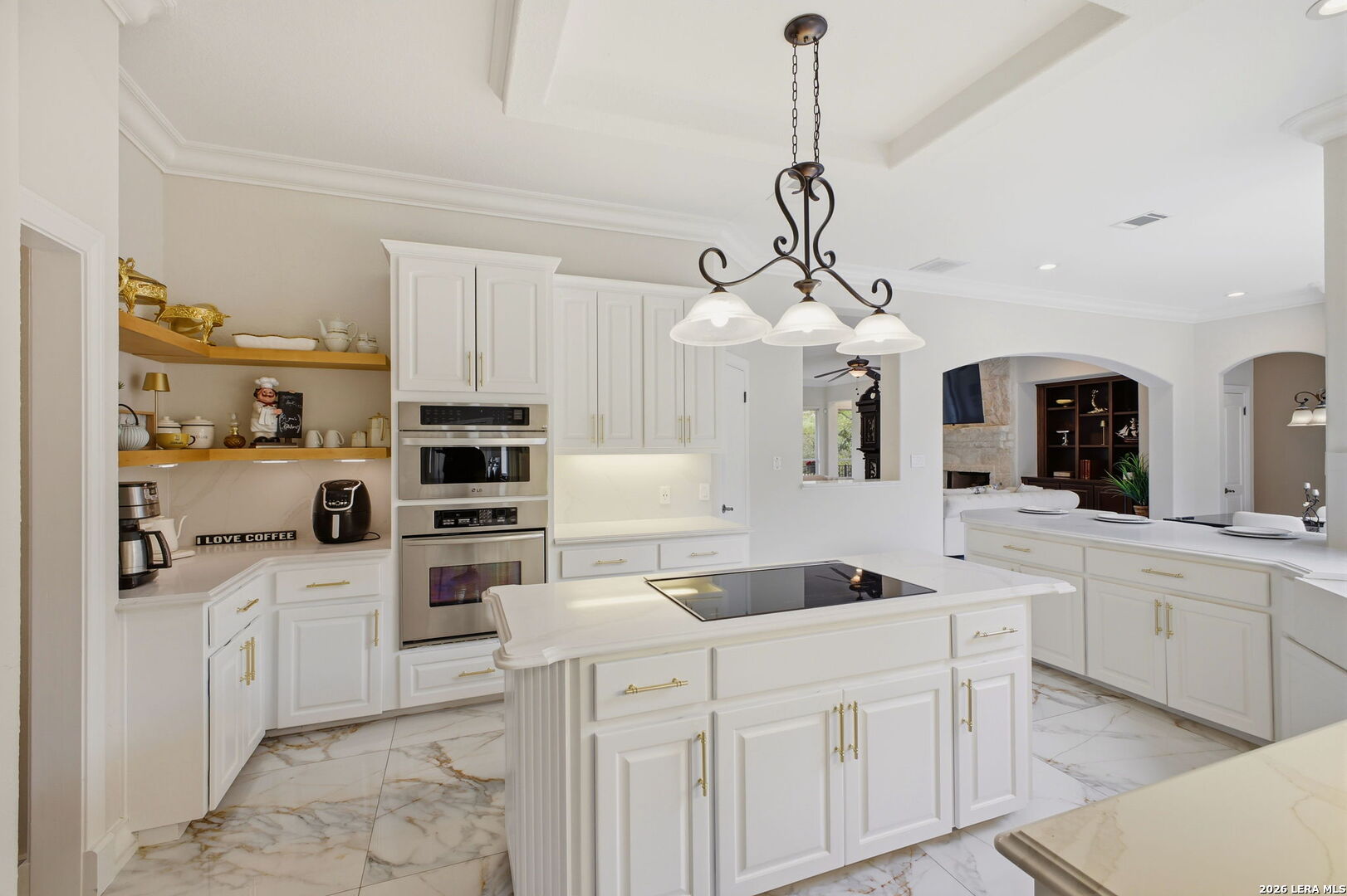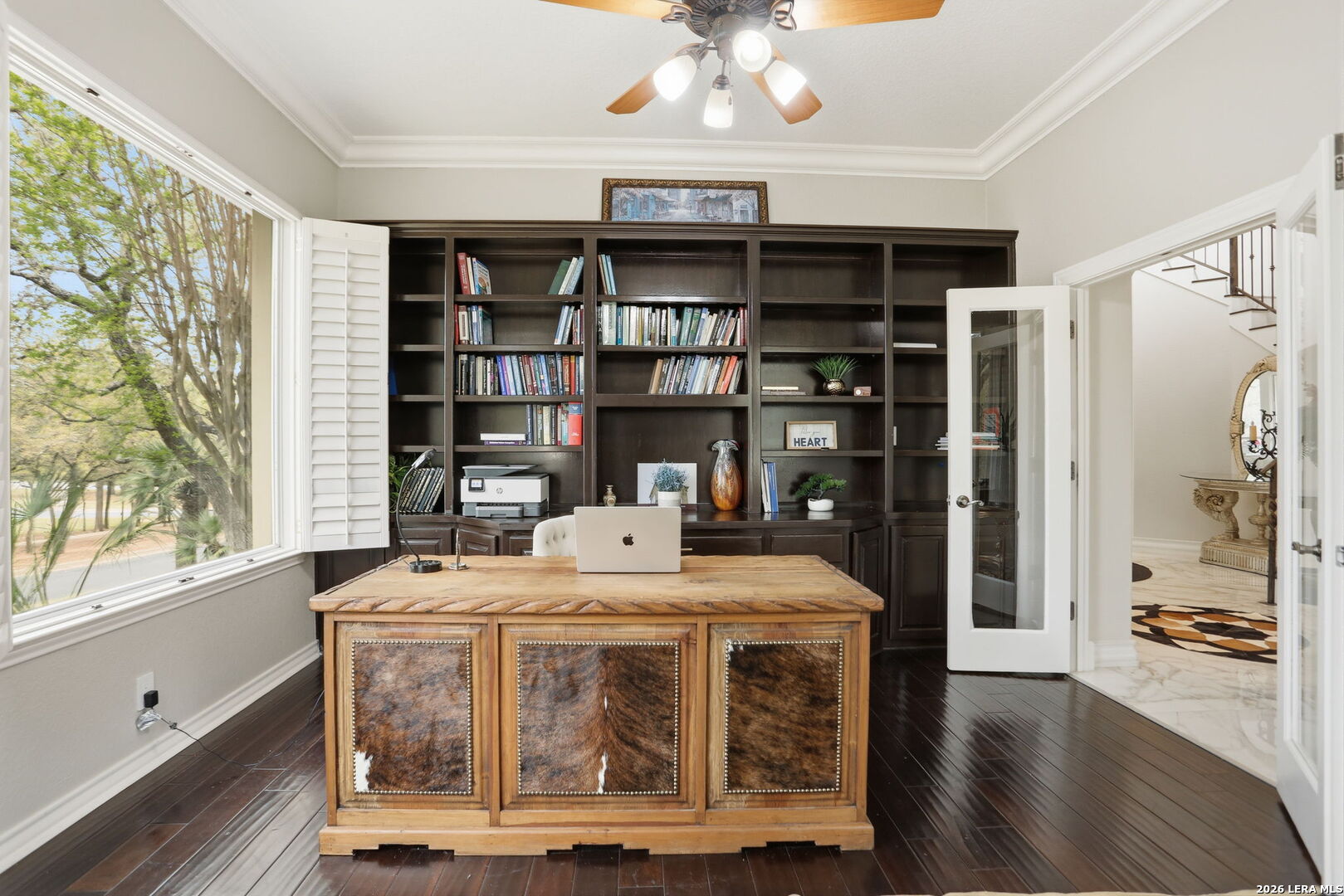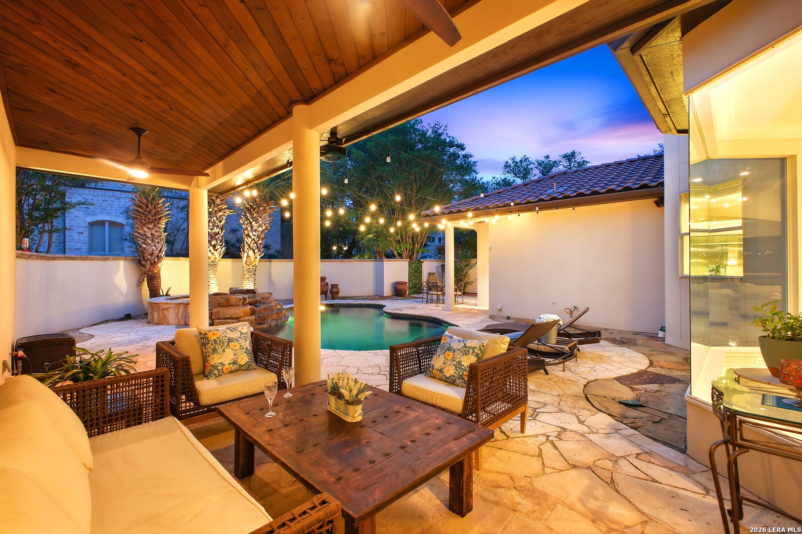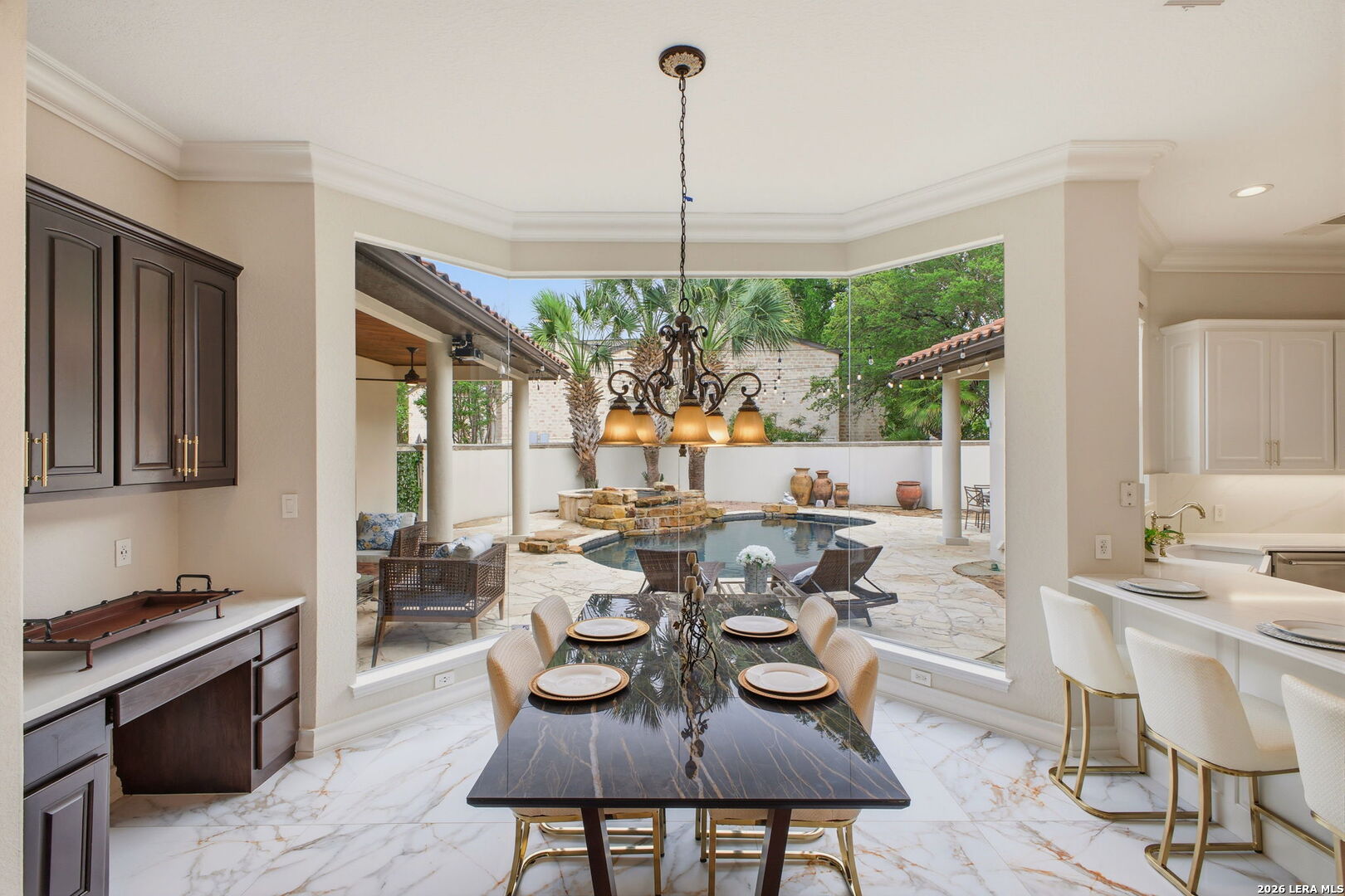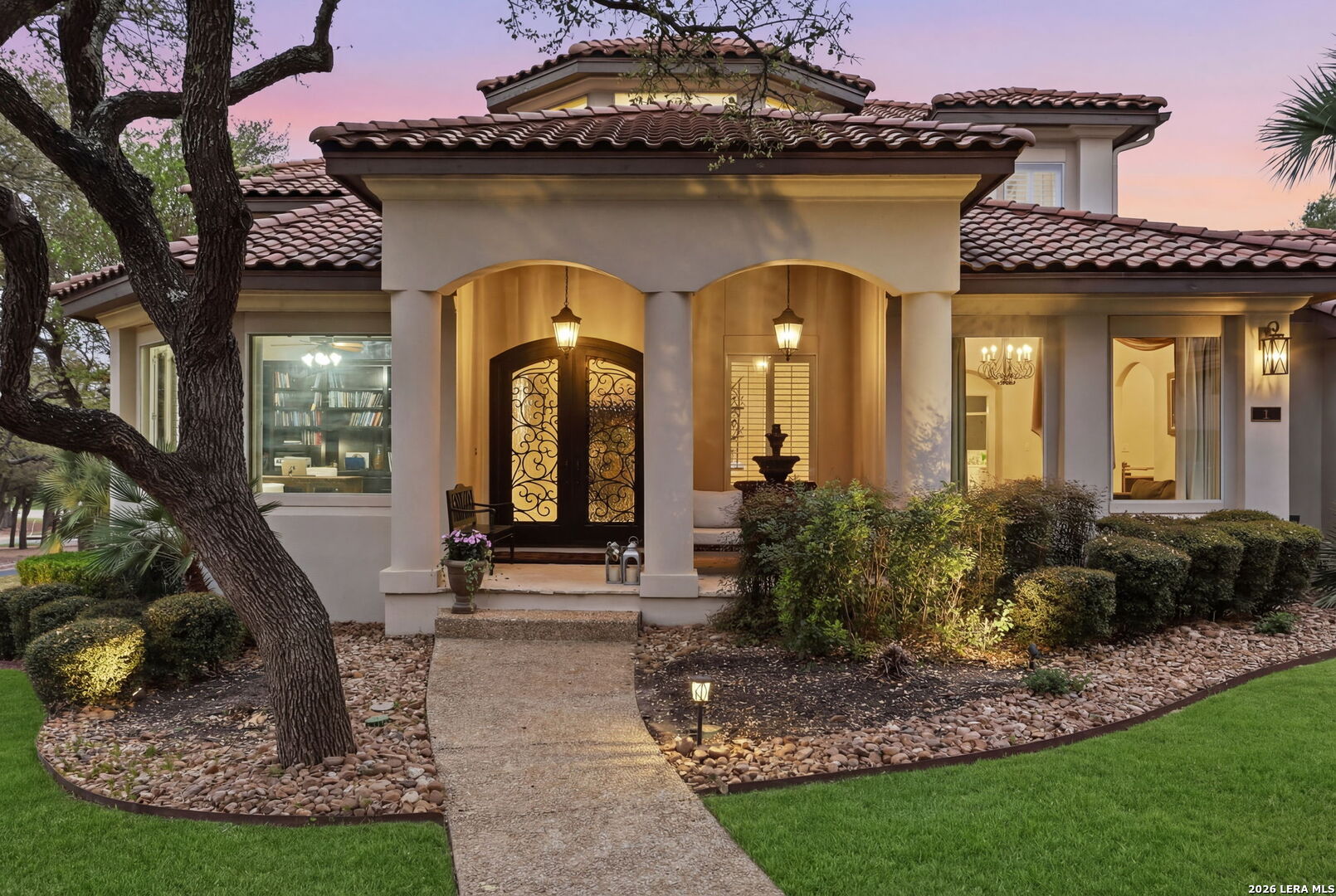 Welcome home to 1 Belcourt Place inside the Dominion! Enjoy over half an acre of mature trees and lush green space inside the highly sought after neighborhood. Host your friends at your pool equipped with the Outdoor projector and sound system entertainment package everyone will be talking about. Send your kiddos off to school with the bus route stopping right at your house. Walk out your front door and enjoy the holiday festivities on the greenbelt directly in front of your home. You even have your very own Golf Cart Garage! Seller has invested significantly in high-quality renovations throughout, including a fully updated chef's kitchen with quartz countertops, backsplash, farmhouse sink, premium faucet, new appliances, and induction cooktop with Sub-Zero refrigerator. Flooring and finishes have been upgraded across the home, creating a modern, move-in-ready luxury feel Home offers 4 bedrooms, 5 baths, Office, Three spacious living areas on the main level plus an additional upstairs living area, and a large formal dining room with direct access to the pool-perfect for large gatherings. The backyard is a private retreat with a stunning heated pool, spa, covered patio, and three palm trees-perfect for entertaining, Two balconies overlook a park, with walking access to scenic Dominion lakes and trails. Located in a highly desirable school zone. The spacious ground floor primary suite features a glamorous bathroom with dual vanities, dual closets, and a walk-through shower and soaking tub. Gorgeous hard wood flooring throughout the Master bedroom. The primary suite features a stunning wall of windows overlooking the serene park and mature trees, filling the space with natural light. Enjoy direct access to a spacious private balcony-perfect for morning coffee or unwinding in the evening surrounded by sunshine and the peaceful sounds of nature. The windows are enhanced with upgraded motorized shades, easily controlled at the touch of a button for added comfort and convenience. The breakfast area is highlighted by a dramatic wall of windows overlooking the private pool and palm trees, bringing in abundant natural light and a true indoor-outdoor living experience. This home is a rare find, ideally located directly across from a serene park, offering exceptional privacy with no homes immediately in front. The spacious main level features multiple living areas, creating an open and comfortable layout that feels both expansive and highly functional. A full bathroom with direct access from the pool area adds everyday convenience. The spacious main level features multiple living areas, creating an open and comfortable layout that feels both expansive and highly functional. This home is truly one of a kind!