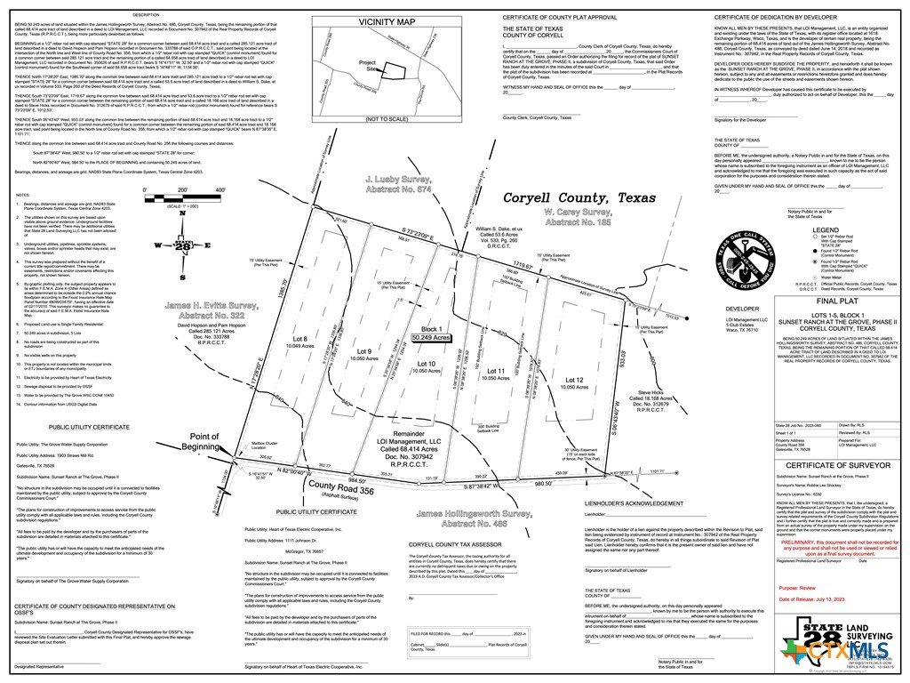 Sunset Ranch at The Grove: Tracts 8-12 Now Available! Tract 4 - Recently Platted Subdivision. Gorgeous and restricted 10+ acre treed lot in between Gatesville, Temple and Moody. Country life doesn't get any better than this! Turn-key tract is just minutes away from Hwy 36, I-35 and Lake Belton. Premier lot that has good elevation change with stunning views, a nice country feel, beautiful sunsets and cool breezes. Fenced, electric entrance, Heart of Texas electric. water meter and survey included in the purchase....all you need to do is pick your homesite. Gatesville ISD. Additional tracts available. Please refer to the subdivision map. Ag Exempt. Multiple Lot discount. This is a restricted and platted subdivision.
