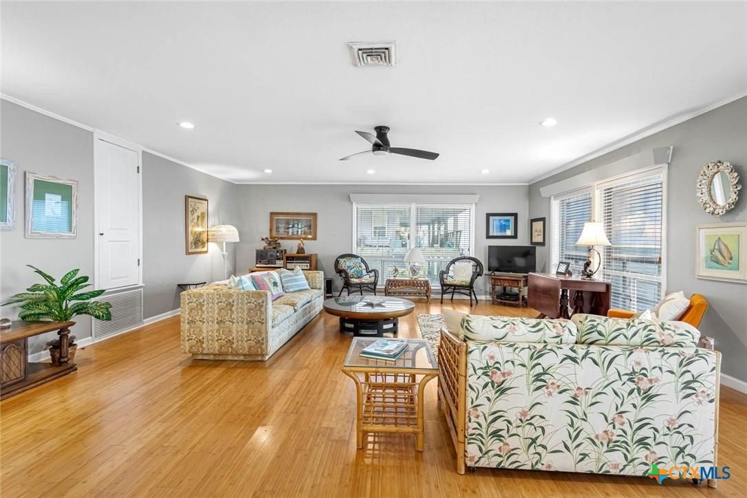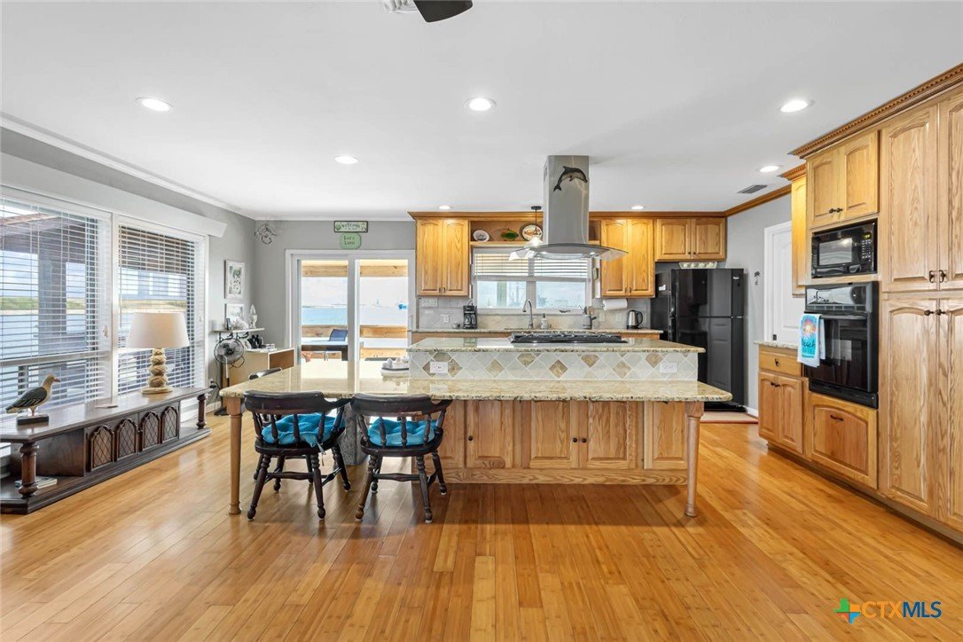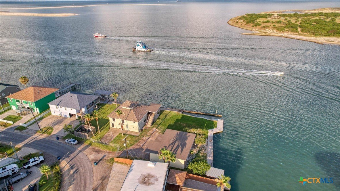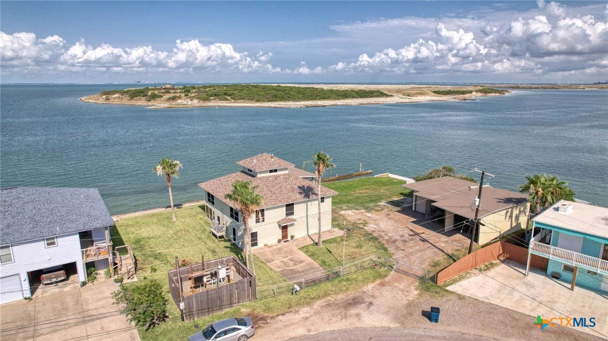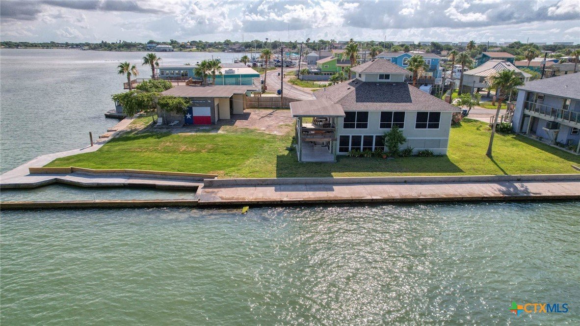 ATTENTION! REDUCED below Appraisal of $1.3M. Nestled along the tranquil shores of Corpus Christi Bay on La Quinta Channel, this corner 2+ story home offers the epitome of coastal living. With 3 bedrooms, 3 baths, a sprawling 3,089 square feet of living space AND land is 19,790 sq. ft. This Estate is a haven of comfort & style. Upon entry, you're greeted by two airy & bright living areas w/two kitchens, accented by sweeping views of the water. Upstairs boasts a living area/ kitchen, a primary bedroom retreat with a luxurious ensuite bathroom and 2 walk-in closets. Third story speakeasy room lends surreal views. Embrace a true essence of waterfront living- two open porches, screened in porch, all offering unparalleled views of the deep channel. Large yard, 1322sf shop, rv plug. Boat slip & fish house caters to the avid angler, providing convenience & ease for maritime adventures. Marina, boat launch & restaurant are walking distance. This home is nestled within a vibrant water community, where neighbors become friends and every day feels like a vacation.