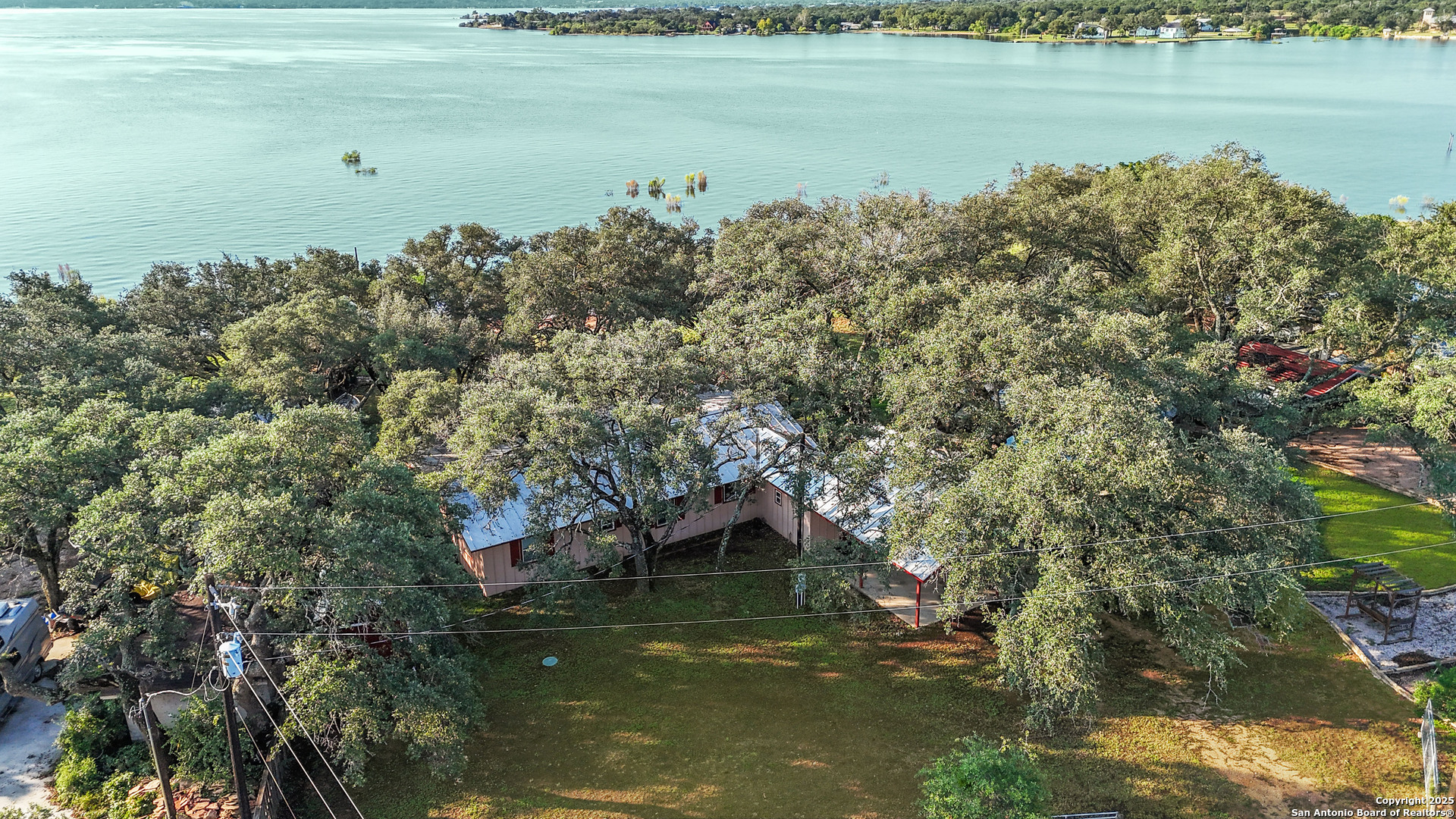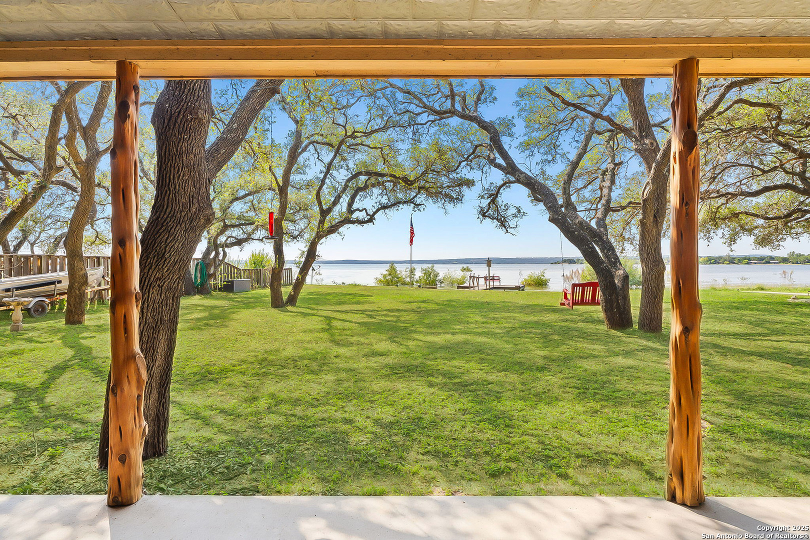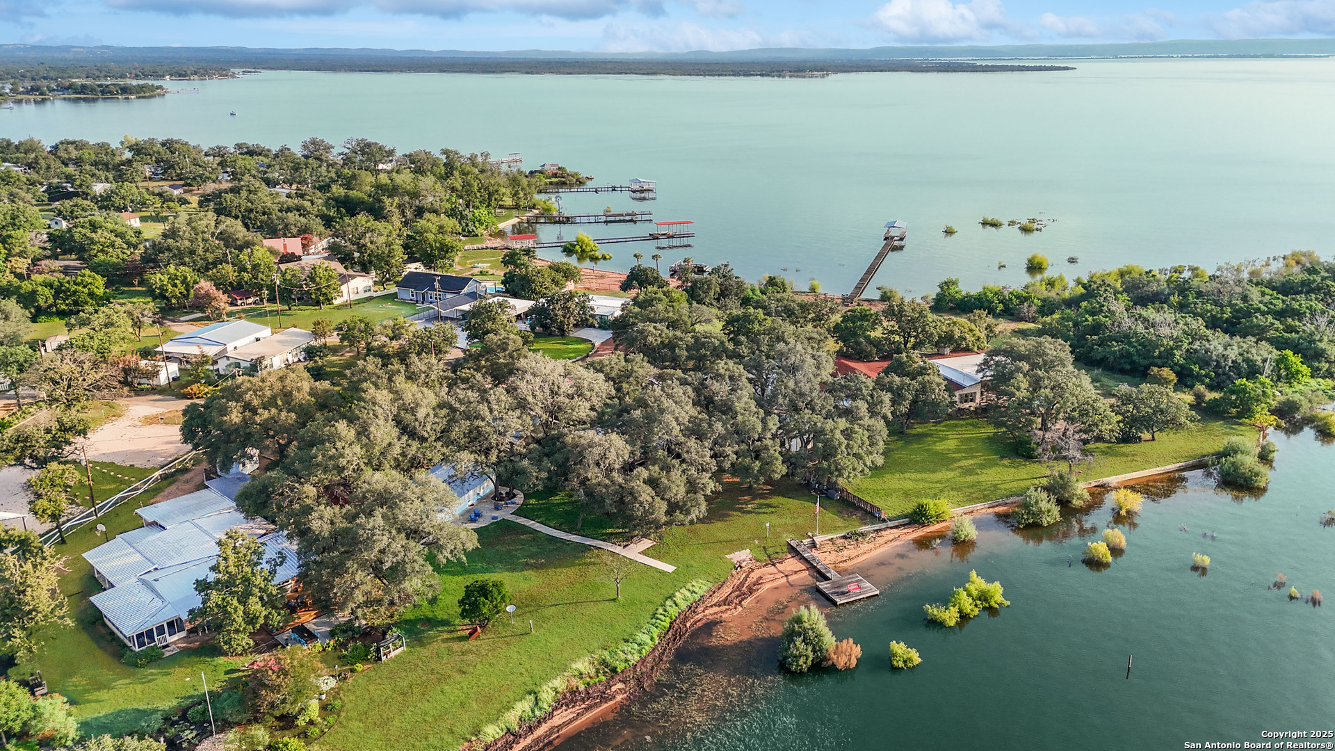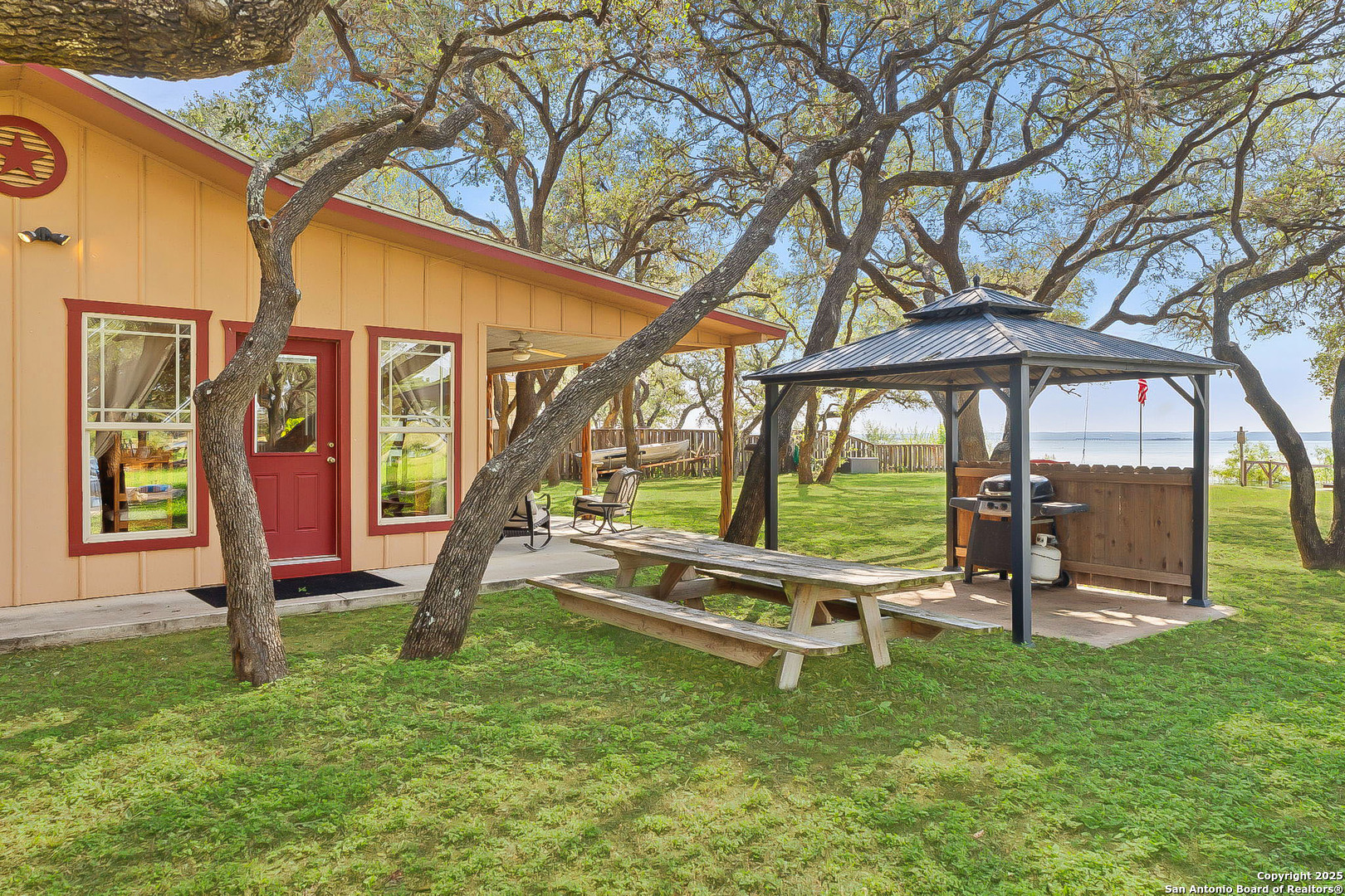 Lakefront living made easy on Lake Buchanan! With 65 feet of waterfront, a private dock, and a granite gravel beach for dipping right into the water, this property is built for endless lake days. Start your mornings kayaking from the concrete launch pad, spend the afternoon fishing or swimming off the dock, and end the day on the covered patio, soaking in sunsets, moonrises, and twinkling dam lights. Shaded by mature live oaks and set up with a grilling pavilion, picnic space, and even a tree swing, the outdoors is all about gathering, relaxing, and enjoying the view. Inside, you'll find lake views from nearly every room, hardwood and tile flooring, spacious living areas, and a wall of windows in the owner's suite that put Lake Buchanan front and center. The kitchen offers bar seating, ample storage, and direct access to the outdoor grill area for easy al fresco dining. With an oversized carport, storage shed, and energy-efficient updates, this home is as functional as it is fun. Whether you're after weekend getaways or full-time lake life, this waterfront retreat is ready to deliver.