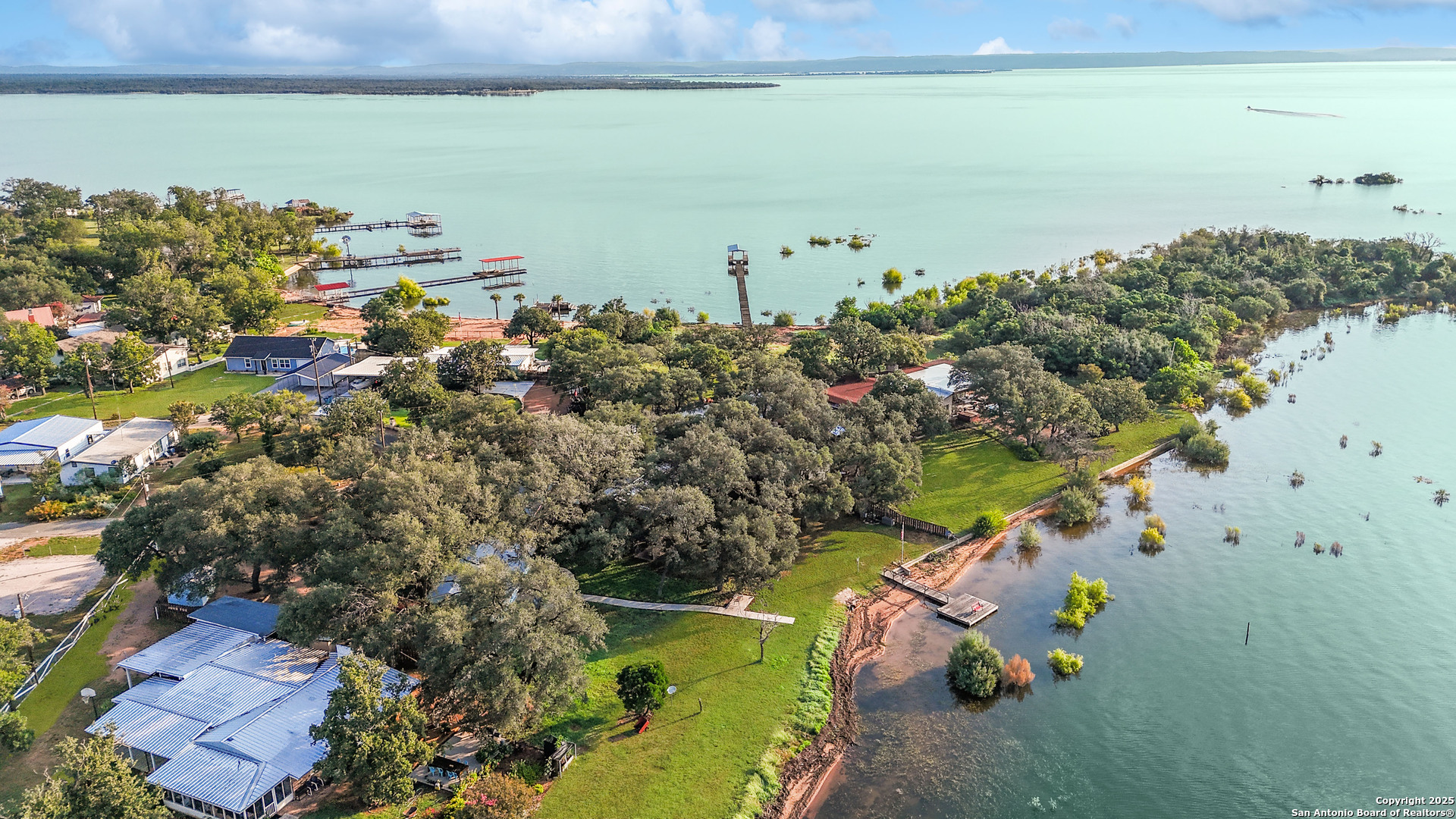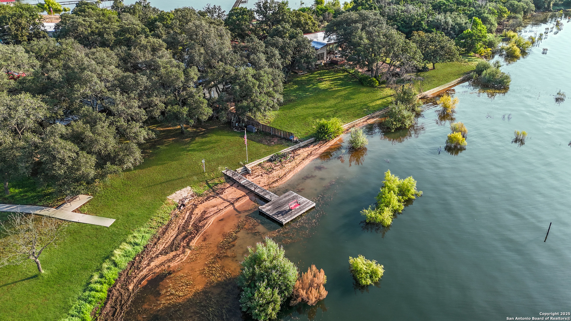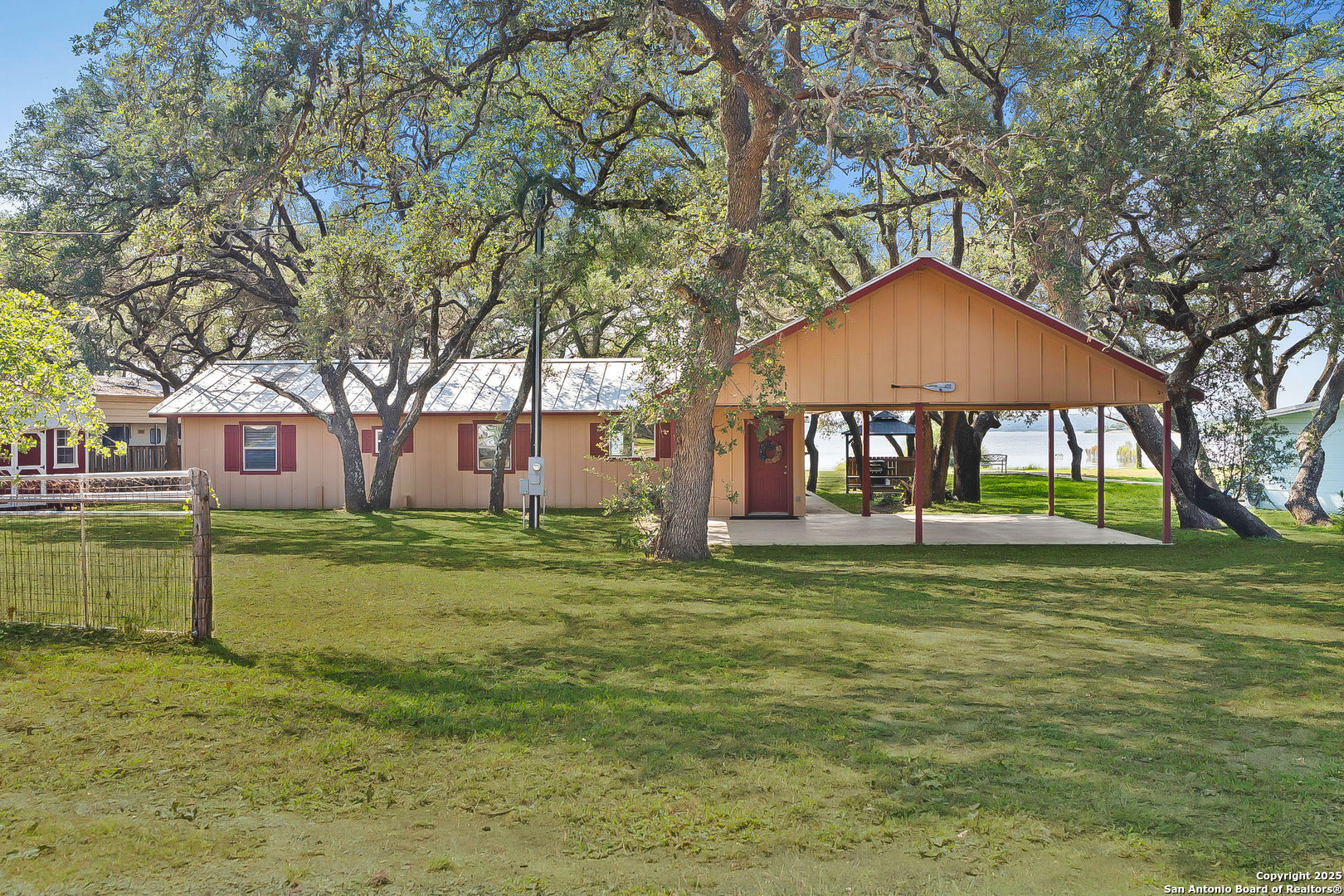 Lakefront living made easy on Lake Buchanan! With 65 feet of waterfront, a private dock, and a granite gravel beach for dipping right into the water, this property is built for endless lake days. Start your mornings kayaking from the concrete launch pad, spend the afternoon fishing or swimming off the dock, and end the day on the covered patio, soaking in sunsets, moonrises, and twinkling dam lights. Shaded by mature live oaks and set up with a grilling pavilion, picnic space, and even a tree swing, the outdoors is all about gathering, relaxing, and enjoying the view. Inside, you'll find lake views from nearly every room, hardwood and tile flooring, spacious living areas, and a wall of windows in the owner's suite that put Lake Buchanan front and center. The kitchen offers bar seating, ample storage, and direct access to the outdoor grill area for easy al fresco dining. With an oversized carport, storage shed, and energy-efficient updates, this home is as functional as it is fun. Whether you're after weekend getaways or full-time lake life, this waterfront retreat is ready to deliver.