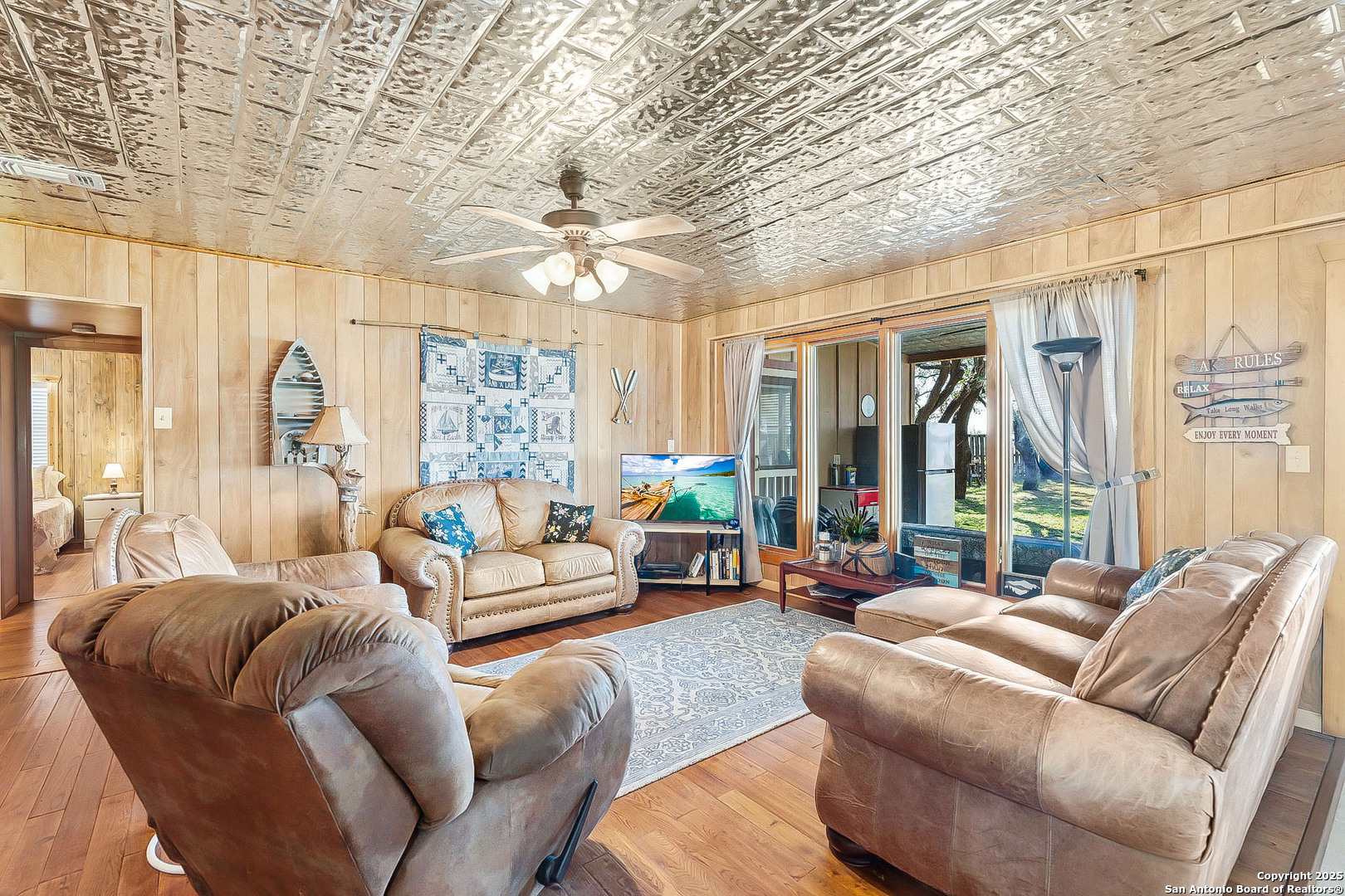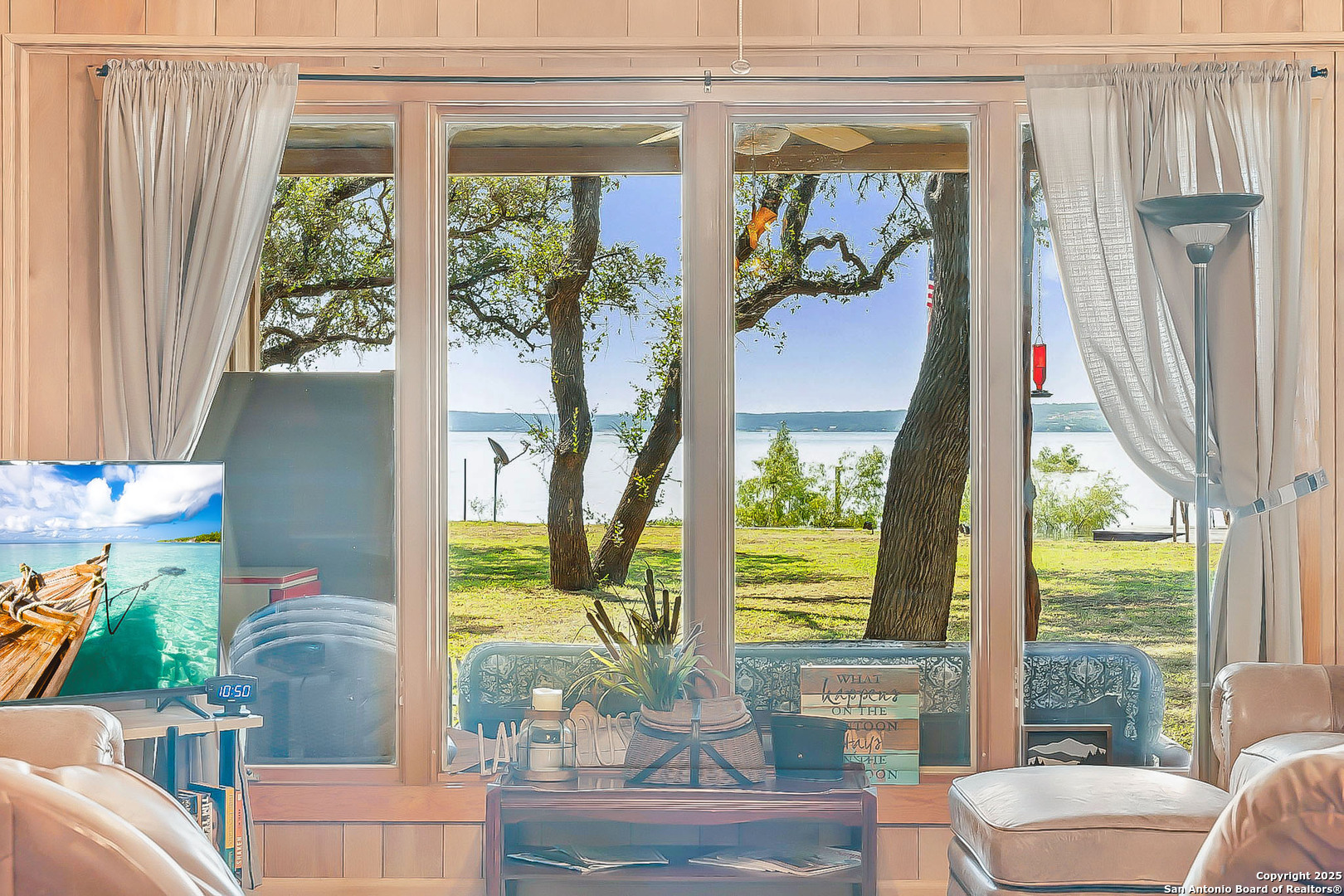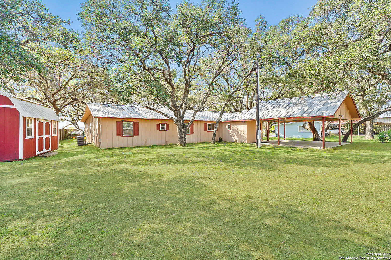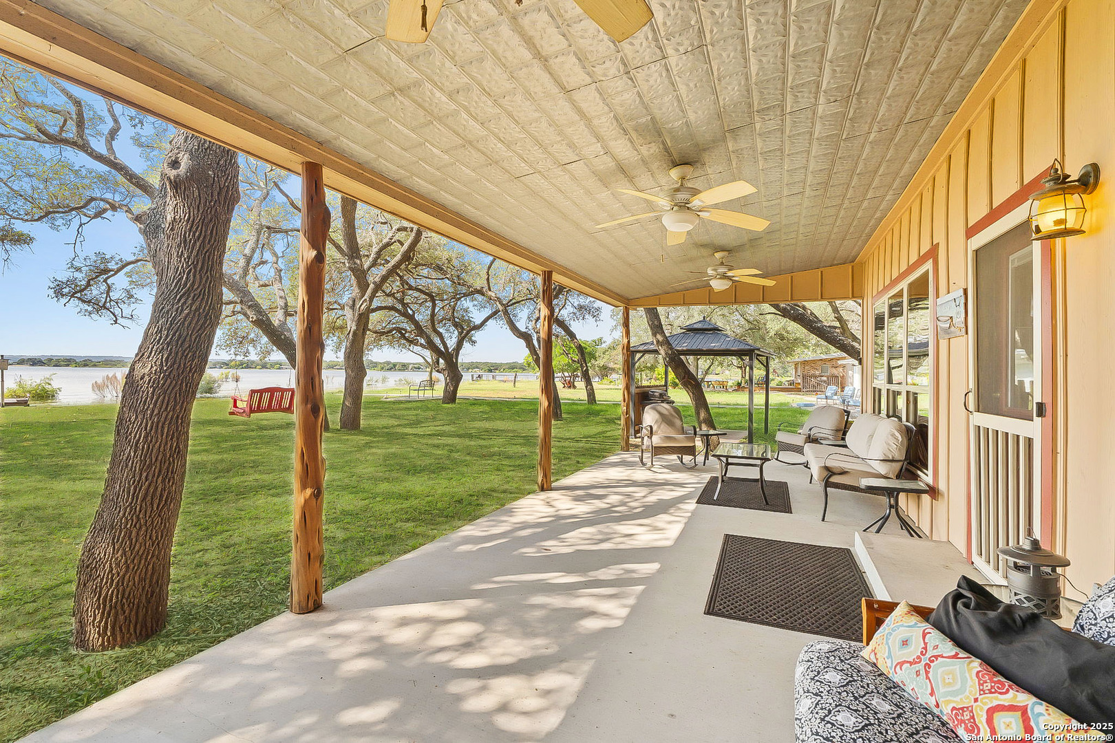Lakefront living made easy on Lake Buchanan! With 65 feet of waterfront, a private dock, and a granite gravel beach for dipping right into the water, this property is built for endless lake days. Start your mornings kayaking from the concrete launch pad, spend the afternoon fishing or swimming off the dock, and end the day on the covered patio, soaking in sunsets, moonrises, and twinkling dam lights. Shaded by mature live oaks and set up with a grilling pavilion, picnic space, and even a tree swing, the outdoors is all about gathering, relaxing, and enjoying the view. Inside, you'll find lake views from nearly every room, hardwood and tile flooring, spacious living areas, and a wall of windows in the owner's suite that put Lake Buchanan front and center. The kitchen offers bar seating, ample storage, and direct access to the outdoor grill area for easy al fresco dining. With an oversized carport, storage shed, and energy-efficient updates, this home is as functional as it is fun. Whether you're after weekend getaways or full-time lake life, this waterfront retreat is ready to deliver.