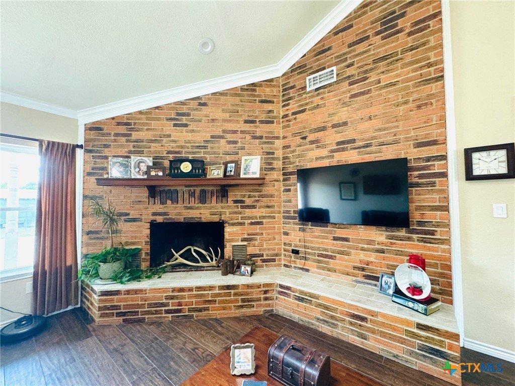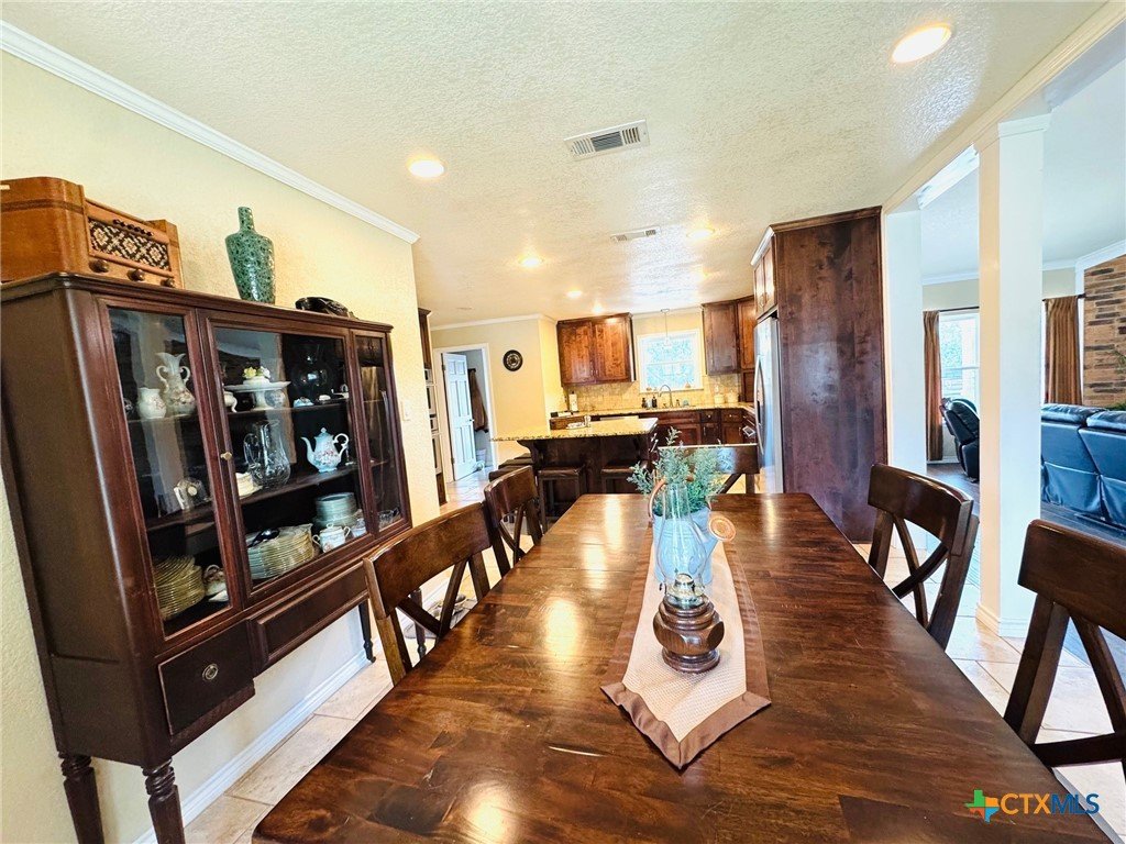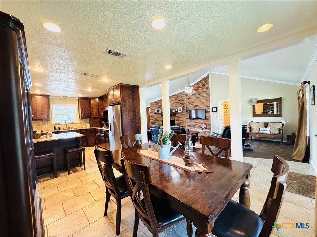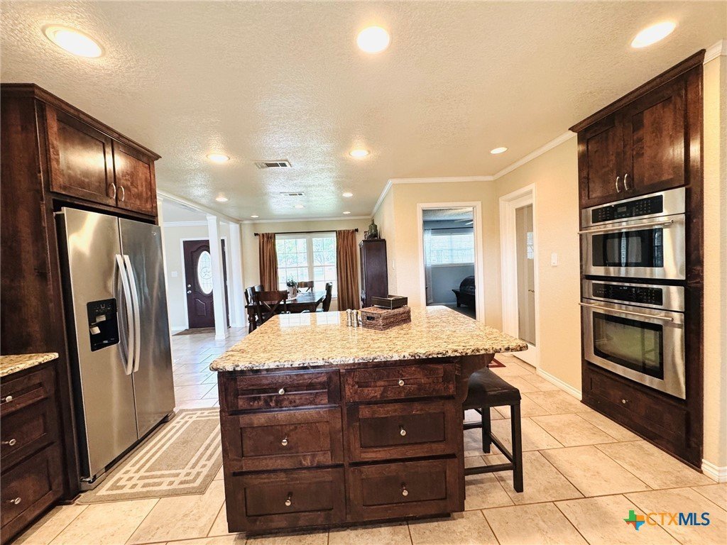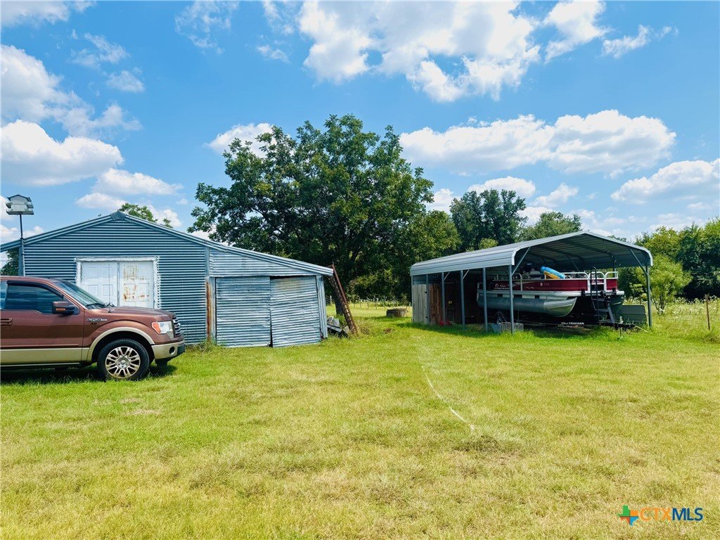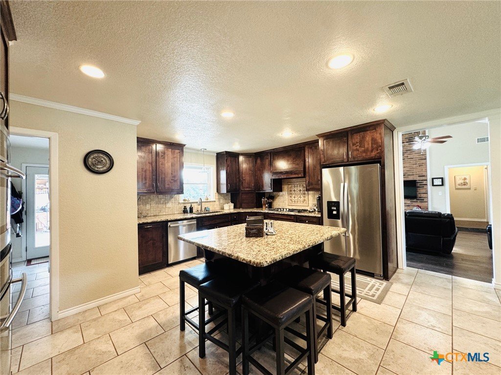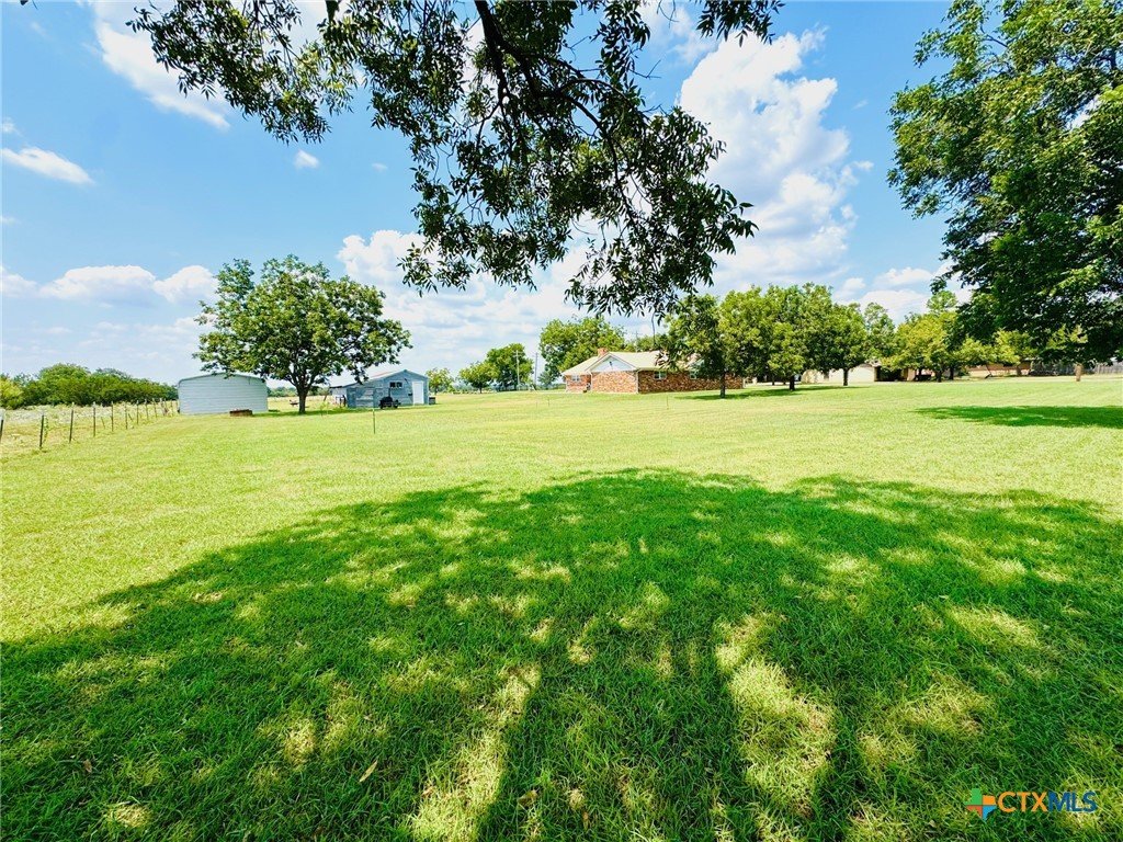 This brick 4-bedroom, 2-bath home was originally built by a custom builder as their personal residence, ensuring quality craftsmanship throughout. The current seller has beautifully remodeled the home, bringing the kitchen and living spaces up to modern-day conveniences while preserving its timeless charm. Sitting on over an acre corner lot just minutes from schools and shopping, this property blends luxury features with family-friendly function. The chef’s kitchen is a true showpiece, featuring granite countertops, a gas cooktop, single oven, built in microwave, custom cabinetry, tiled backsplash, oversized pantry, and a large center island with abundant storage. The dining and living areas flow seamlessly, living area is highlighted by soaring ceilings, an impressive brick accent wall, and a cozy wood-burning fireplace. The primary suite is designed as a retreat, with a sliding barn door opening to a private dressing area complete with a beauty bar, sink, and generous cabinet space. The spa-style bath offers a tiled tub/shower combination, and an oversized walk-in closet completes the suite. A versatile bedroom next to the primary is perfect for a home office, nursery, or craft room. Two additional bedrooms on the opposite side of the home provide privacy, with one offering double closets and a built-in desk. They share a stylish full bath with custom cabinetry and a tub/shower combination. Outdoors, the property features a large concrete driveway leading to a rear-entry garage, plus a storage building that has been finished out and a carport ideal for a boat or recreational toys. The expansive backyard is shaded with mature pecan trees, perfect for gatherings or quiet evenings at home.