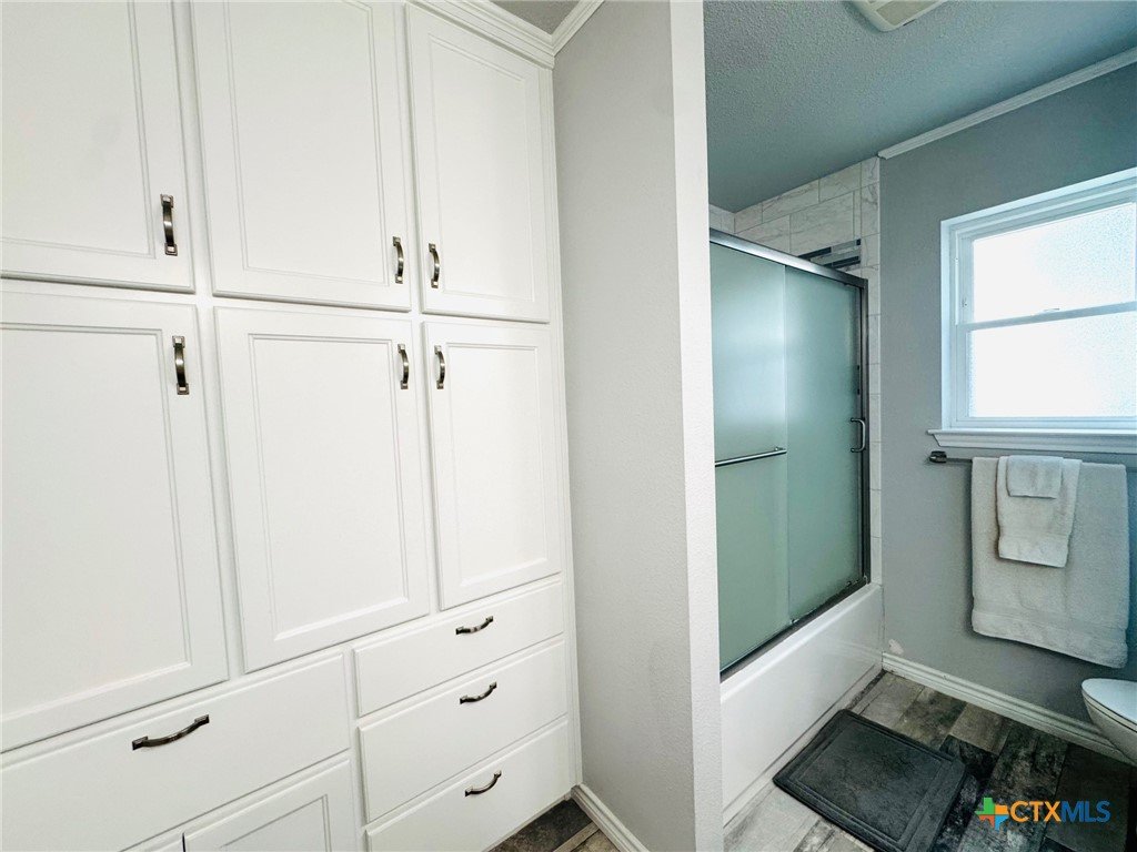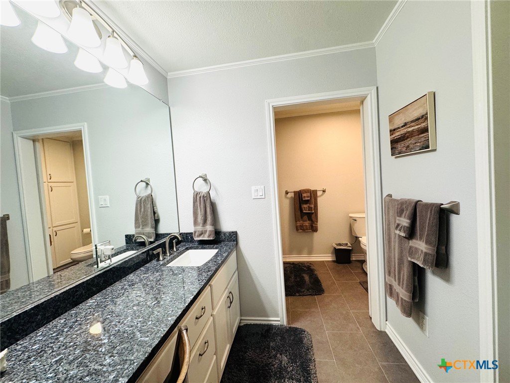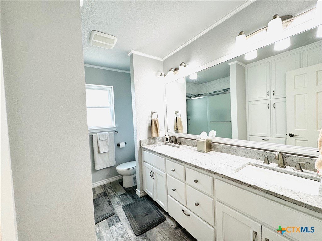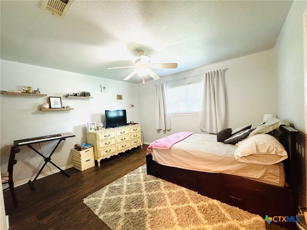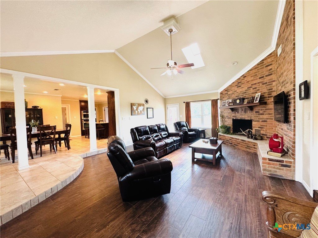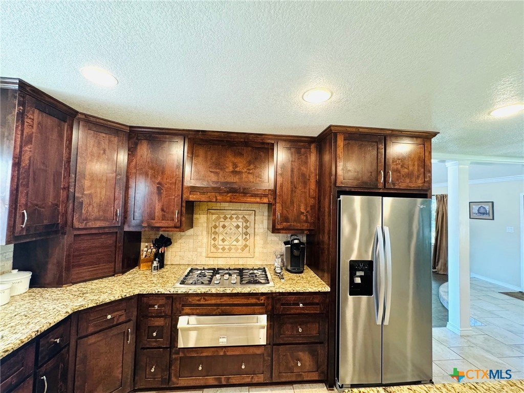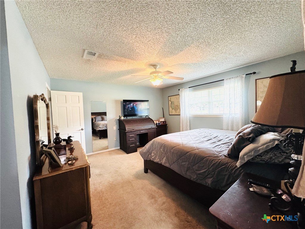 This brick 4-bedroom, 2-bath home was originally built by a custom builder as their personal residence, ensuring quality craftsmanship throughout. The current seller has beautifully remodeled the home, bringing the kitchen and living spaces up to modern-day conveniences while preserving its timeless charm. Sitting on over an acre corner lot just minutes from schools and shopping, this property blends luxury features with family-friendly function. The chef’s kitchen is a true showpiece, featuring granite countertops, a gas cooktop, single oven, built in microwave, custom cabinetry, tiled backsplash, oversized pantry, and a large center island with abundant storage. The dining and living areas flow seamlessly, living area is highlighted by soaring ceilings, an impressive brick accent wall, and a cozy wood-burning fireplace. The primary suite is designed as a retreat, with a sliding barn door opening to a private dressing area complete with a beauty bar, sink, and generous cabinet space. The spa-style bath offers a tiled tub/shower combination, and an oversized walk-in closet completes the suite. A versatile bedroom next to the primary is perfect for a home office, nursery, or craft room. Two additional bedrooms on the opposite side of the home provide privacy, with one offering double closets and a built-in desk. They share a stylish full bath with custom cabinetry and a tub/shower combination. Outdoors, the property features a large concrete driveway leading to a rear-entry garage, plus a storage building that has been finished out and a carport ideal for a boat or recreational toys. The expansive backyard is shaded with mature pecan trees, perfect for gatherings or quiet evenings at home.