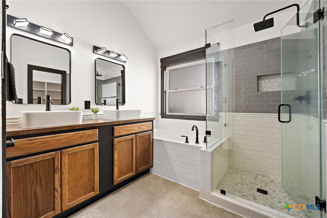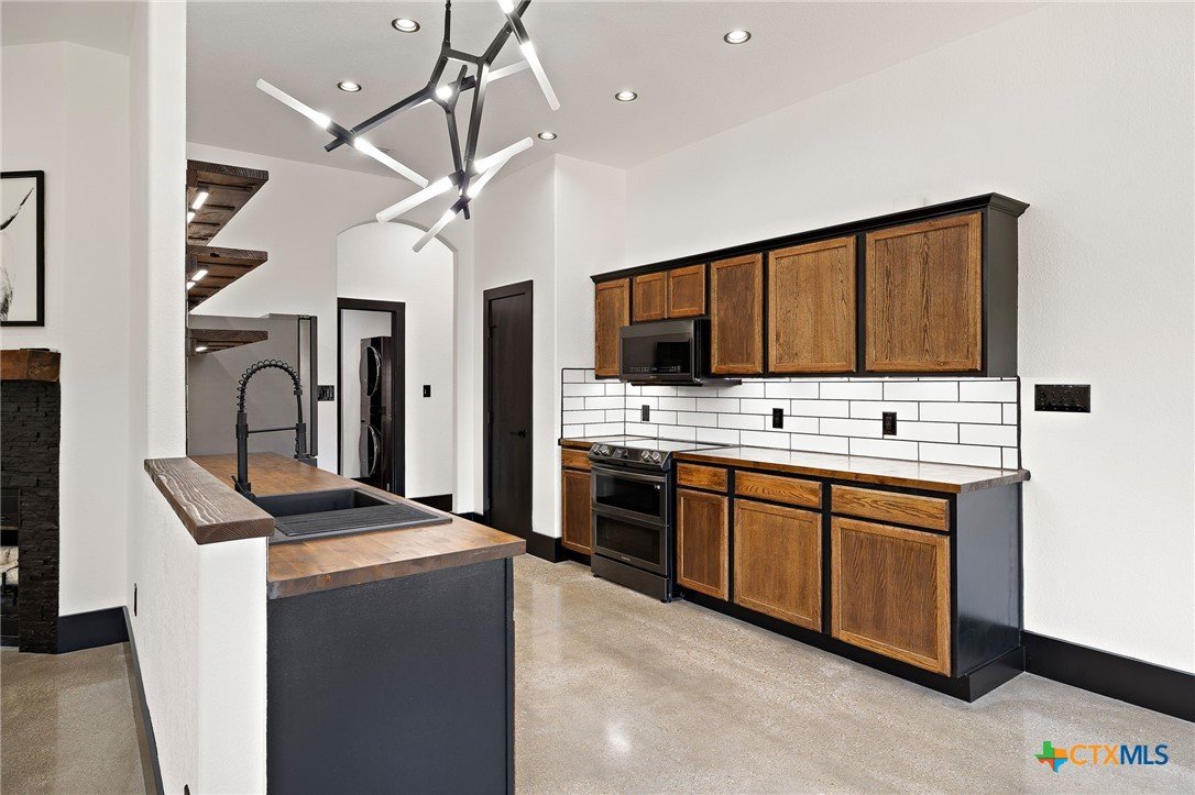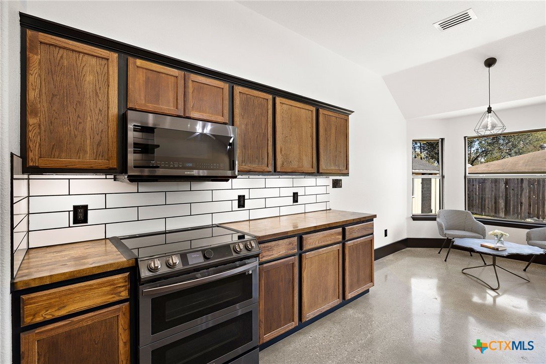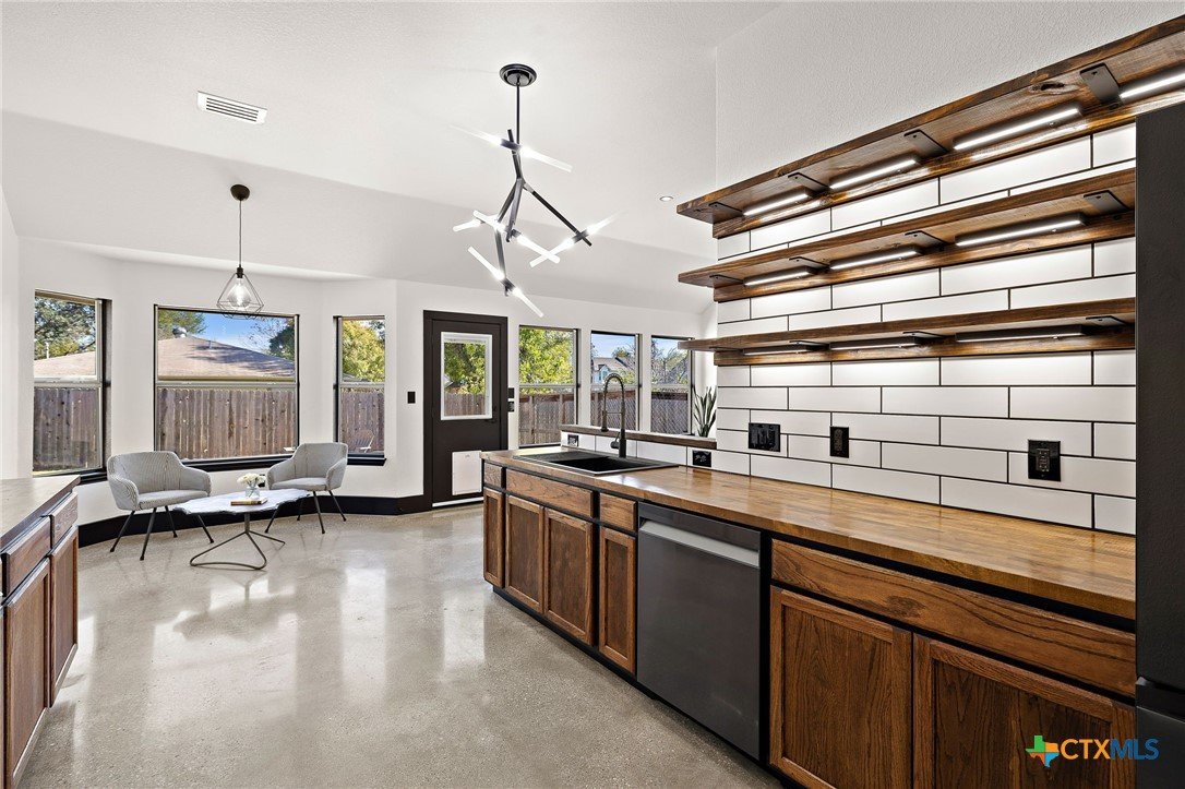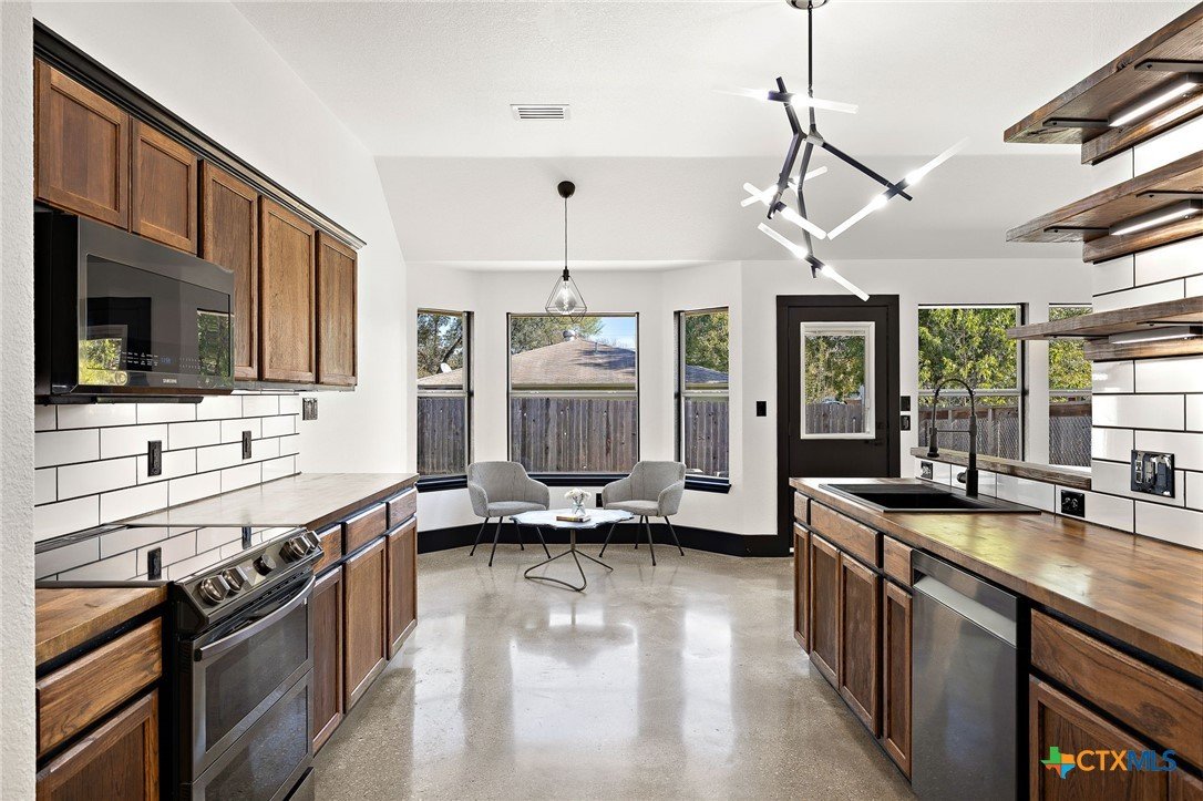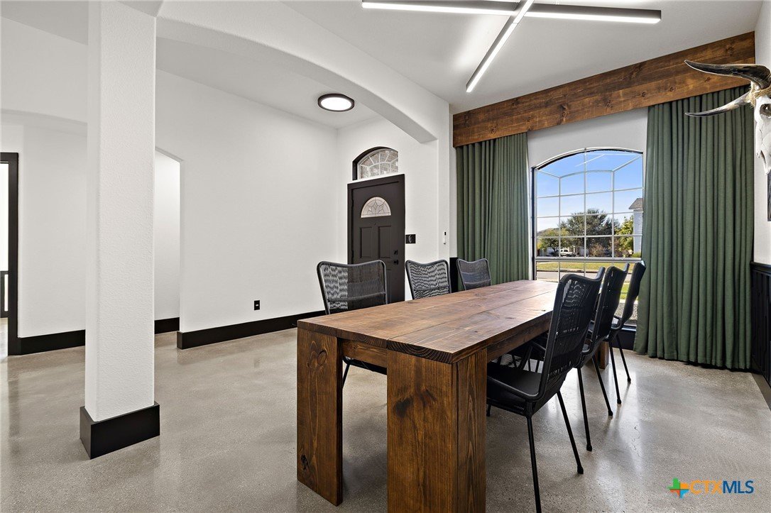 Stunning Modern Home with Upgrades Galore! Welcome to this beautifully upgraded home that features a modern touch throughout. Enjoy polished concrete floors in every room, eliminating the need for carpet. The bathrooms have been thoughtfully remodeled, offering a gorgeous and luxurious feel.This perfect layout separates guest bedrooms on one side of the home from the primary suite on the other, ensuring privacy & comfort. The open concept design provides defined spaces for living and dining, ideal for entertaining. Situated on a large corner lot, the backyard is an outdoor oasis, complete with a fire pit area, a designated space for animals, and a practical storage building. The spacious dining room comes with a large custom table, perfect for family gatherings. Additional highlights include a laundry room equipped with a sink and extra storage. This home boasts numerous upgrades and is truly move-in ready. Don't miss the opportunity to make this stunning property your new home! Wood burning fireplace upgrades: Lutron Caseta smart home light switches,Under cabinet lighting, Induction cooktop with Flex Duo dual temperature oven, built ins, Accordion closet doors, Geometric wood accent half wall in dining room,Nest thermostat, Extended attic flooring above garage, Fenced-off dog run/ gardening area, Built in doggie doors, Semi frameless shower, Butcher block counter tops,Utility sink in laundry room,New Roof July,New water heater June 2023, water-softner hook up ready, April 2025 - Professional diamond polished sealed aggregate concrete flooring by "All Innovation Concrete treatments LLC" no carpet in the house, NEMA 14-50R & NEMA 6-20R 240V outlets in the garage, J1772 Electric Vehicle charger with Tesla NACs adapter, Generator back feed outlet with interlock on main electrical panel,USB Type A and C charging outlets through out the house, Powered curtain rod in the dining room, Projector in the living noom, included, Wyze Video Doorbell & perimeter security cameras