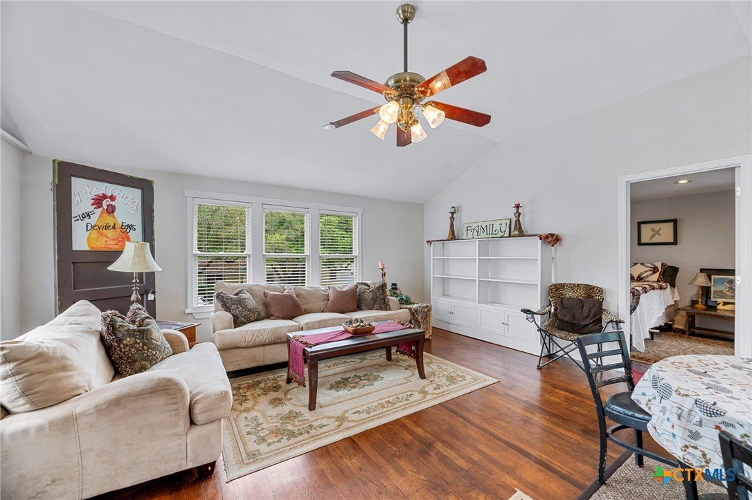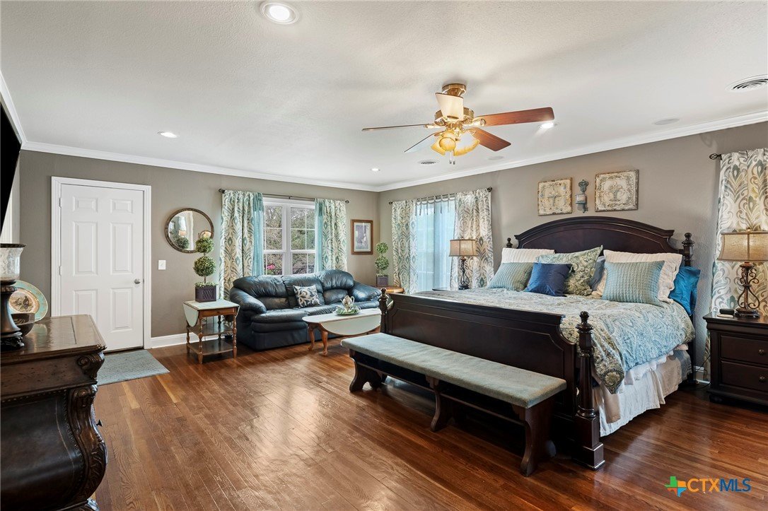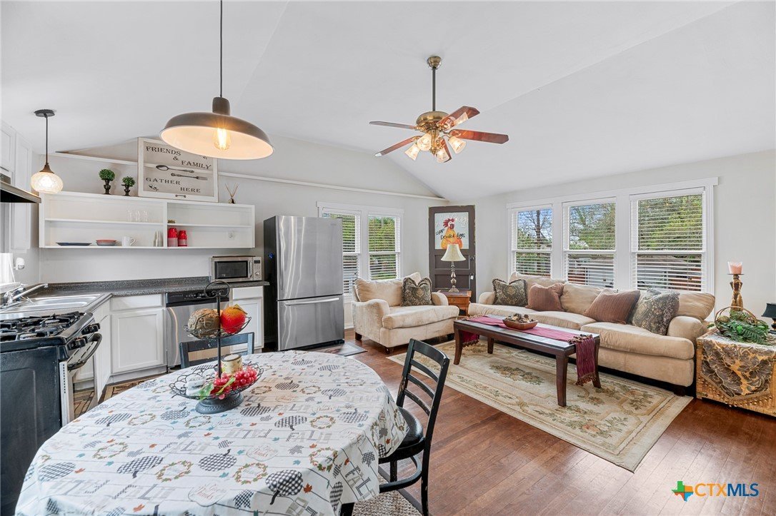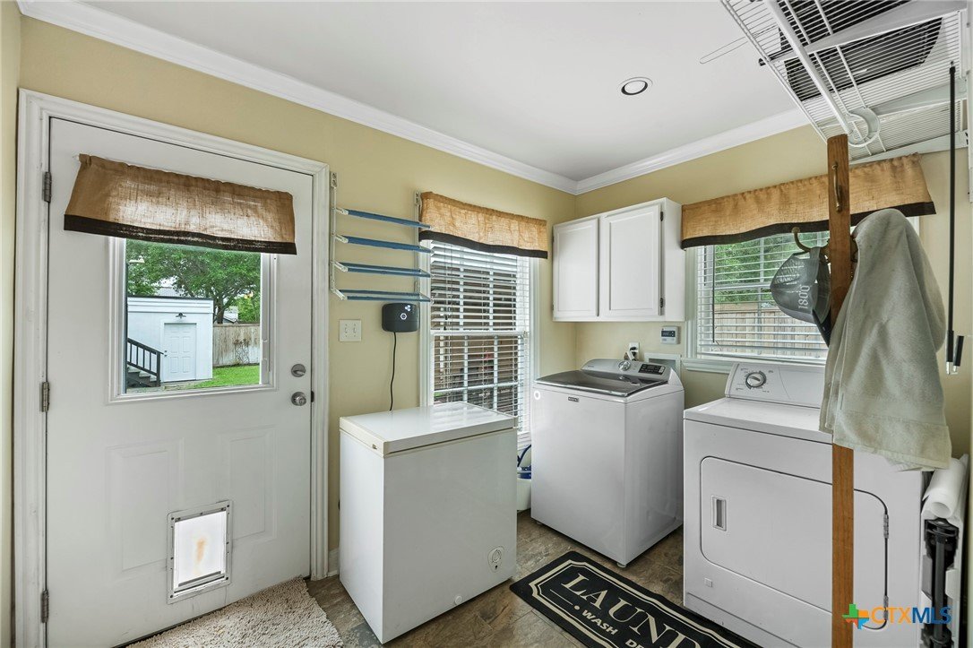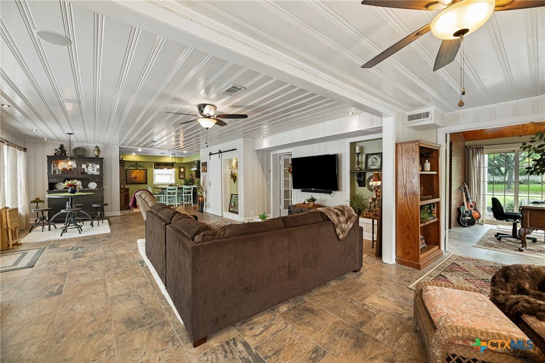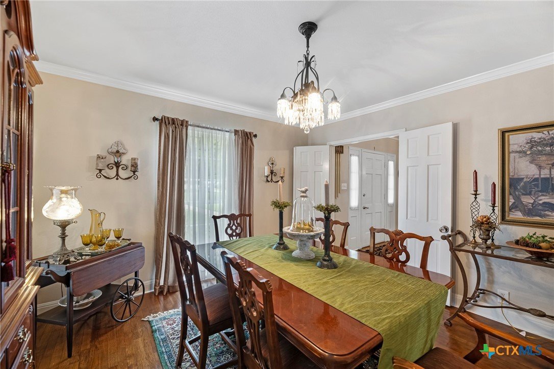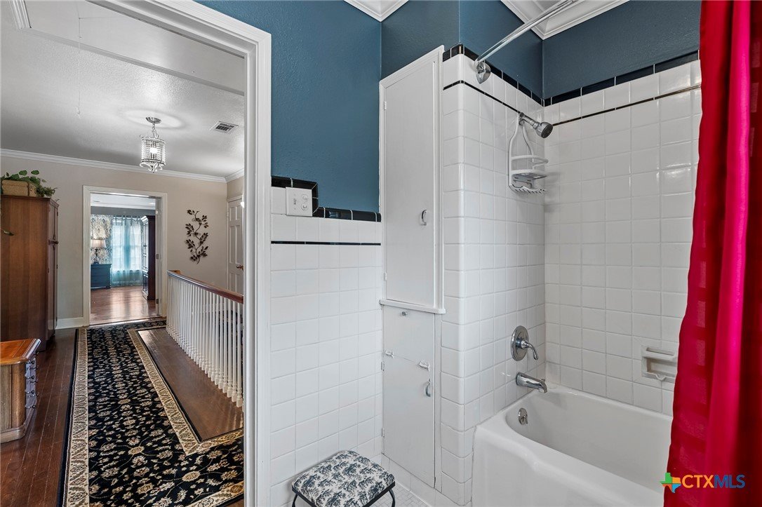 Step in to this stunning vintage home in the most picturesque area in Beeville. As you enter the home you are greeted by the intricately detailed metal ceiling, which creates a striking visual statement, and the majestic stairway leading to the upper level. Crystal chandeliers adorn the foyer, dining room, and formal living space, enhancing the grandeur. Flanking the entryway are two generously-sized rooms, each accessed through stunning double doors. Both the living room on the left and the dining room on the right boast impressive architectural details including high ceilings, wide base boards, lovely crown molding, and a decorative fireplace in the living room. Discover the elegant, renovated kitchen and a second living area, accompanied by a convenient laundry room and a half bath, located in the rear of the home. You’ll love the amazing kitchen designed with entertainment in mind! It is the complete package with beautiful, updated cabinetry with granite countertops, gas cooktop, and other stainless appliances that include double ovens, microwave, dishwasher and refrigerator. The luxury primary suite is located on the upper level and features a spacious spa-like bath, a large sitting area, an enormous walk-in closet, and a private balcony that over looks the street below. There are three additional bedrooms and a second full bath upstairs with plentiful windows that allow for natural light. In addition to the gracious charm of the main residence there is a 3-car garage with a 600 sf apt (1 bed/1bath) above that has previously been used for extra income. The well-groomed back yard features a lighted pergola with sun shades to enjoy the outdoor space any time of year, day or night! And to add to joy of owning your dream vintage home, the electrical and plumbing (interior and drain lines) are updated and there is a sprinkler system.
