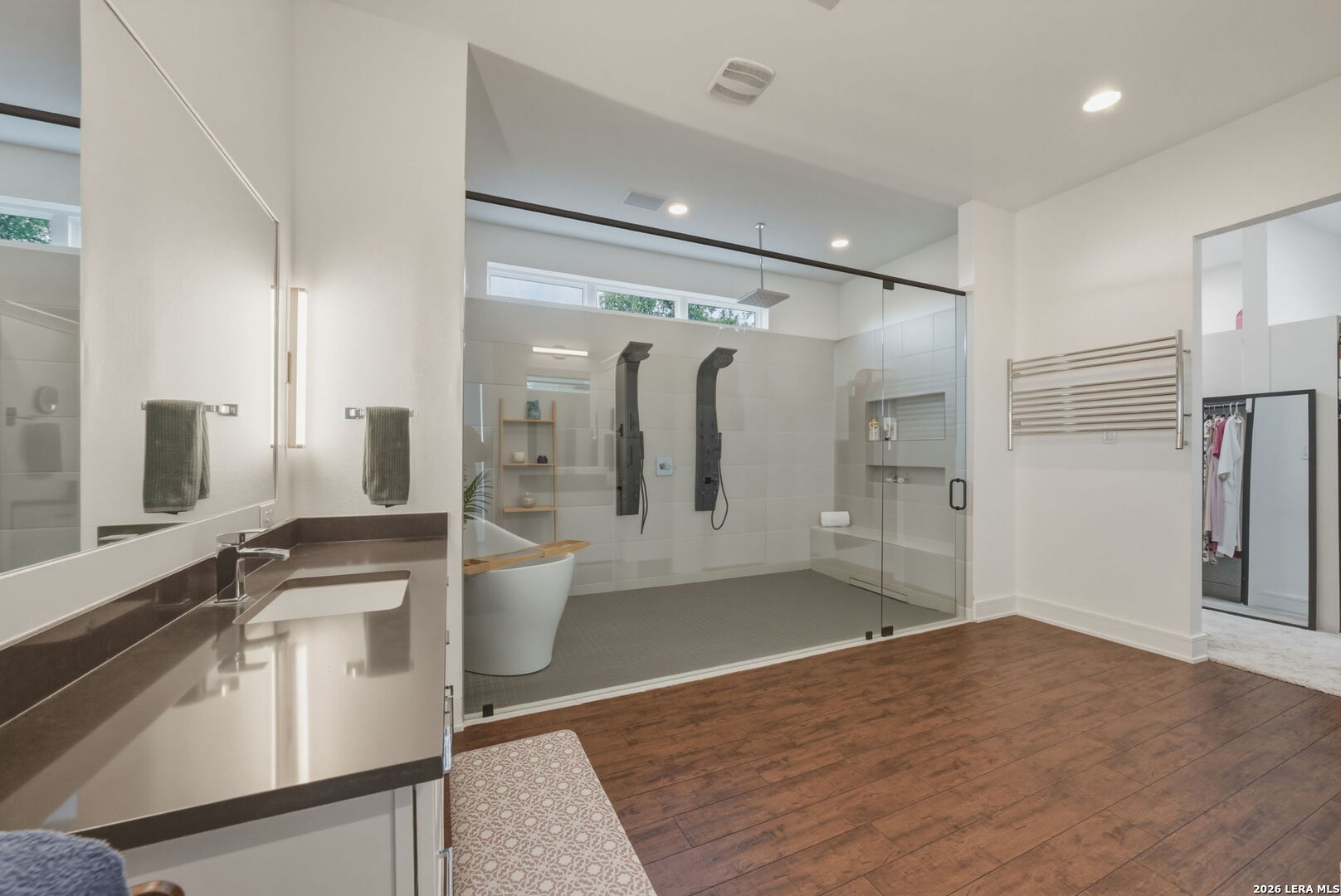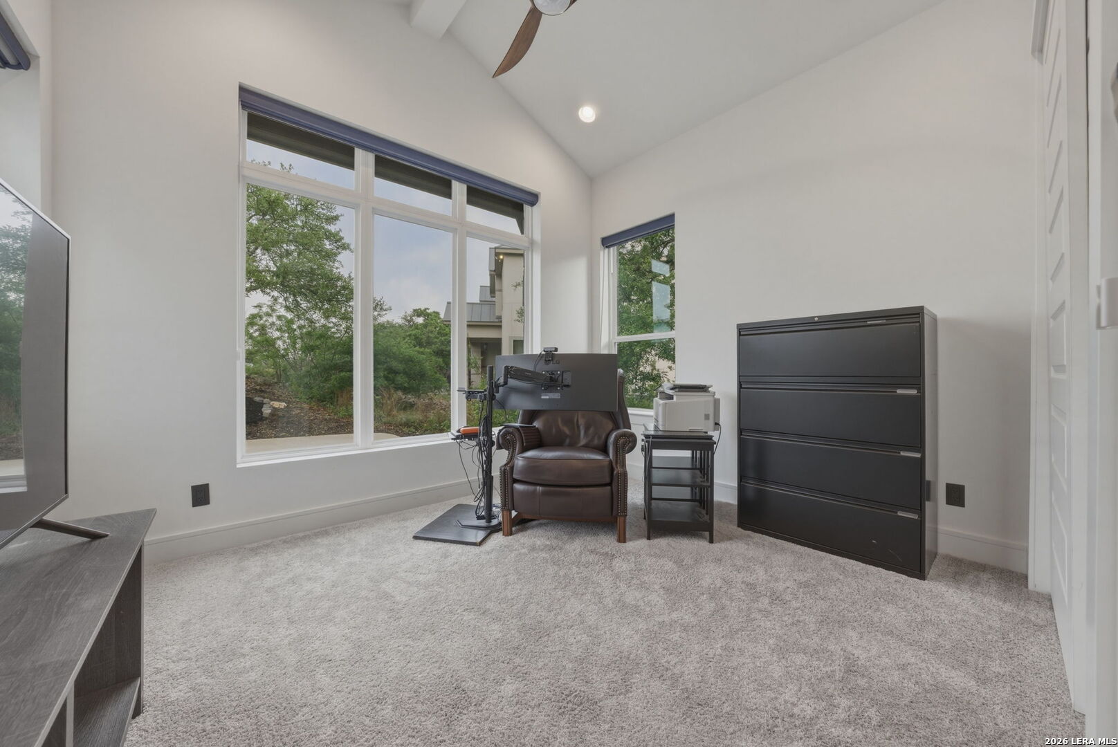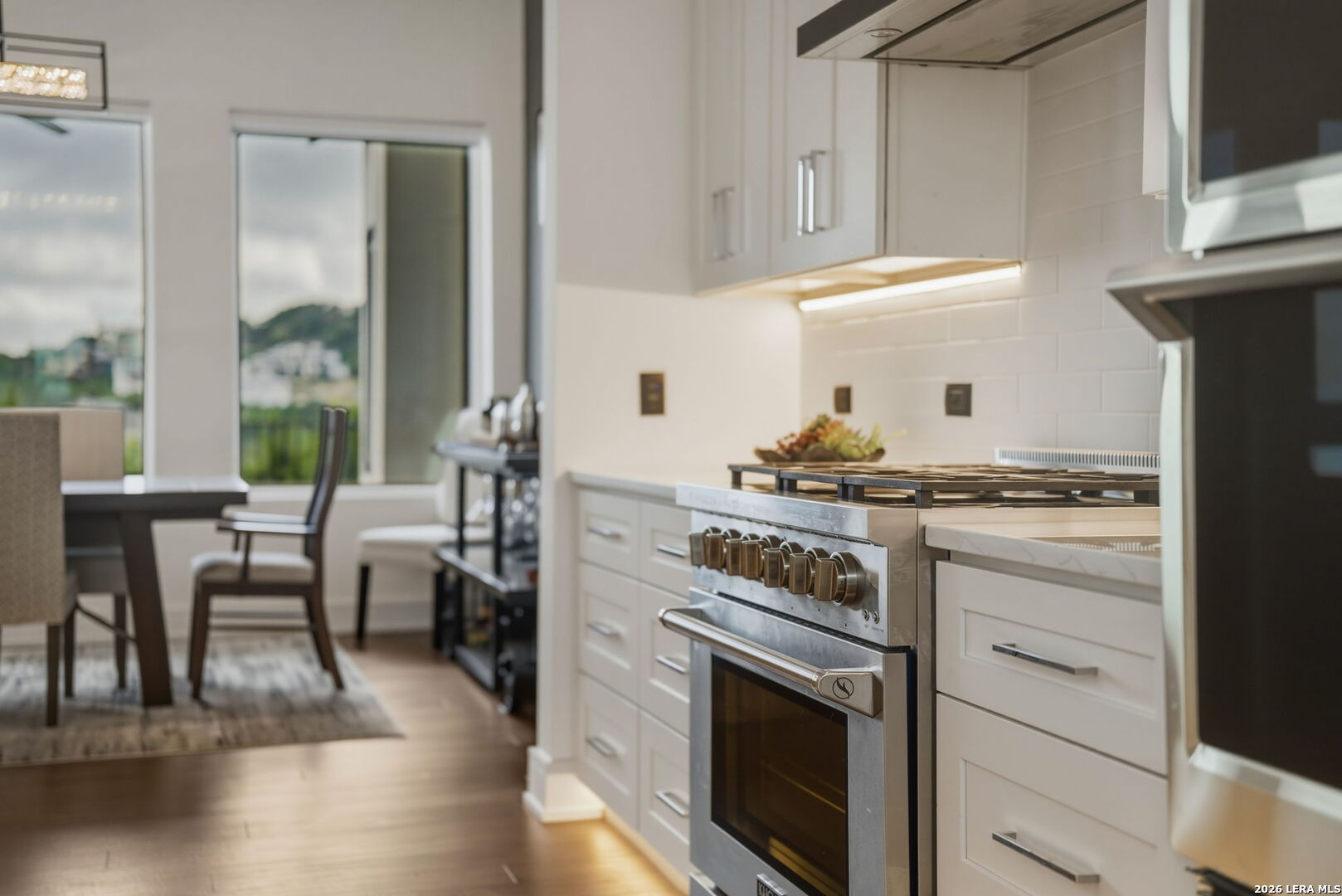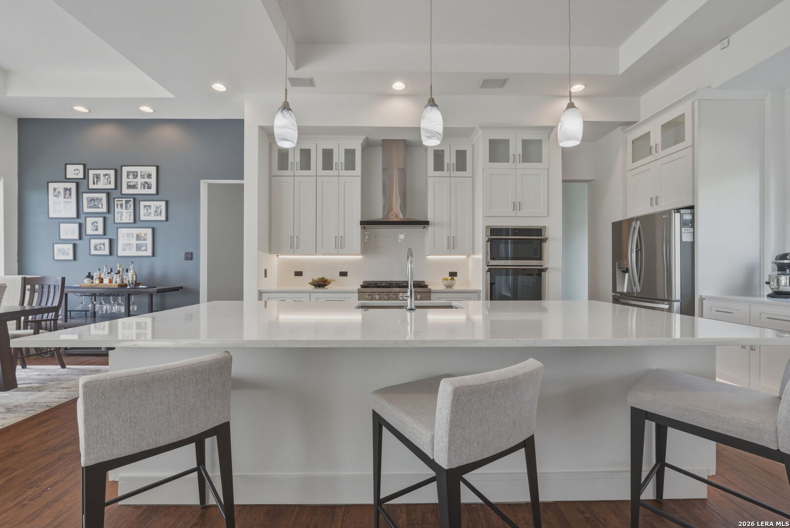 Luxury single-story smart home with panoramic Hill Country views, infinity-edge pool, and outdoor kitchen in the prestigious gated community of The Canyons at Scenic Loop. Perched on one of the highest ridges in the neighborhood, this exceptional San Antonio luxury home offers 4 bedrooms, 4 full baths, and a flexible second living area or study with sliding glass doors overlooking the pool that could easily serve as a 5th bedroom, media room, game room, or private home office. From the moment you enter, the home makes a striking impression with a dramatic great room showcasing exposed beams, designer lighting accents, expansive windows, and large sliders that open to the covered patio, outdoor kitchen, and breathtaking Hill Country views. Natural light pours in while the open-concept design creates seamless indoor-outdoor flow, ideal for both elevated entertaining and everyday living. Buyers searching for a home with views in San Antonio will appreciate the combination of architectural appeal, flexibility, and lifestyle this home offers. The gourmet kitchen is designed for both daily living and entertaining, featuring a large center island, quartz countertops, double ovens, abundant cabinetry, generous prep space, and effortless connection to the living and dining areas. Whether hosting a crowd or enjoying a quiet evening at home, the layout is functional, inviting, and refined. The privately situated primary suite is a true retreat with large windows framing expansive Hill Country views and a spa-like bath featuring a dramatic wet-room design, complete with a deep soaking tub, oversized walk-in shower with two body spray panels and shower heads and rain shower, and a towel warmer for an added touch of luxury. The flexible second living room or study also enjoys large windows and sweeping views, adding even more appeal for buyers seeking a home office, media room, lounge, or guest space with an exceptional setting. One secondary bedroom offers an ensuite bath, while two additional secondary bedrooms share a full bath. Step outside and experience true resort-style outdoor living. The backyard is the showpiece of the home, featuring a spectacular Keith Zars infinity-edge pool, swim-up bar, large covered patio, and outdoor kitchen with refrigerator, all perfectly positioned to capture sweeping Texas Hill Country views. The east-facing backyard welcomes beautiful morning light and cooler afternoon outdoor living, creating an ideal setting for entertaining, relaxing, and enjoying the surrounding landscape. Smart home technology includes a Control4 system, CAT-6 wiring, audio/TV connectivity, customized LED lighting, and mobile phone control for a seamless modern living experience. Additional highlights include striking architectural details, greenbelt access below, and a prime location in one of San Antonio's most sought-after luxury communities. The Canyons at Scenic Loop offers a gated setting with convenient access to La Cantera, The Rim, premier shopping, dining, entertainment, and major thoroughfares, while still feeling private, scenic, and tucked away in the hills. Rarely does a single-story luxury home in The Canyons at Scenic Loop offer this combination of Hill Country views, infinity-edge pool, outdoor kitchen, flexible living space, luxury finishes, and smart home technology. An exceptional opportunity to own a true Hill Country retreat in San Antonio.