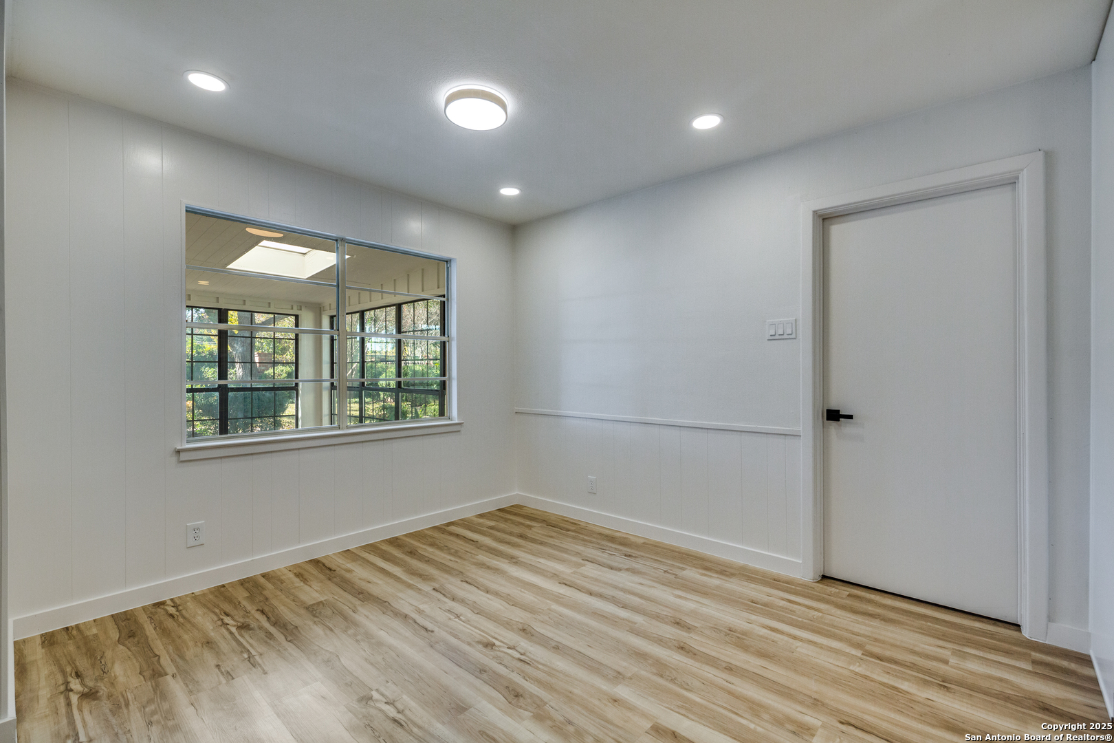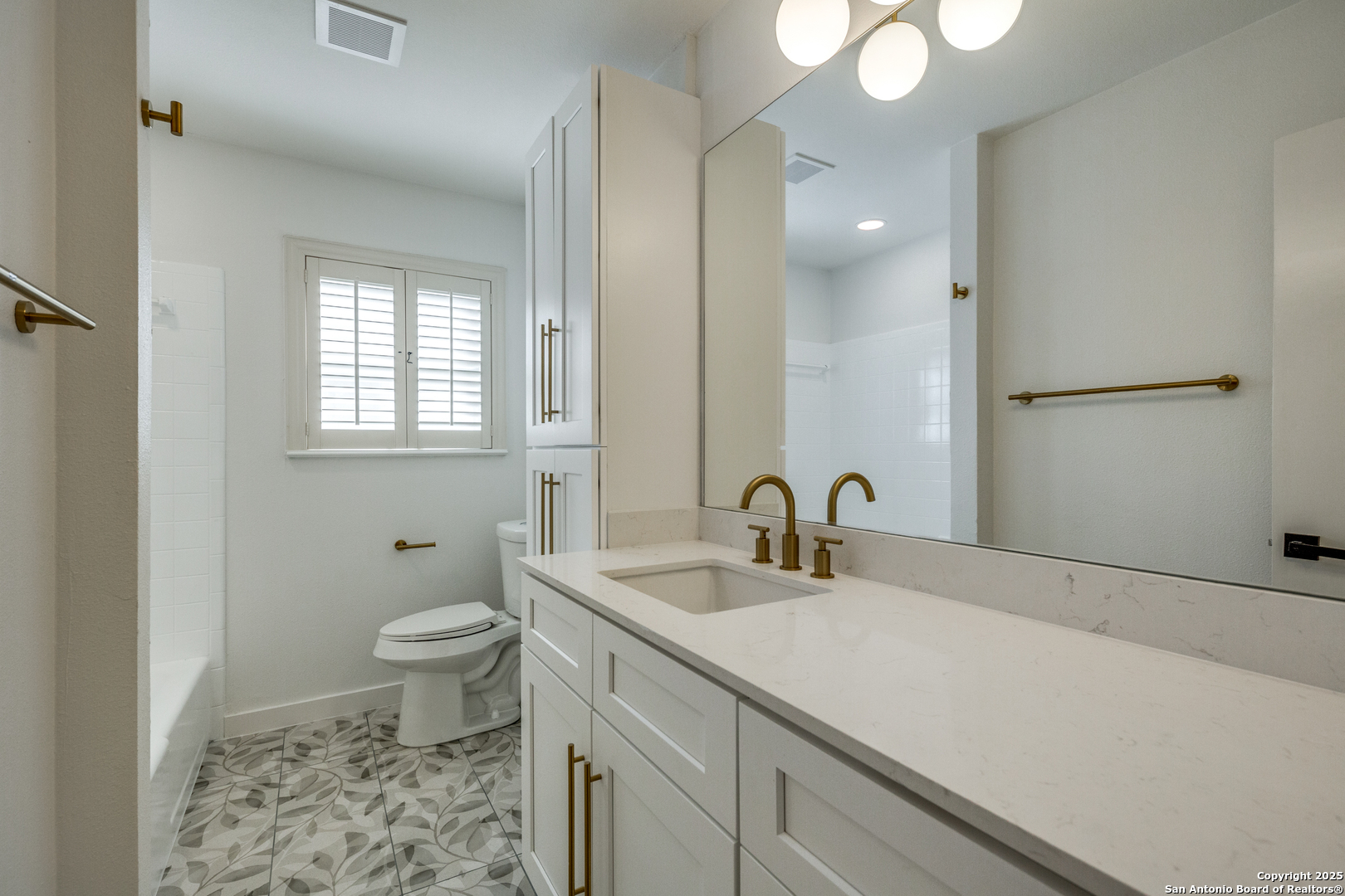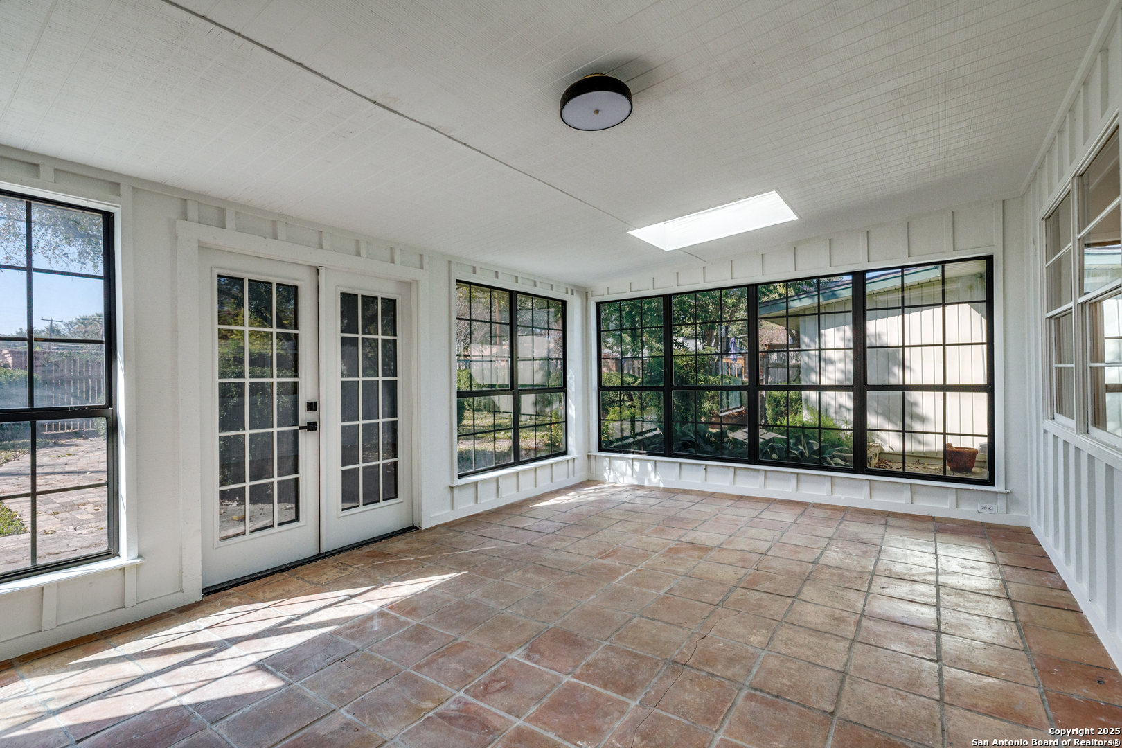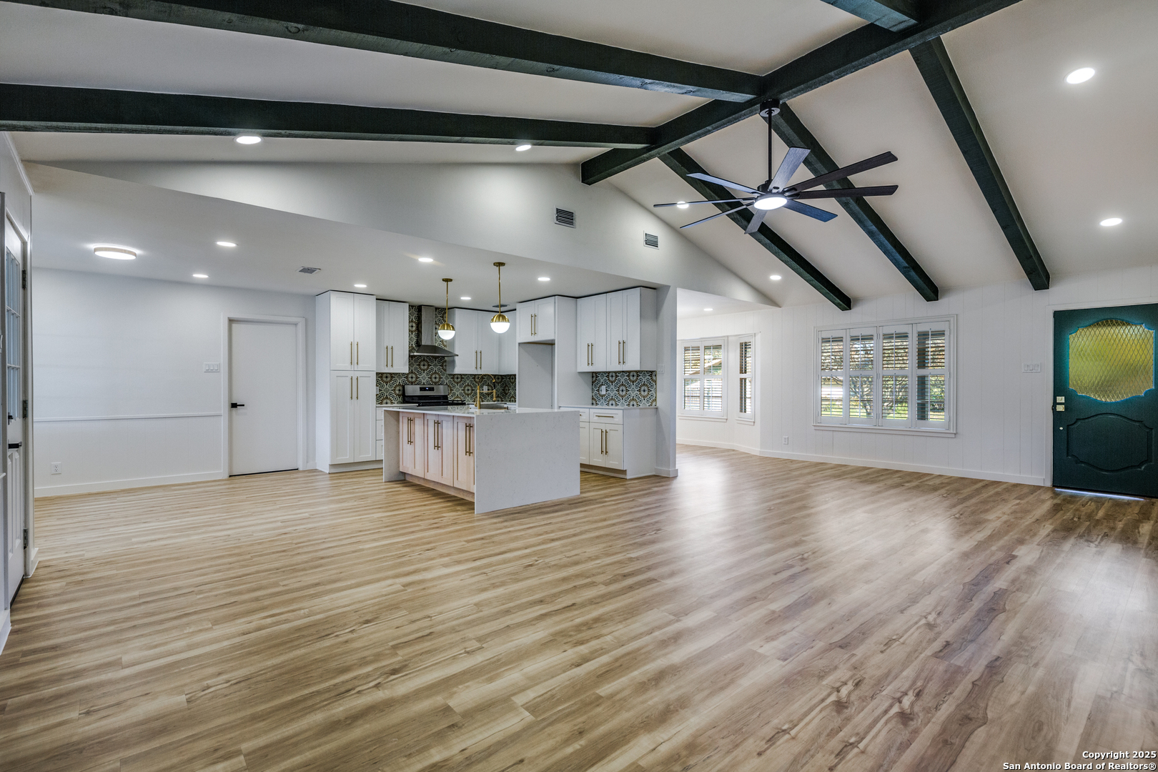 Completely renovated from top to bottom, this 3 bedroom 2 bath open concept home in MacArthur Terrace looks and feels brand new. Bright fresh interior paint, new recessed lighting and updated fixtures along with stylish new flooring throughout. The kitchen exudes luxury with elegant finishes, a stunning waterfall island, soft-close maple cabinets and drawers, brand-new appliances and countertops. Inside laundry room flows into an oversized garage that offers the perfect workshop space with built-in storage cabinets. Enjoy indoor/outdoor entertaining with family and friends in the Florida room and beautiful shaded backyard. This home is a must see for the discerning home shopper. Exterior updates include new outdoor lighting. Ideally located in a great central area-just minutes from the airport, Loop 410, Loop 1604, Hwy 281, and only 15 minutes from downtown.