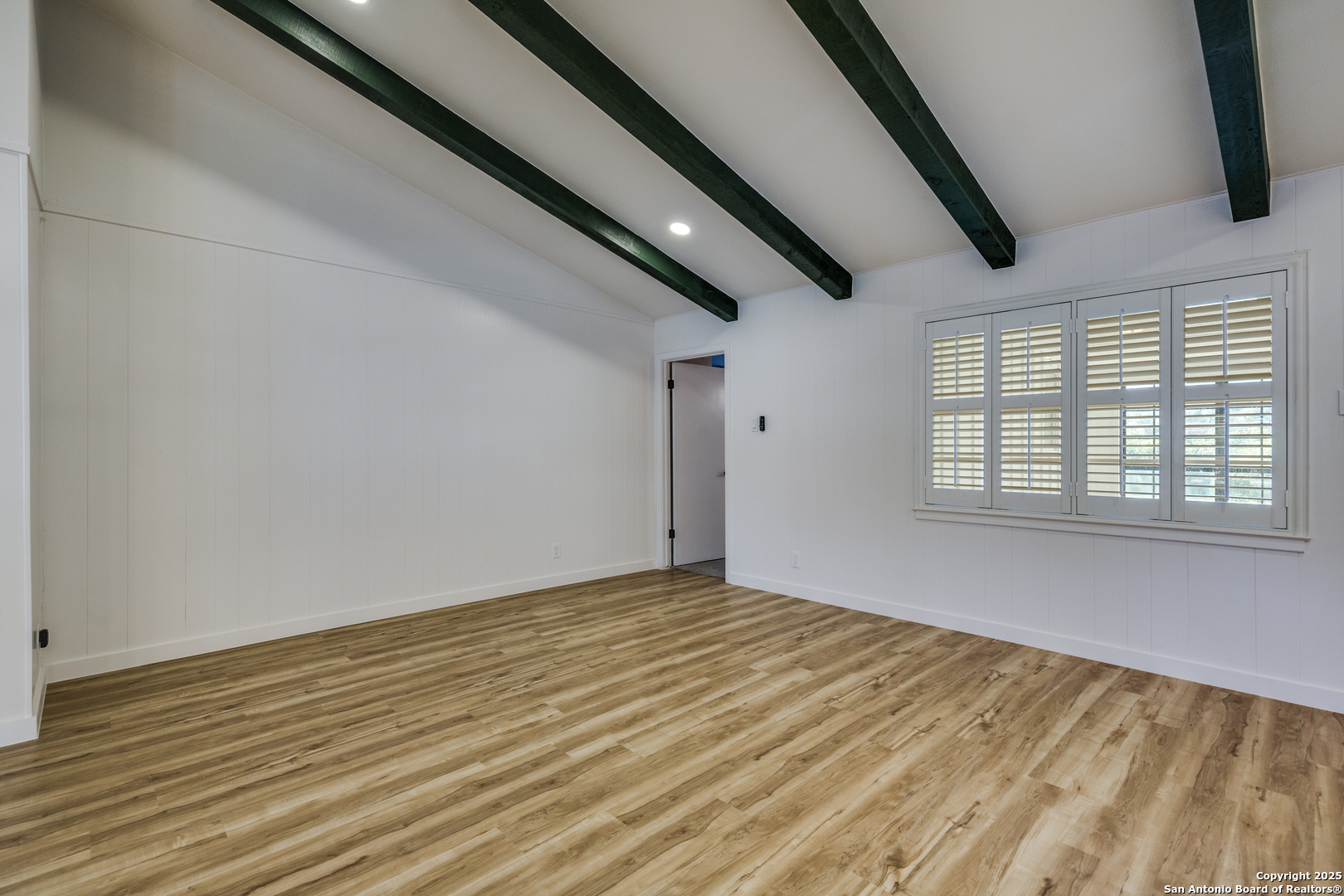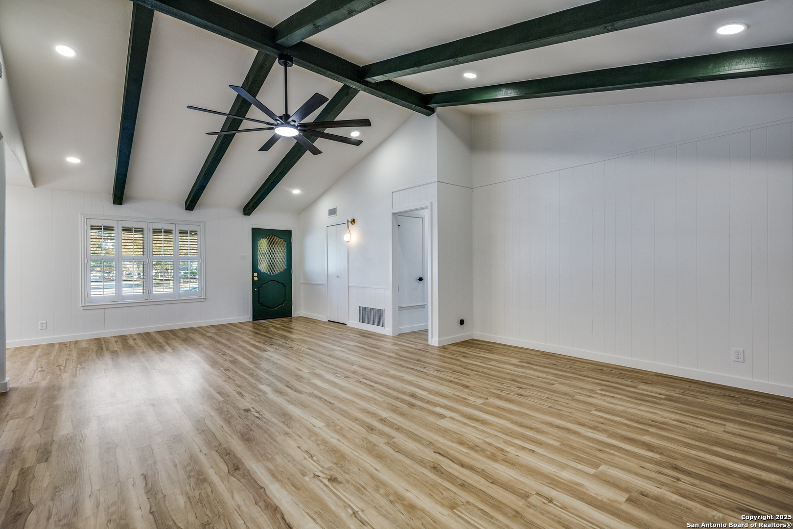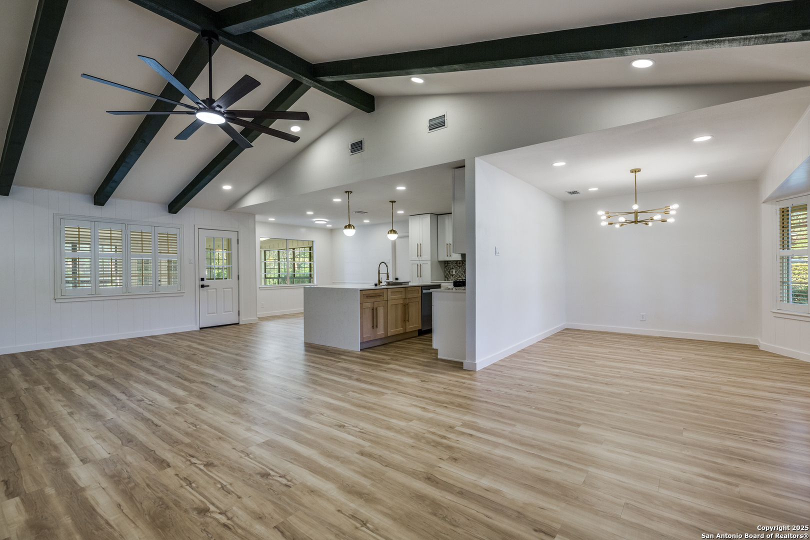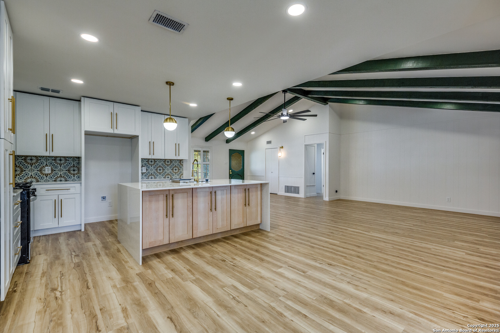 Completely renovated from top to bottom, this 3 bedroom 2 bath open concept home in MacArthur Terrace looks and feels brand new. Bright fresh interior paint, new recessed lighting and updated fixtures along with stylish new flooring throughout. The kitchen exudes luxury with elegant finishes, a stunning waterfall island, soft-close maple cabinets and drawers, brand-new appliances and countertops. Inside laundry room flows into an oversized garage that offers the perfect workshop space with built-in storage cabinets. Enjoy indoor/outdoor entertaining with family and friends in the Florida room and beautiful shaded backyard. This home is a must see for the discerning home shopper. Exterior updates include new outdoor lighting. Ideally located in a great central area-just minutes from the airport, Loop 410, Loop 1604, Hwy 281, and only 15 minutes from downtown.