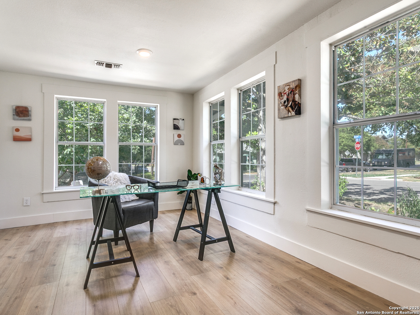 Discover timeless charm with modern amenities in this beautifully restored 1936 Craftsman style home in northcentral San Antonio. Nestled on 2 corner lots in the heart of Beacon Hill. The open floor plan offers a seamless and delightful living experience in this open and spacious home. Highlights: Fully remodeled open floor plan with 2 living areas, 3 beds and 2 full bathrooms, 2 of the bedrooms have private terraces with French doors, a cozy fireplace and the abundance of natural light throughout the home provides a serene ambiance for relaxation. Property sits on 2 lots that offers much space and flexibility. Also added is the large carport and shed for storage and hobbies. The smooth flow from living room, kitchen and bedrooms to the outdoor covered terrace makes for a wonderful blend of historic charm and modern comfort. Mature fruit and decorative plants adorn this beautiful corner lot home. At this PRIME LOCATION you are only steps away from nearby community parks and recreational facilities along with shopping, dining and entertainment venues. Also located a short distance from downtown and major highways. This home offers the perfect mix of historic charm, modern living and an unbeatable location. Don't miss your chance to own a piece of San Antonio's history in one of the highly desired neighborhoods!