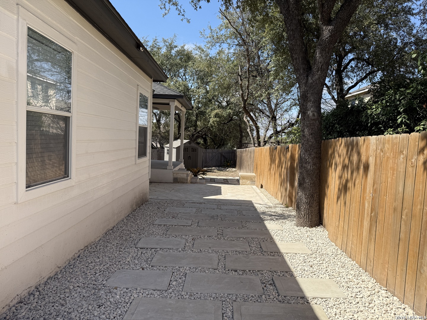Welcome to this beautifully updated one-story masonry stone home featuring 3 spacious bedrooms, a dedicated office, 2 full bathrooms, and approximately 1,880 square feet of comfortable living space. Showcasing tasteful design and a highly functional layout, this thoughtfully renovated home offers modern finishes throughout and is truly move-in ready designed to impress from the moment you arrive, with a beautifully updated metal front door that adds both style and enhanced security. The inviting living area highlights a stunning marble fireplace, creating an elegant focal point for cozy evenings or gathering with family and friends. Designer accent walls add character and warmth, while the open-concept layout flows effortlessly perfect for both everyday living and entertaining. The kitchen and surfaces shine with sleek quartz countertops, blending durability with modern sophistication. Step outside into your private backyard retreat, where mature trees provide shade, beauty, and a sense of tranquility. Enjoy your morning coffee or unwind after a long day on the side patio an ideal space for relaxing or hosting. The backyard also features a convenient storage shed, adding extra functionality. Exterior recessed lighting enhances the home's curb appeal while providing additional security and visibility at night. Situated at the end of a quiet cul-de-sac, this home offers both privacy and a peaceful setting. With a roof less than a year old, you'll enjoy added value and peace of mind for years to come. Located in a highly desirable subdivision with fantastic amenities and within an award-winning school district, this home truly checks all the boxes for comfort, convenience, and community. Meticulously maintained and in excellent condition, this home is ready to welcome its new owner. Don't miss this incredible opportunity! Schedule your showing today... this is one you don't want to miss.