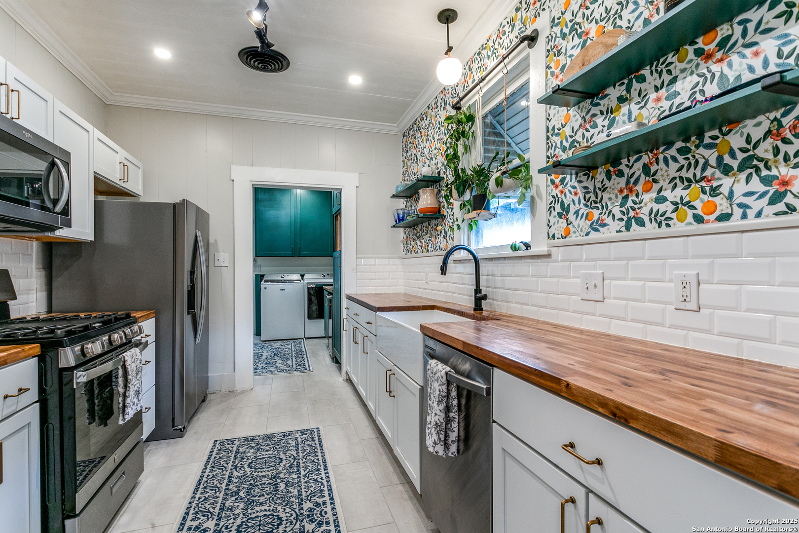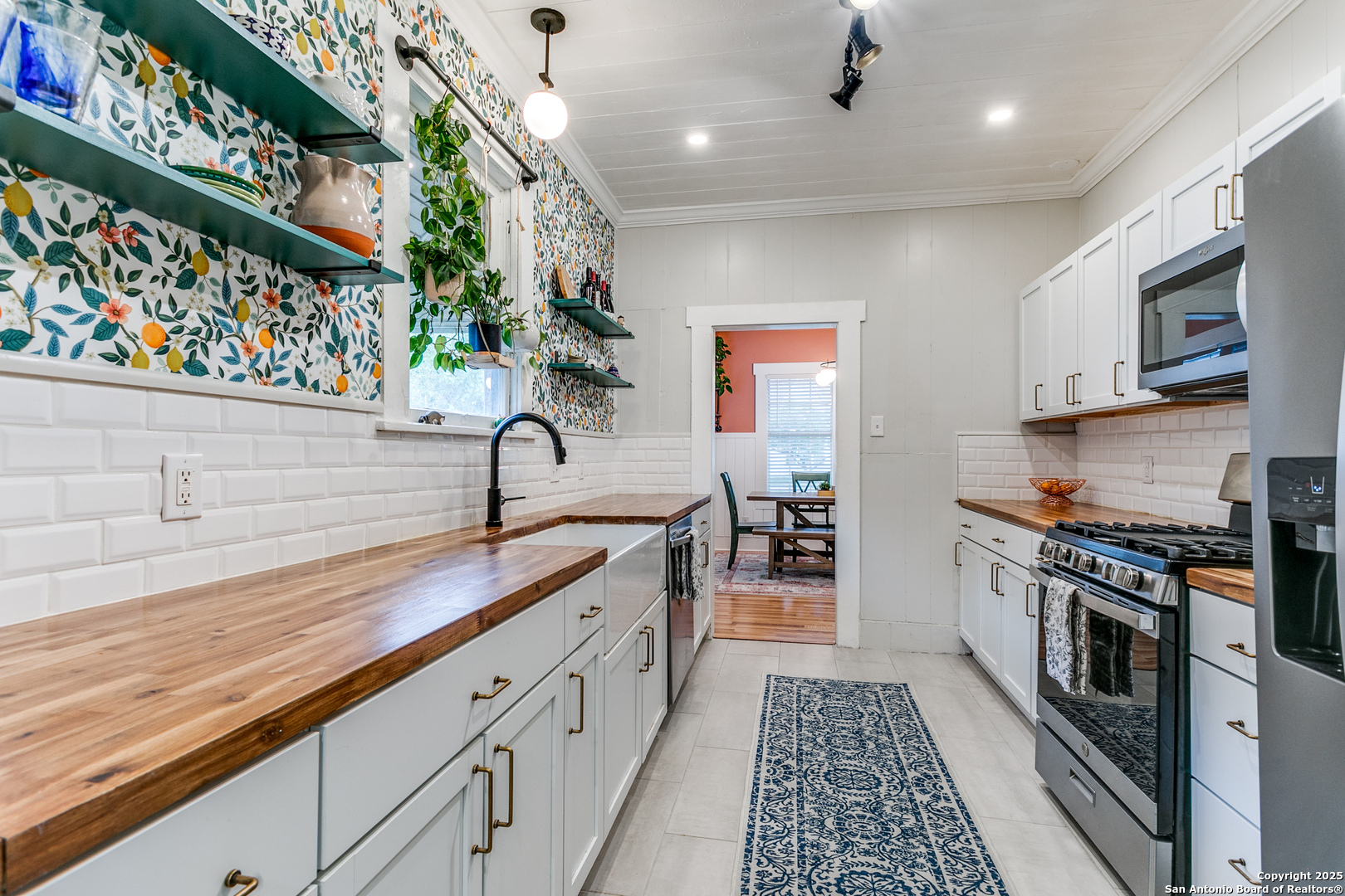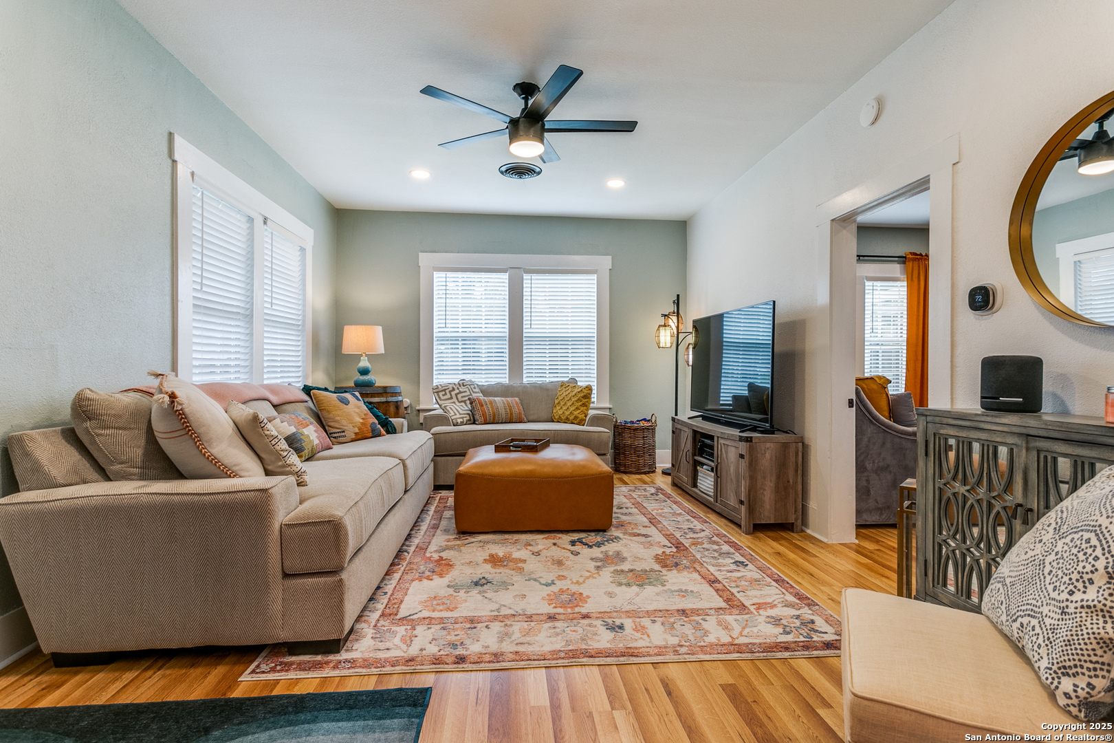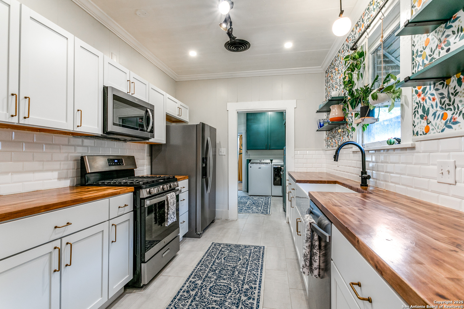 Beautifully Renovated 3-Bedroom, 2-Bathroom Home on Large Corner Lot in Great Los Angeles Heights Location, Minutes from Downtown, Shopping, Restaurants, Entertainment, & More. Wonderful Curb Appeal with Mature Landscaping & Fully-Fenced Yard, Ample Off-Street Parking with Space for Up to 4 Vehicles! Cozy Covered Front Porch Enters to Light & Bright Living Room with Refinished Hardwood Flooring, Updated Fixtures, & Recessed Lighting. Separate Dining with Accent Colors & Wainscoting Leads to Gourmet Kitchen Complete with New Cabinetry, Contemporary Butcher Block Countertops & Open Shelving, Subway Tile Backsplash, Gas Cooking, & Stainless Steel Appliances. Huge Laundry Room & Pantry with Ample Storage Space & Washer/Dryer Connections Leads to Large Florida Room with Wood Flooring, Ceiling Fan, & Backyard Access. Nicely-Sized Primary Bedroom Suite with Large Windows, Show-Stopping Bathroom with Walk-In Shower, Dual Vanities and massive custom walk-in closet. Nicely-Sized Secondary Bedrooms, Could Easily Arrange/Serve as Home Office Space, Exercise Room, Play Room or Secondary Living Area. Beautiful Secondary Bathroom with Tub/Shower & Accent Tile. Large, 2-Car Detached Garage Great for Work Area & Storage, 2 Secondary Off-Street Parking Space with Carport. 10 minutes to the Pearl and Alamo Quarry 15 minutes to JBSA Fort Sam Houston, Downtown San Antonio, and the RIM 20 minutes to JBSA Lackland Pets Case-by-Case, Each Applicant Must Complete Separate Pet Application & Profile. Renter's Insurance Required. San Antonio ISD.