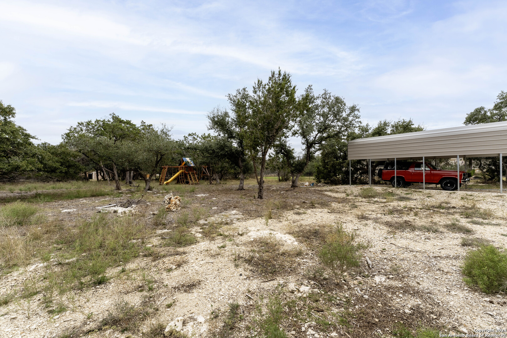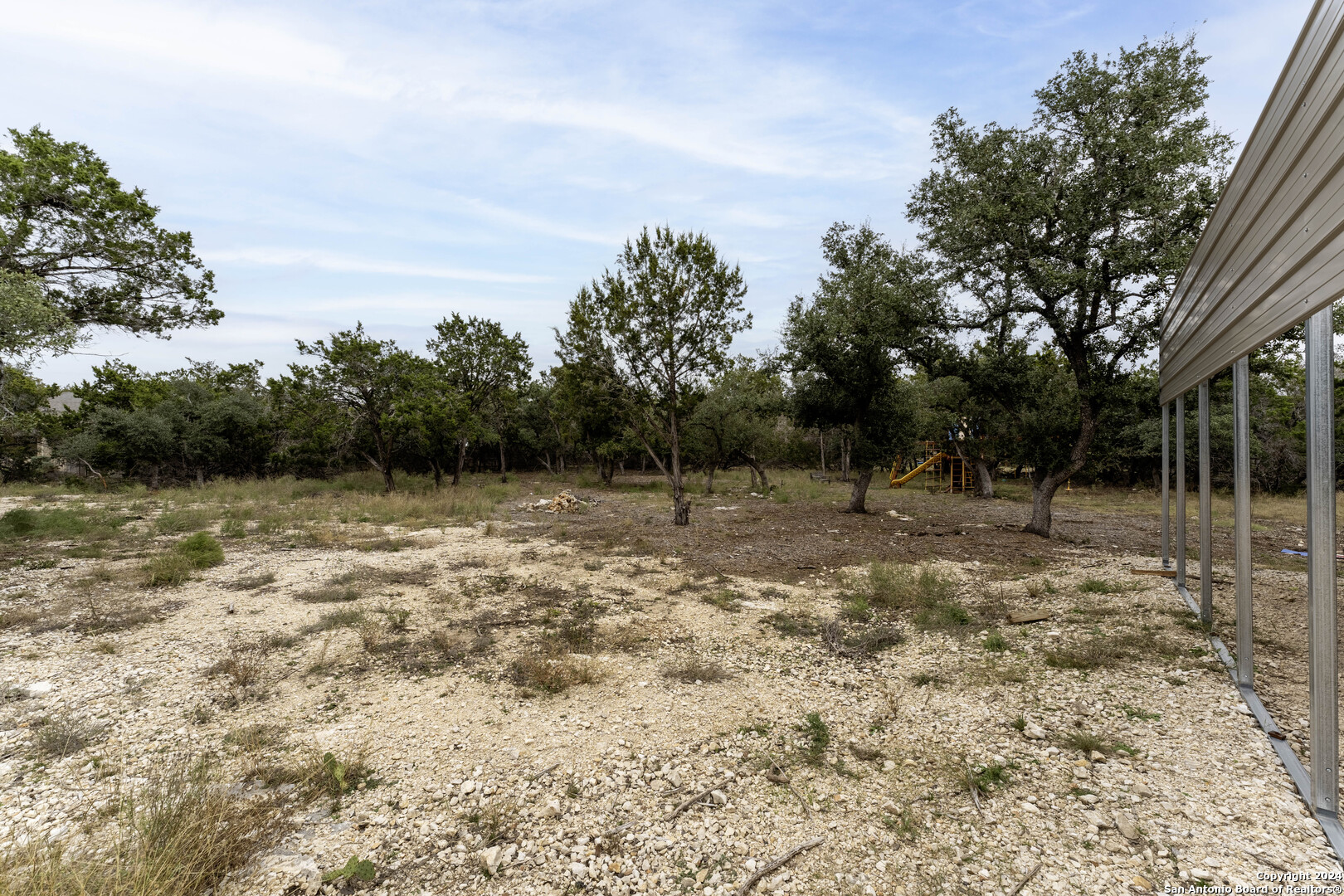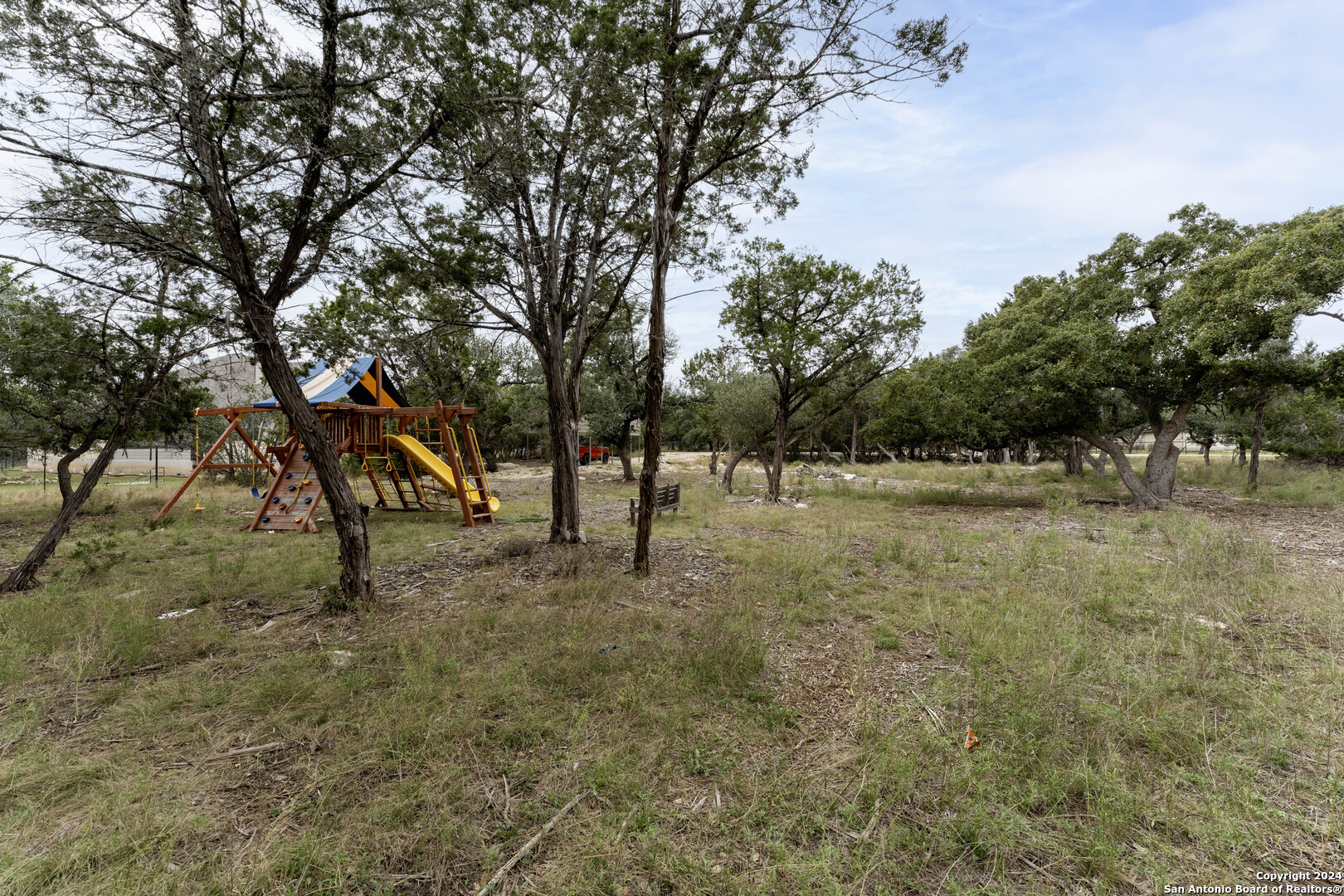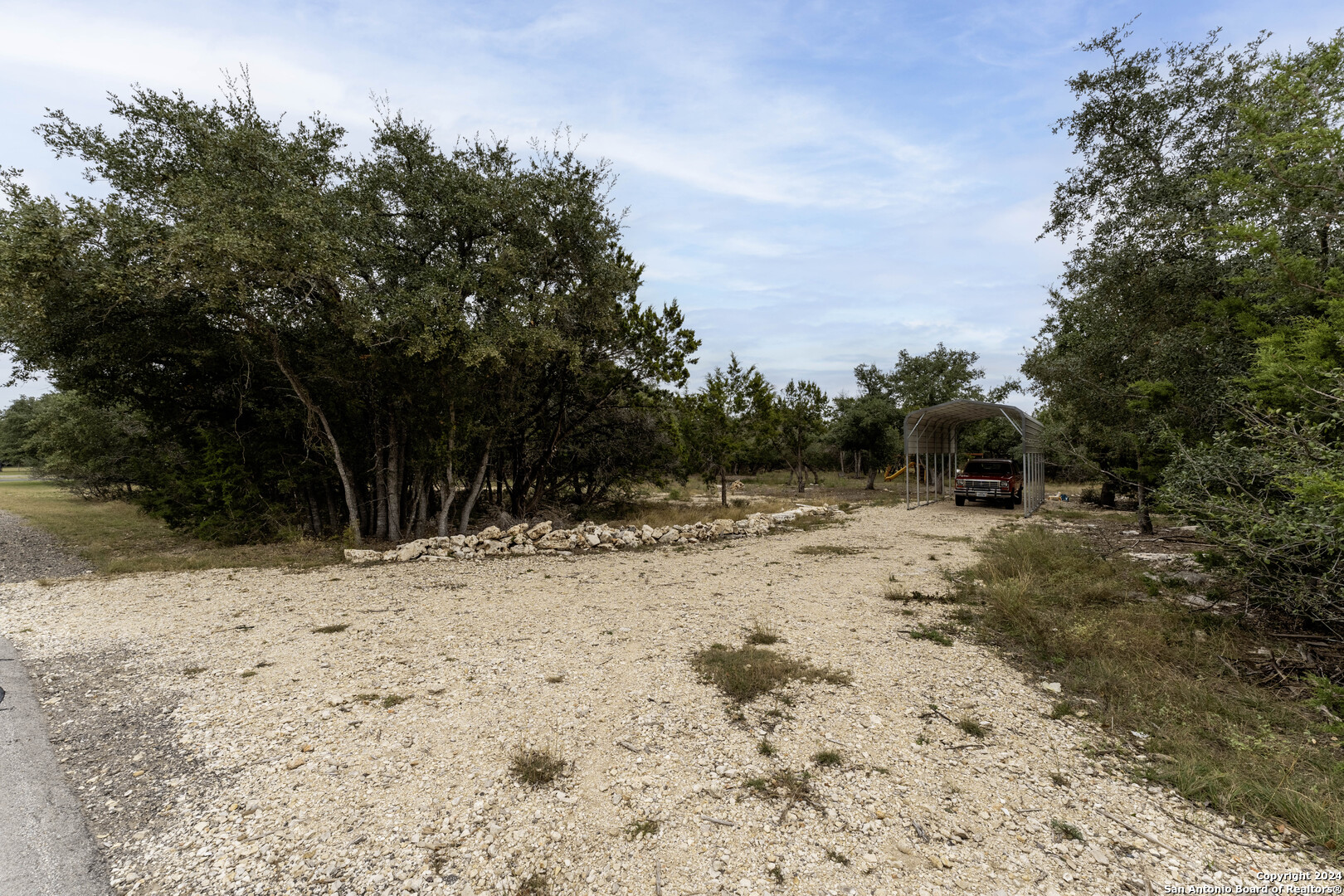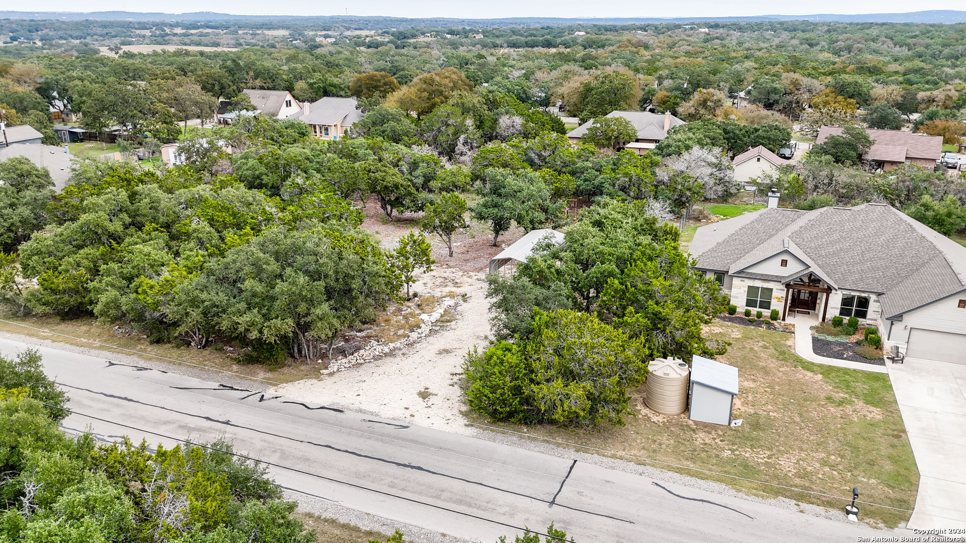 Gorgeous 1/2 acre lot with huge mature oak trees in the highly sought after Rivermont neighborhood. The lot is partially cleared and awaits your custom home!! Private access to Guadalupe River, pool park, pavilion, tennis/basketball court, restrooms and BBQ pits for property owners! Gravel parking pad already laid, minimal restrictions, no time frame to build. *Playset and metal parking cover are negotiable.