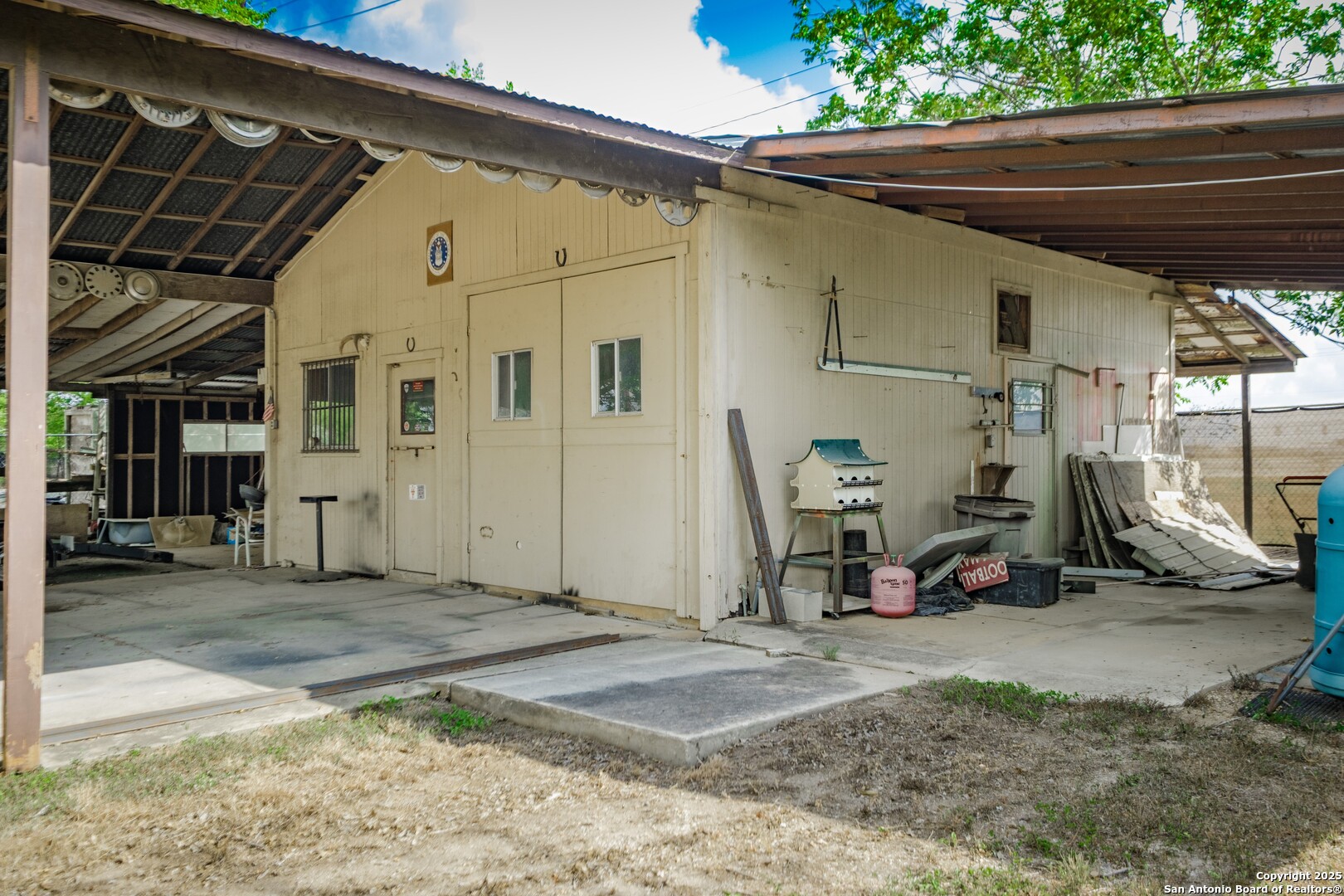 Fully fenced corner lot with commercial and investor potential, situated in a residential neighborhood and currently used as storage. This unique property includes a small building with electricity and other utilities on-site, plus a pad for RV storage. A 4-car attached carport provides ample covered parking and added functionality. The location is hard to beat, directly across from Randolph High School on Randolph Air Force Base, making it an excellent option for anyone connected with the base. Loop 1604 is just around the corner, offering quick access to I-35 and I-10 for convenient commutes into San Antonio and surrounding cities such as Schertz, Universal City, and Live Oak. Everyday needs are close by, with The Forum Shopping Center at Olympia Parkway, H-E-B, Walmart, and a wide variety of restaurants just a short drive away. The area also benefits from a strong military community presence, as well as nearby parks and local amenities. Don't miss the chance to own this distinctive property with versatile potential in a prime Converse location.