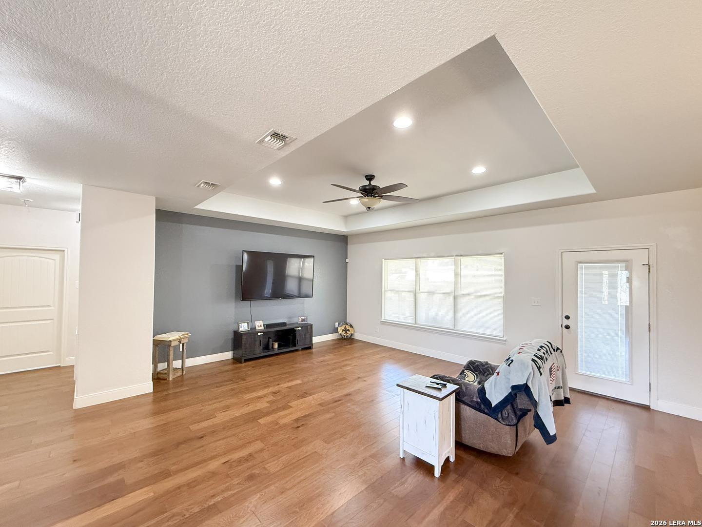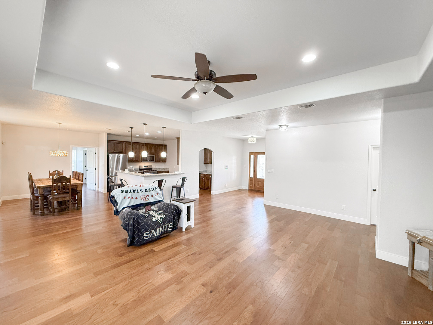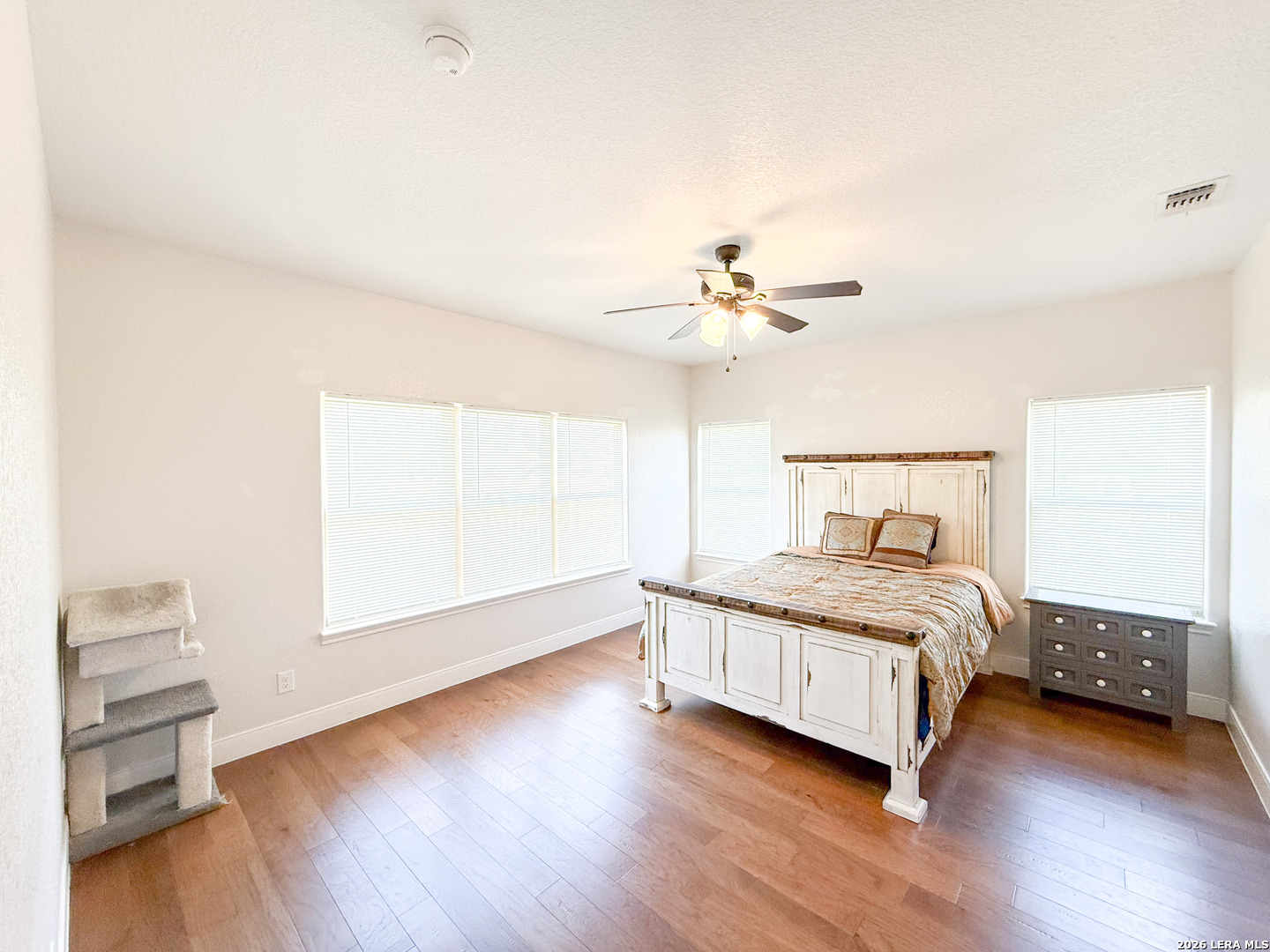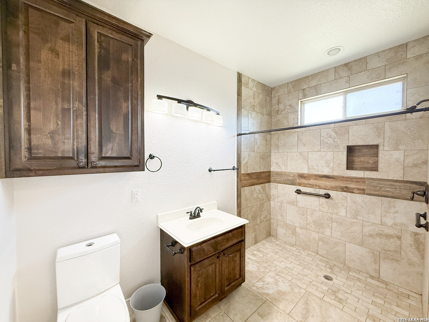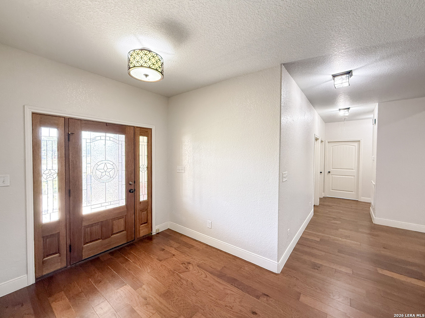 Welcome to your next dream home! Featuring a classic brick exterior and a spacious front porch, you get instant inviting curb appeal and a welcoming place to relax and unwind. Inside, you'll find a well-designed layout with a generously sized living room that flows seamlessly into the dining area and kitchen, making entertaining or hosting a breeze. The kitchen is equipped with sleek stainless steel appliances, ample cabinetry, and plenty of workspace to meet all your cooking needs. The primary bedroom serves as a private retreat, complete with a walk-in closet and an oversized ensuite bathroom designed for comfort. Two secondary bedrooms boast an ensuite, offering flexibility for guests or multi-generational living. Step outside to enjoy a covered back patio overlooking a sizable yard, perfect for outdoor gatherings, pets, or simply enjoying Texas weather. Conveniently located near city amenities, this home offers easy access to shopping, dining, and entertainment, while being just minutes from the highway for a quick commute to San Antonio. Schedule a showing and start envisioning life rooted in comfort and style.