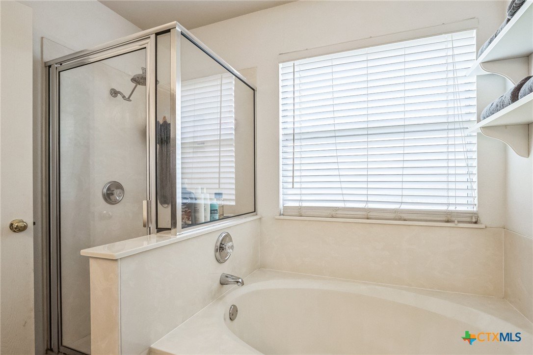 Come see this original owner cul de sac lot home in the desirable Horizon Park community! This 2 story 3 bedroom 2.5 bath home features a spacious yard and an open floor plan inside. Walk in to the welcoming entry way and envision yourself home with vaulted ceilings and engineered wood flooring in the majority of the downstairs area. The spacious living room leads into the kitchen and dining area with updated white appliances. The primary bedroom is on the main floor and features a walk in closet, dual vanities, garden tub, and a separate shower. Upstairs features a loft that looks down into the living area, a full bathroom, and 2 more bedrooms. The shaded backyard features and extended patio that is partially covered and a shed. Plenty of room to entertain and BBQ with friends. The neighborhood features an abundance of playgrounds, walking/hiking trails, basketball courts, a volleyball court, and a pool. Water softener will not convey. Seller is offering a flooring allowance.