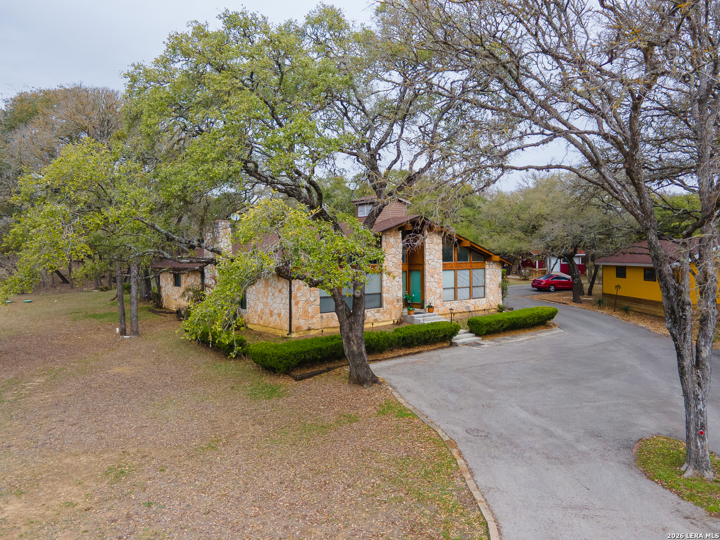 THIS IS A ONE-OF-A-KIND PROPERTY. MAIN HOME PLUS 4-PLEX WITH 4 EFFICIENCY APARTMENTS, 1 GUEST HOUSE THAT IS AN EFFICIENCY APARTMENT, PLUS EFFICIENCY IN A CONVERTED GARAGE AND AN ADDITONAL BUILDING USED FOR A GYM FOR THE COMPLEX. A TOTAL OF 7 HOMES, INCOME PRODUCING OR MULTI-GENERATIONAL COMPLEX OR GREAT FOR RETREAT OR SHORT-TERM RENTAL. THE MAIN HOME IS 2822 SF, 3 BEDROOMS, 2.5 BATHS, LARGE FOYER, CHEF'S KITCHEN WITH LARGE BREAKFAST BAR ISLAND, DOUBLE OVEN, DOUBLE STAINLESS STEEL SINK, UPGRADED COUNTER TOPS AND LOTS OF CABINETS, PLUS A LARGE PANTRY. THE FOYER CAN BE USED AS A FORMAL LIVING AREA, READING ROOM OR MORE. THE LIVING ROOM HAS A BEAUTIFUL STONE FIREPLACE WITH STOVE INSERT AND MADE FOR RELAXING AT THE END OF THE DAY. HUGE FORMAL DINING ROOM ADJOINS THE KITCHEN IS MADE FOR YOUR LARGEST GATHERINGS. THERE IS EVEN A SECOND BREAKFAST BAR AT THE END OF THE KITCHEN. LARGE MASTER WITH AN ADJOINING OFFICE/SITTING AREA CAN BE CLOSED OFF FOR MORE PRIVACY TO USE AS AN OFFICE OR LEFT OPEN FOR LARGER BEDROOM. LUXURY BATH FEATURES CUSTOM WOOD VANITY WITH DOUBLE SINKS, HUGE SHOWER AND BIG CLOSET. THE OTHER TWO BEDROOMS ARE BIG AND HAVE AMPLE CLOSET SPACE. ALL THIS PLUS 6 INCOME PRODUCING HOMES ON THE PROPERTY, A BUILDING FOR A GYM, ALMOST 5 ACRES AND EVEN ACCESS TO AN UNDERGROUND CAVE. 4 OF THE 6 UNITS CURRENTLY RENTED FOR $4400.00 PER MONTH AND KEEPING 2 OPEN FOR SHOWINGS. OUTSIDE OF THE HOMES THEY FEATURE DECKS ON MOST OF THEM TO ENJOY THE QUIET PARK-LIKE SURROUNDINGS. ONLY 3.4 MILES TO TEXAS STATE UNIVERSITY SO THERE IS NEVER A LACK OF PEOPLE WANTING TO RENT THE CABINS.