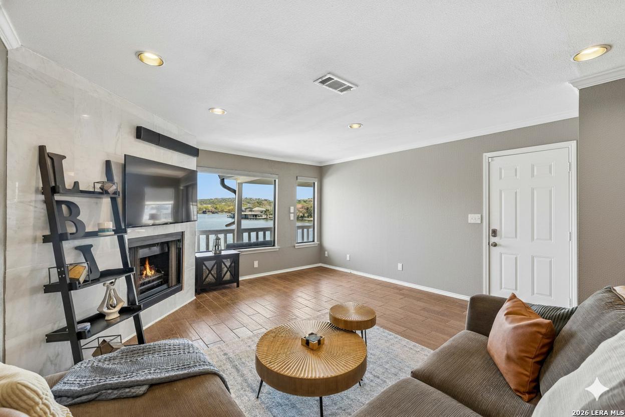 Recently remodeled Lake LBJ waterfront condo in the gated Island Village community of Horseshoe Bay. With 1,174 sq. ft., expansive open water views, and easy access to the lake, this property is ideal for a weekend getaway or full-time lakefront living. Inside, the updated interior brings fresh style and comfort, while the living space and windows keep the water views front and center. The layout is easy to enjoy, easy to maintain, and built for the kind of lock-and-leave lifestyle buyers want on Lake LBJ. The community amenities make the lake lifestyle even better. Enjoy a private pool just steps away, plus allotted PWC space, availability for a day slip for boats, and a fishing dock for time on the water. A 1-car detached garage adds convenience and storage. The location puts you close to everything that makes Horseshoe Bay special. You're a short walk to the Yacht Club, Horseshoe Bay Resort Spa, and Horseshoe Bay Resort, with nearby access to great restaurants, shopping, five championship private golf courses, and five public courses. Fredericksburg and Texas Wine Country are also within reach for easy day trips. With constant water levels on Lake LBJ, the lake lifestyle doesn't take a season off. Open water views. Gated community. Remodeled interior. Resort access. This is Horseshoe Bay lake living done right.