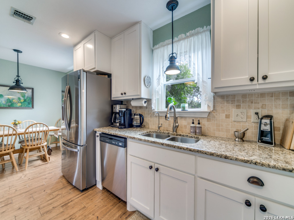 Incredible long-rang Hill Country skies and sunsets abound from both spacious front and back covered porches to catch a breeze on 5+ secluded acres. This lovely 2056sf single-story Boerne home is move-in-ready with many recent updates and impeccable maintenance. Bring your animals, your workshop projects and your need for peace and quiet. Only minutes outside of Boerne just past Boerne Lake in coveted Sparkling Springs in exemplary Boerne ISD! The soaring living room ceiling is accented by a stone wall behind the Vermont wood-burning stove and opens to the breakfast bar and the breakfast area. A sunny laundry room with a utility sink and an extra fridge is just off the kitchen. A standing seam metal roof, a well enclosed in a wellhouse and septic system make this a low-utility property. A wonderful workshop with a loft area is ready for your projects along with an additional storage building. Trees can be cleared to make room for animals or projects. So much to offer - come see your Boerne dream home just minutes from downtown Boerne and a quick commute to San Antonio...