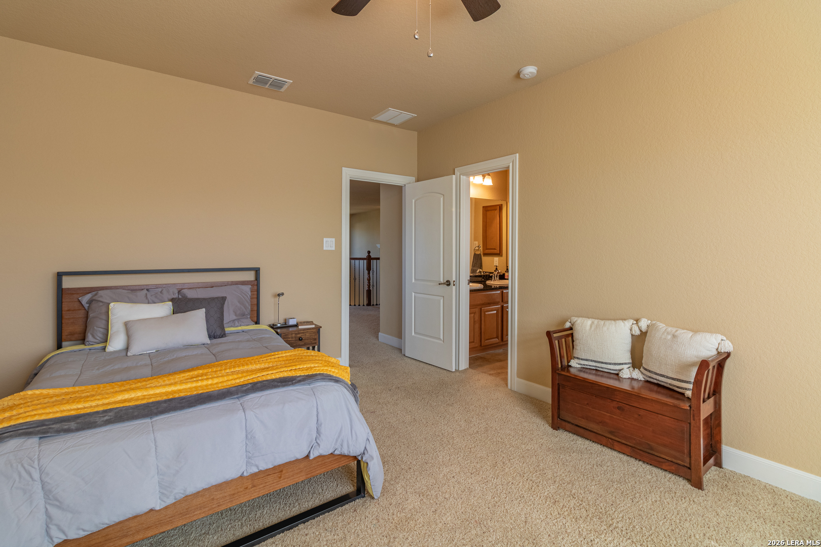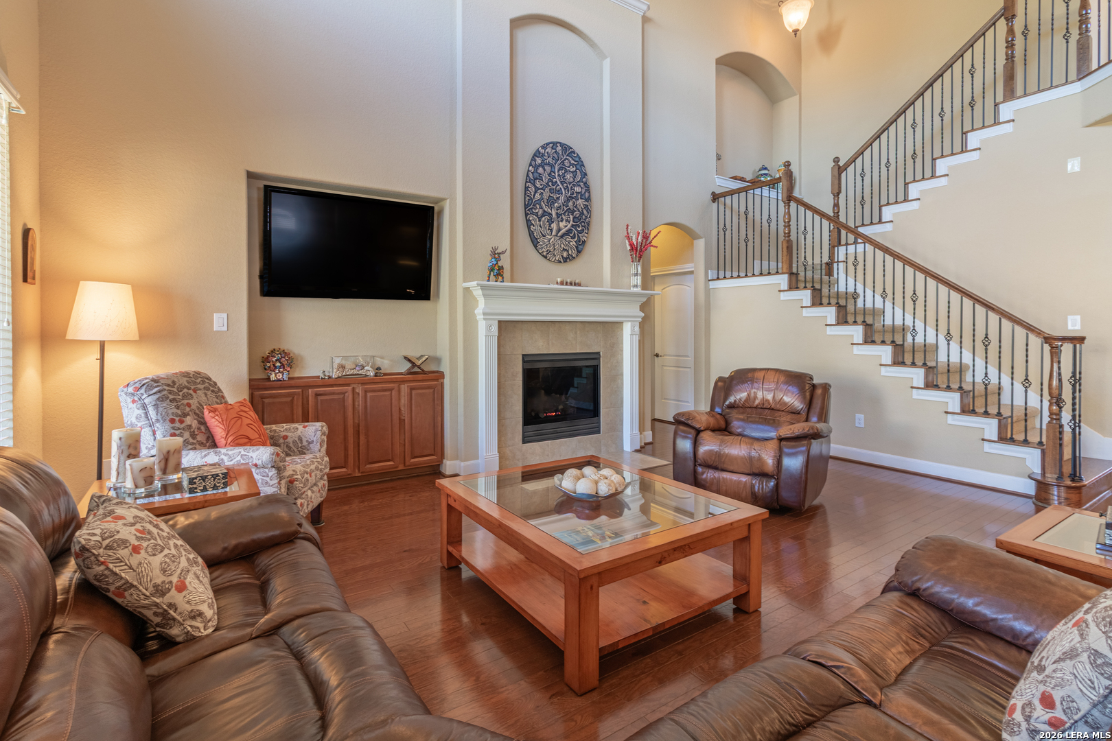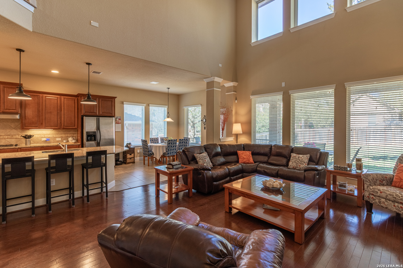 Open House March 14-15 from 12-3pm. Welcome to Terra Bella, where beautiful homes, scenic walking trails, and resort-style neighborhood amenities create a lifestyle residents love. From the moment you step inside, soaring ceilings and abundant natural light create an open, welcoming atmosphere that instantly feels like home. The spacious entry leads to a dedicated office, ideal for working from home, while the main living area flows seamlessly into the kitchen and dining spaces, making it perfect for both everyday living and entertaining. The kitchen features granite countertops, an eat-in dining area, a walk-in pantry, and easy access to the formal dining room for large gatherings, along with a conveniently located half bath downstairs that is perfect for guests. The oversized primary suite is privately situated on the main level with beautiful views of the backyard. Upstairs offers generously sized secondary bedrooms, two full bathrooms, and a versatile loft space ideal for a game room or additional living area. Step outside to enjoy the oversized patio with a gas hookup ready for outdoor grilling and relaxing evenings under the mature oak trees. Conveniently located less than a mile from H-E-B. Come see why so many love calling Terra Bella home.
