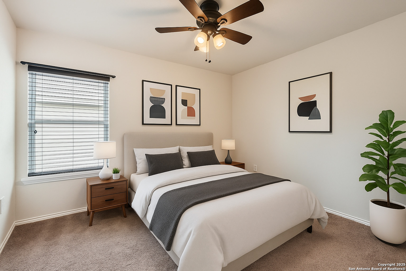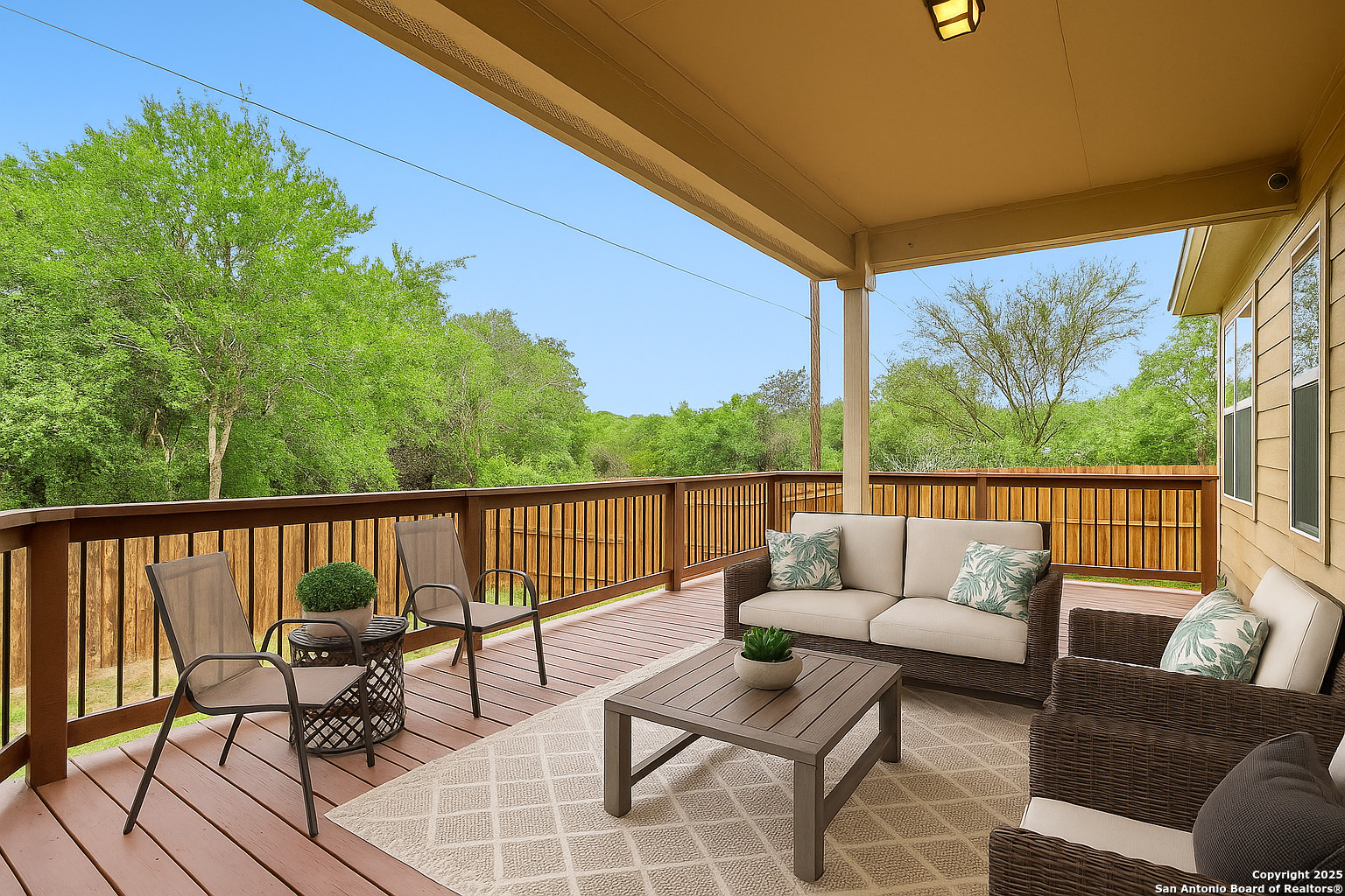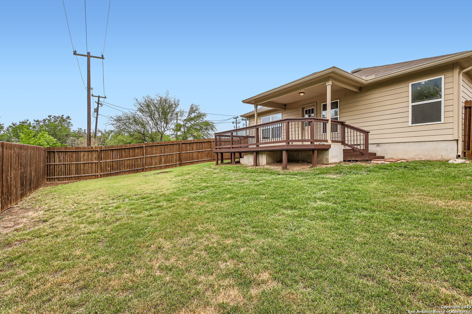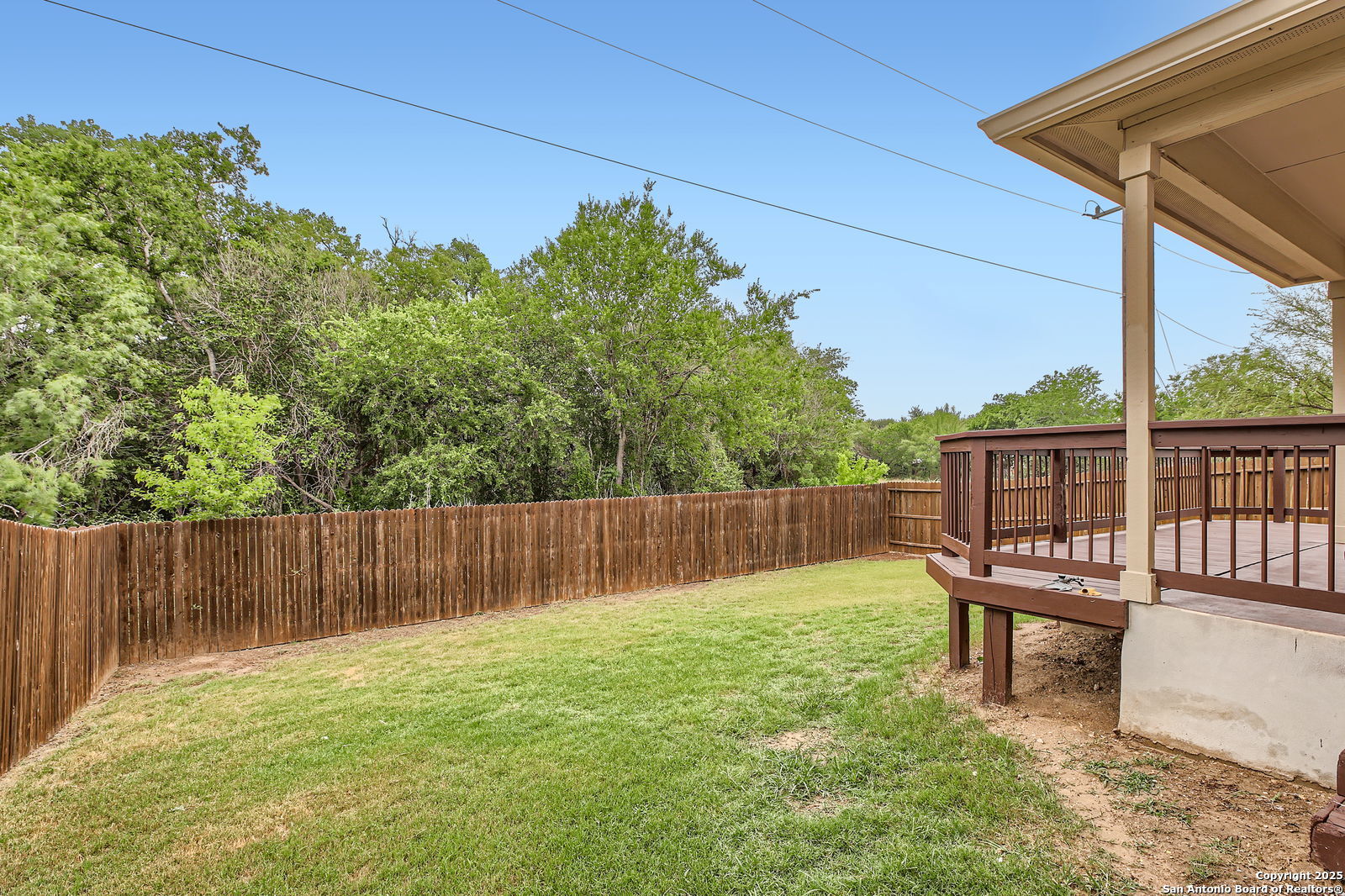 Enjoy private deck in backyard that backs to a wooded greenbelt! For addll privacy there's a community owned lot on the right side! Lots of space to relax and enjoy. Immaculate 3 bdrm plus study, 2 bath home with open floorplan. Study up front could be used as a formal dining room. Open kitchen. Lots of storage space - check out the extra closet by the back - other plans don't have this extra space! Spacious primary bedroom with en suite bath and huge walk in closet. Upgraded HVAC system to keep you cool! Neighborhood amenities within walking distance include pool, park and playground. EZ commute via Loop 410 to Toyota, Brooks City Base, Texas A&M, shopping, and the San Antonio Missions yet tucked quietly off of the main roads - Come See!