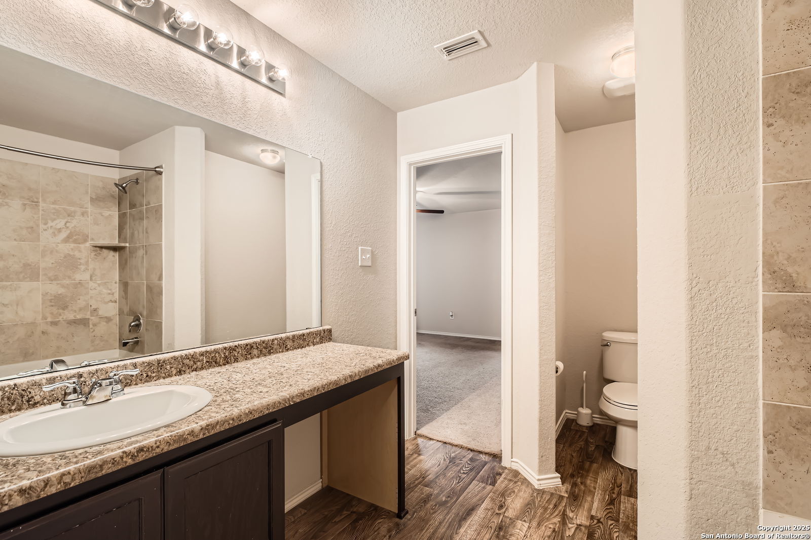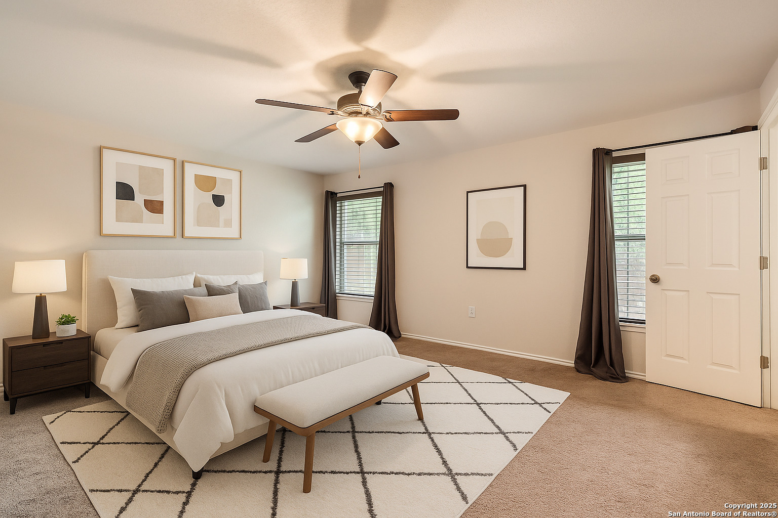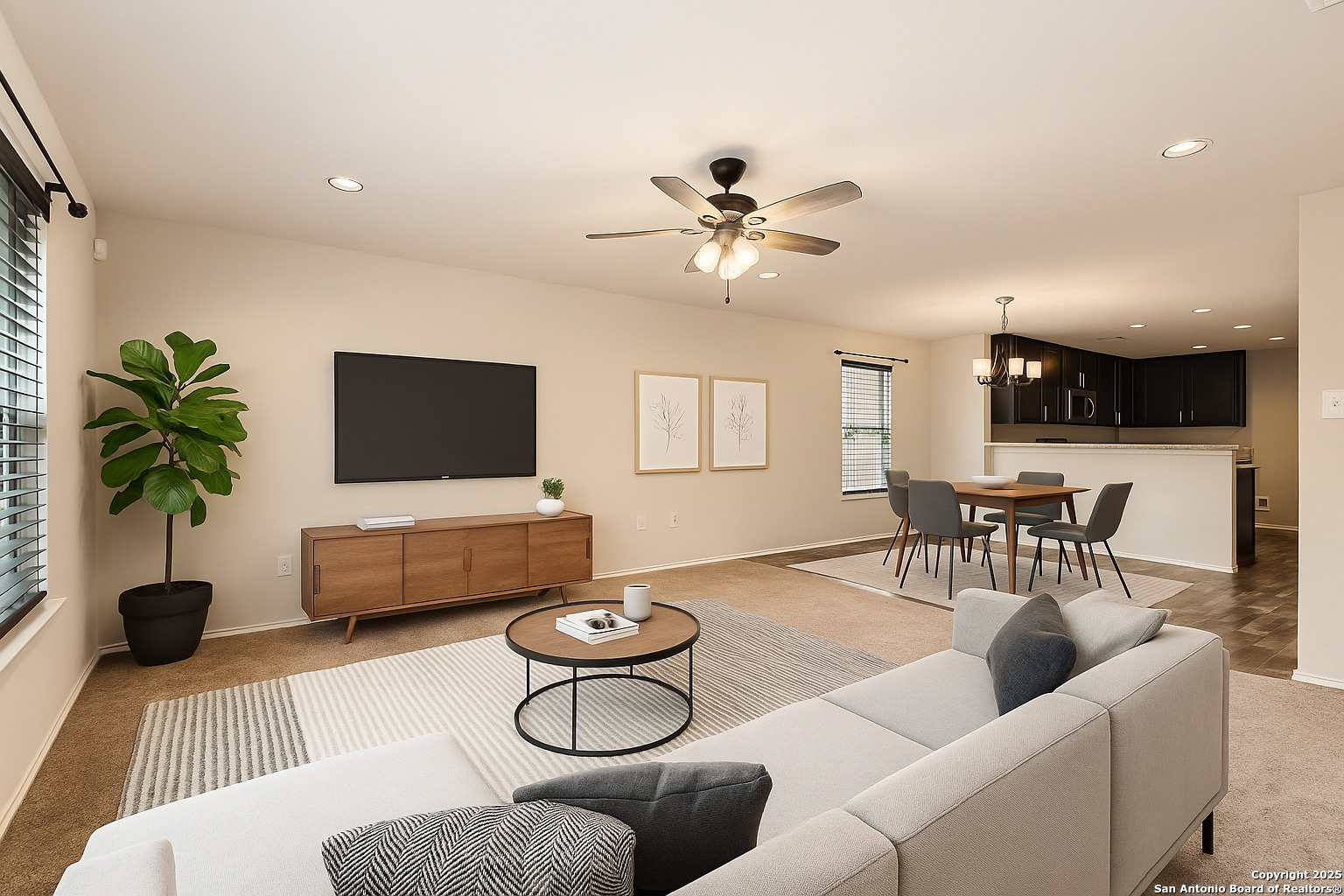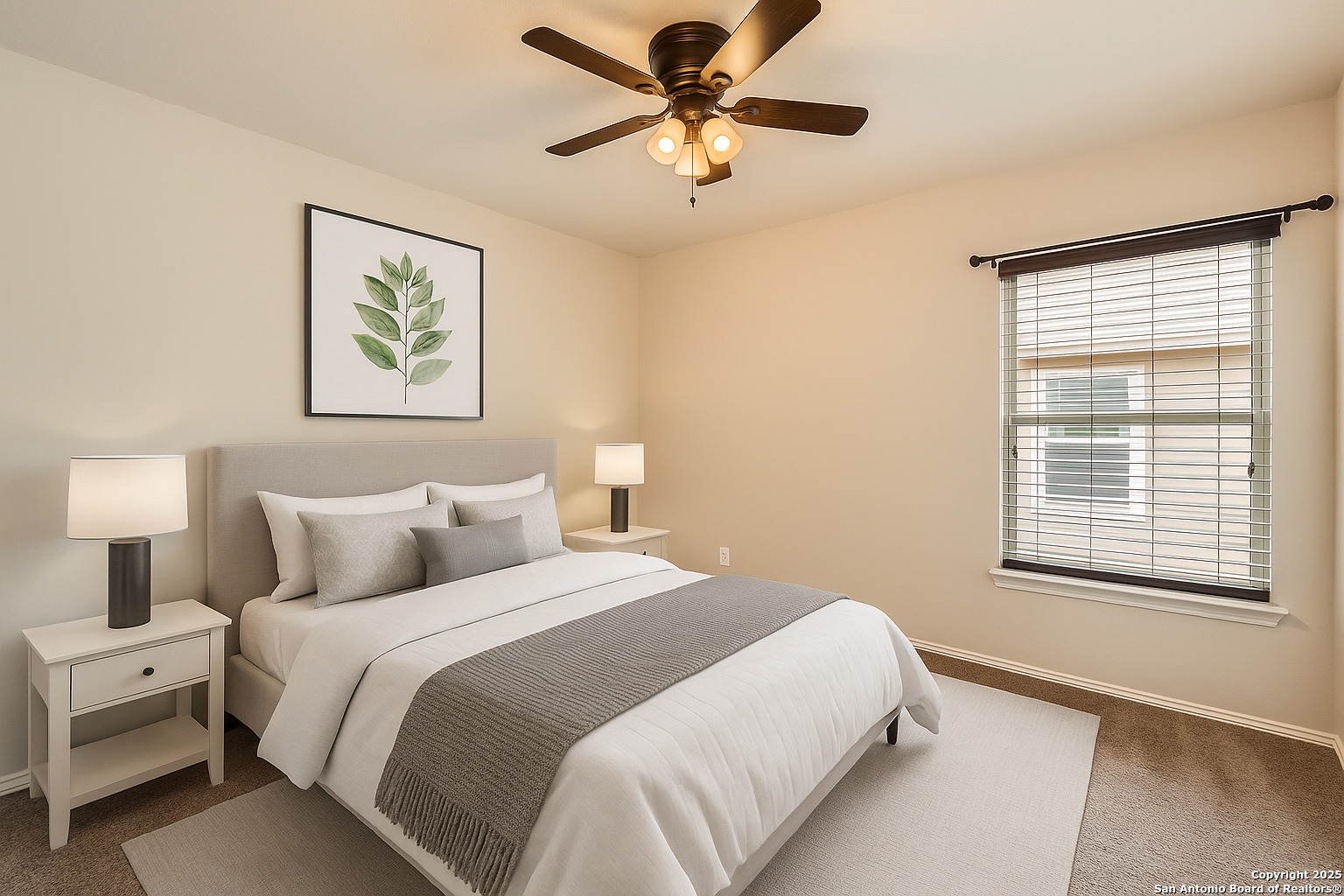 Enjoy private deck in backyard that backs to a wooded greenbelt! For addll privacy there's a community owned lot on the right side! Lots of space to relax and enjoy. Immaculate 3 bdrm plus study, 2 bath home with open floorplan. Study up front could be used as a formal dining room. Open kitchen. Lots of storage space - check out the extra closet by the back - other plans don't have this extra space! Spacious primary bedroom with en suite bath and huge walk in closet. Upgraded HVAC system to keep you cool! Neighborhood amenities within walking distance include pool, park and playground. EZ commute via Loop 410 to Toyota, Brooks City Base, Texas A&M, shopping, and the San Antonio Missions yet tucked quietly off of the main roads - Come See!