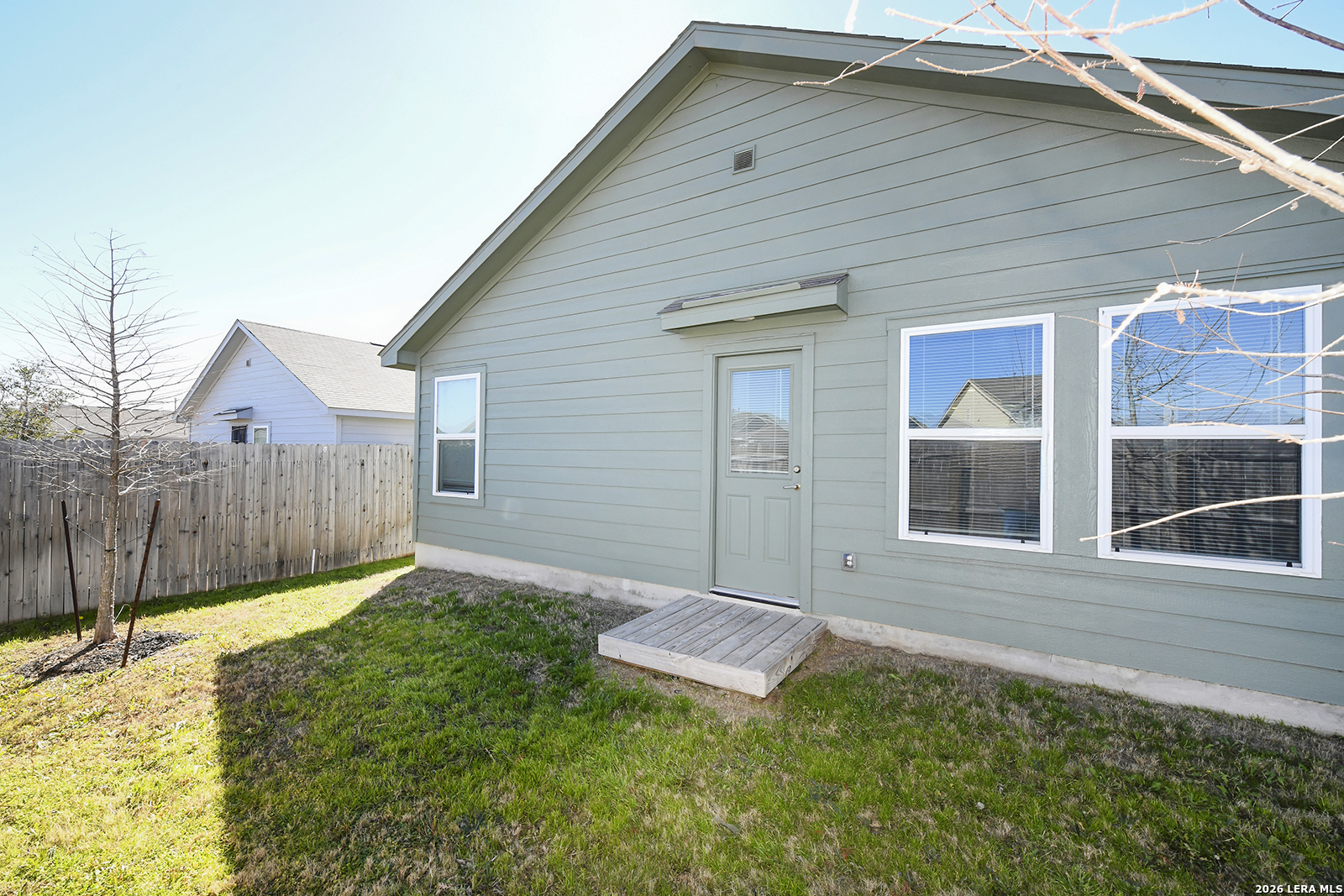 Step into this inviting single-story home with a modern open-concept layout that seamlessly connects the kitchen, dining, and family room-ideal for everyday living and entertaining. The private owner's suite is tucked at the rear of the home and features an en-suite bath and walk-in closet, while three additional bedrooms near the entry offer flexibility for guests, roommates, or a home office. Located in the vibrant and growing VIDA community, just minutes from Texas A&M University-San Antonio and Palo Alto College, this home is perfect for homeowners, students, or investors. The 4-bedroom, 2-bath layout offers spacious living areas, a stylish kitchen, and comfortable bedrooms. Enjoy added privacy in the backyard with no neighbors directly behind, plus easy access to nearby playgrounds and community spaces. Don't miss your opportunity to own in one of Southside San Antonio's fastest-growing neighborhoods.
