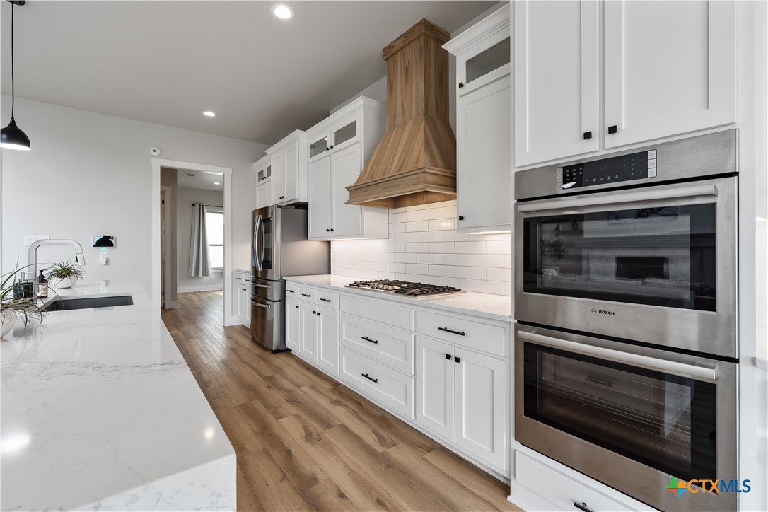 Architect built by Orchard Valley Homes, this Enclave at Lake Belton showpiece pairs soaring design with serene lake area living. A dramatic foyer with 26 ft vaulted ceilings opens to a sun filled great room anchored by a fireplace and Lake Belton views. The chef’s kitchen impresses with custom cabinetry, an oversized quartz island, double ovens, gas cooktop, walk in pantry, and stainless appliances. The main level owner’s suite offers a spa bath with standalone tub, separate shower, and dual walk in closets. A thoughtful split plan features generous secondary bedrooms, a mudroom, and an upstairs media/flex room. Outdoor living shines with two expansive decks, one with a pergola, overlooking the Hill Country backdrop, perfect for quiet mornings or sunset entertaining. Additional highlights include spray foam insulation, a tankless water heater, a three car garage, community/co op water, and aerobic septic. Set on approximately 1.17 acres in a gated community with a private neighborhood trail to Lake Belton and no city taxes. Seller is willing to consider seller financing or creative solutions.