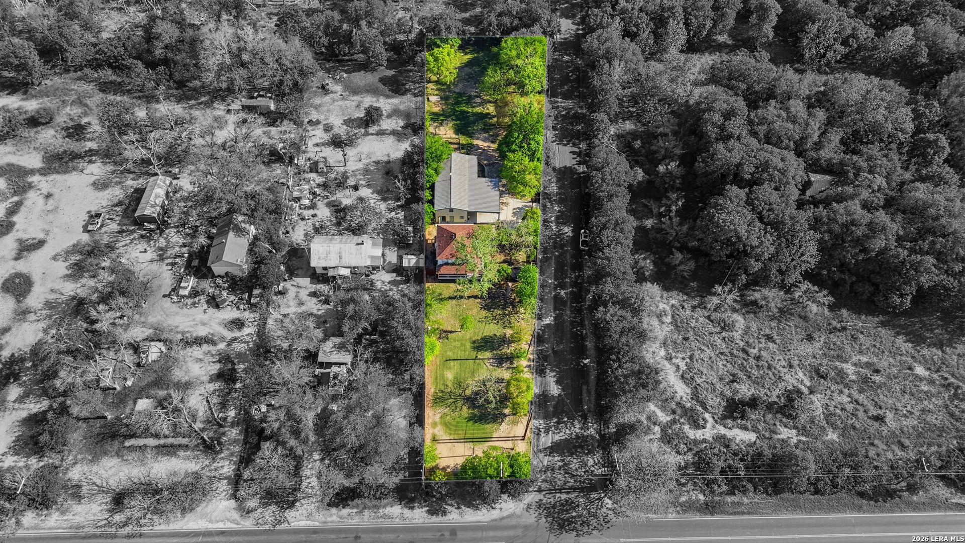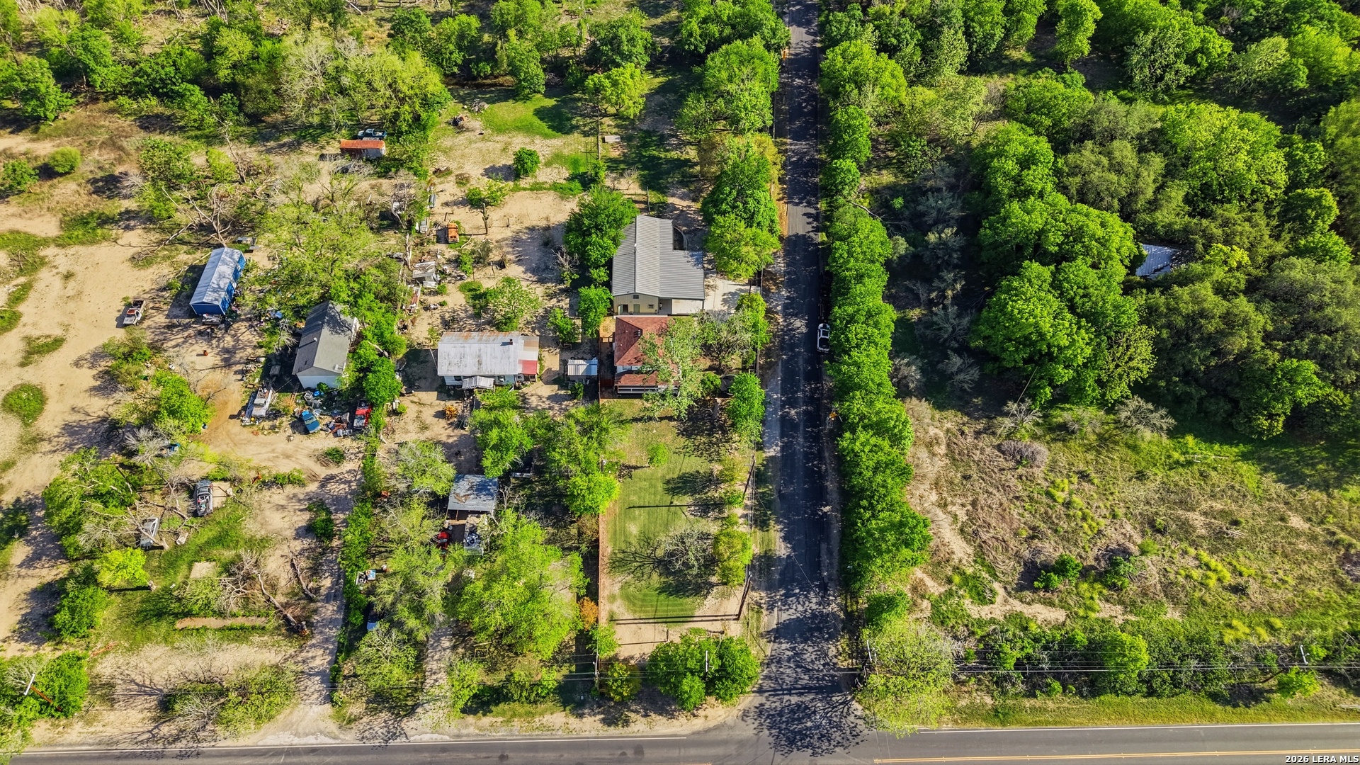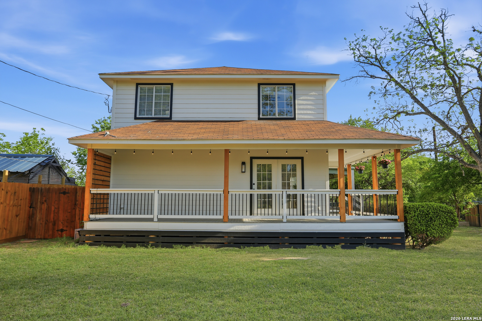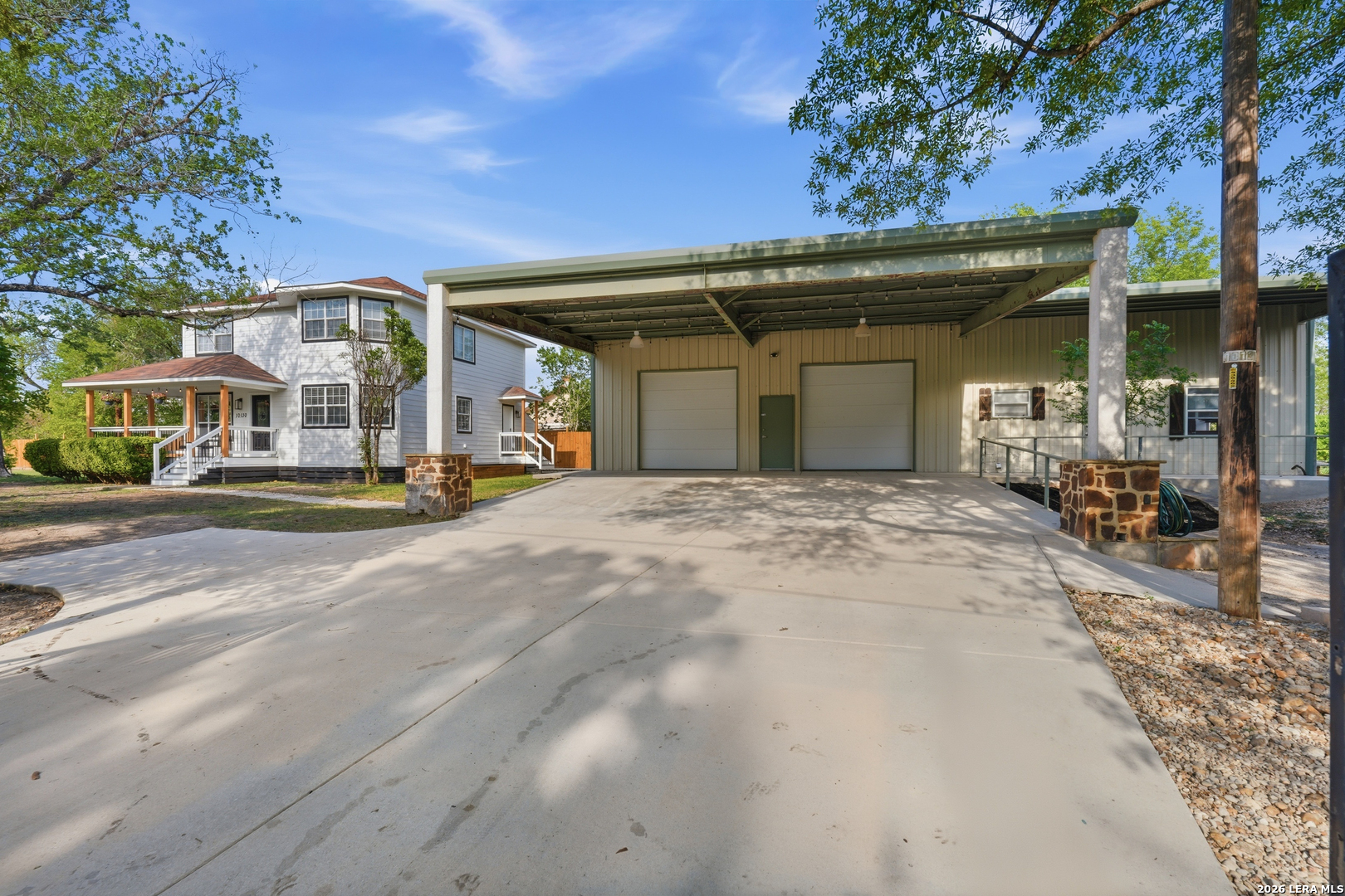 Oversized 42' x 22' workshop, 31' x 17' carport, detached ADA-compliant apartment, and 1.24 acres of usable land. This freshly renovated property delivers space, flexibility, and functionality with quick access to Hwy 90 and an easy commute to downtown San Antonio. The workshop-style garage with oversized doors is ideal for trades, storage, or working from home, while the additional carport adds even more covered space. The main home has three bedrooms, and two baths, while the detached apartment offers one additional bedroom, an additional bathroom and the large workshop also offers an additional garage. The main house has been recently updated with fresh interior paint, new flooring, updated cabinetry, countertops, and appliances, creating a clean and cohesive feel throughout. The kitchen features butcher block countertops, subway tile backsplash, an oversized stainless steel vent hood, and a farmhouse sink, all thoughtfully designed with a modern touch. The primary suite includes a recently renovated bathroom with dual vanities, updated cabinetry, a walk-in shower, and stylish white and gray tile finishes. A wraparound porch with cedar posts adds character and provides a great place to relax and enjoy the surrounding acreage. The detached ADA-compliant one-bedroom apartment includes a full kitchen, living area, and bathroom, ramp access, wide doors, hand rails, that is ideal for guests or additional living space. Situated on a corner lot with convenient highway access, this property offers a rare combination of land, improvements, and versatility. Buyer to verify all measurements, schools, and details.
