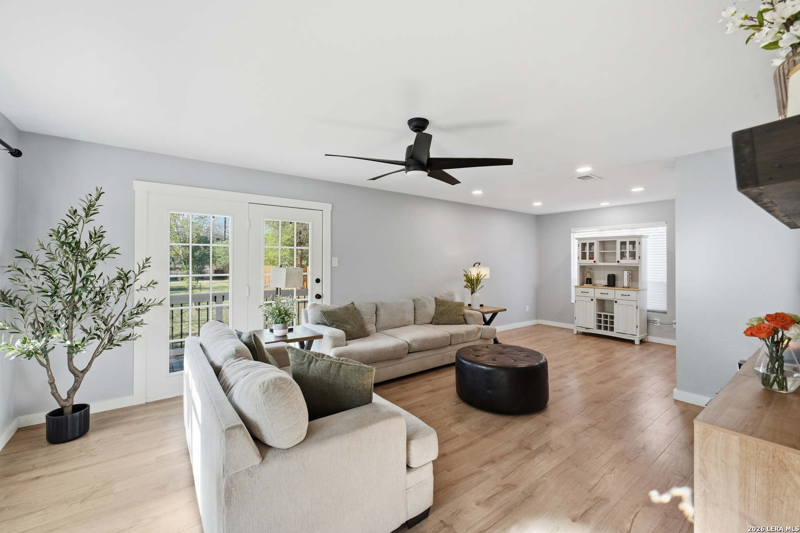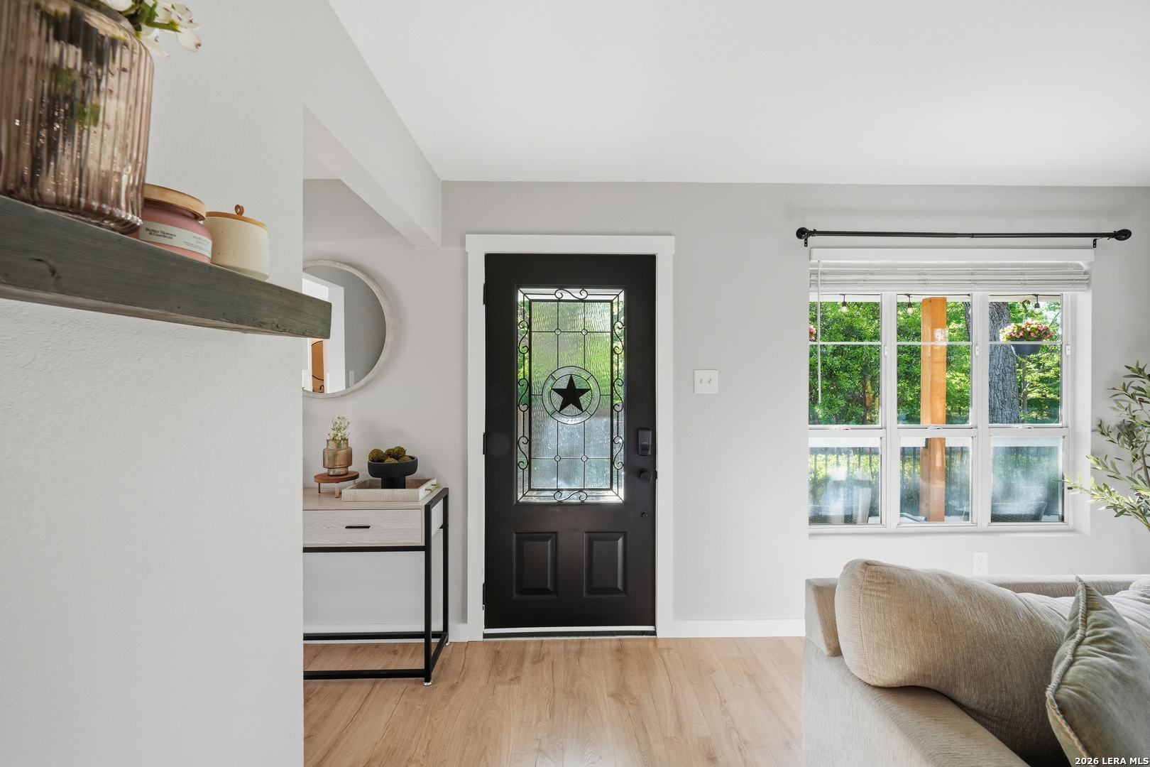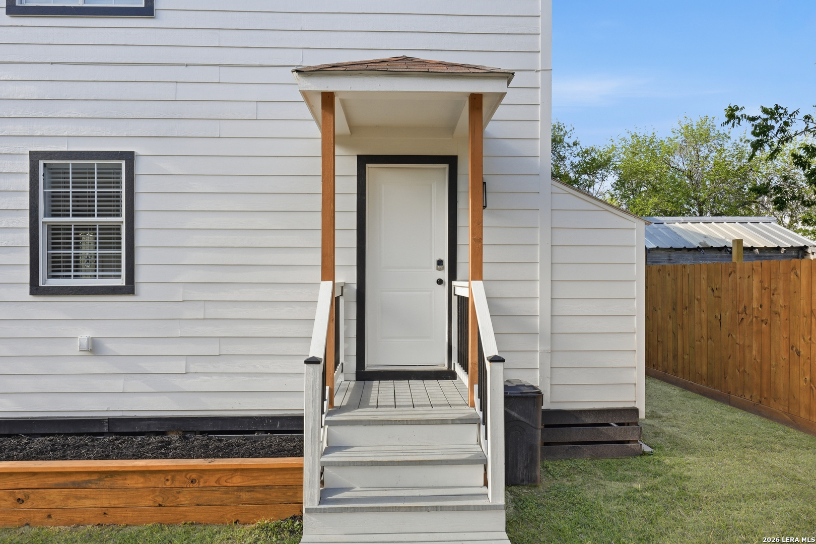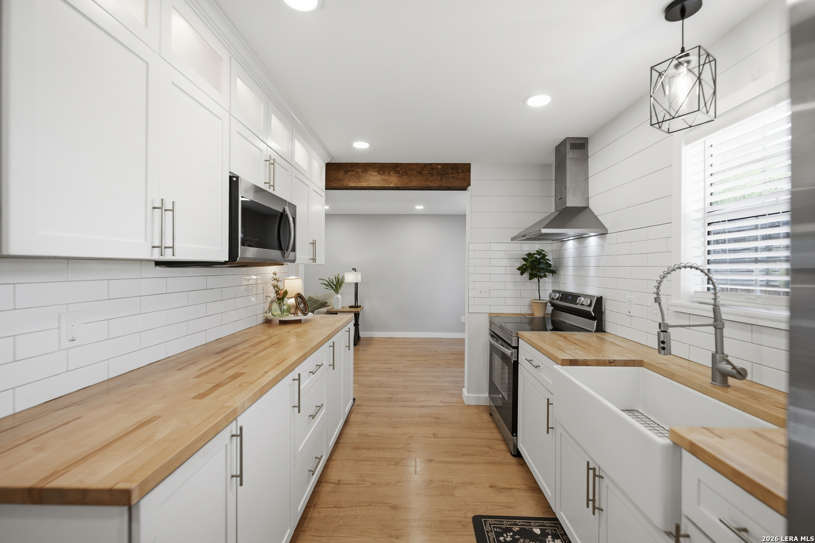 Oversized 42' x 22' workshop, 31' x 17' carport, detached ADA-compliant apartment, and 1.24 acres of usable land. This freshly renovated property delivers space, flexibility, and functionality with quick access to Hwy 90 and an easy commute to downtown San Antonio. The workshop-style garage with oversized doors is ideal for trades, storage, or working from home, while the additional carport adds even more covered space. The main home has three bedrooms, and two baths, while the detached apartment offers one additional bedroom, an additional bathroom and the large workshop also offers an additional garage. The main house has been recently updated with fresh interior paint, new flooring, updated cabinetry, countertops, and appliances, creating a clean and cohesive feel throughout. The kitchen features butcher block countertops, subway tile backsplash, an oversized stainless steel vent hood, and a farmhouse sink, all thoughtfully designed with a modern touch. The primary suite includes a recently renovated bathroom with dual vanities, updated cabinetry, a walk-in shower, and stylish white and gray tile finishes. A wraparound porch with cedar posts adds character and provides a great place to relax and enjoy the surrounding acreage. The detached ADA-compliant one-bedroom apartment includes a full kitchen, living area, and bathroom, ramp access, wide doors, hand rails, that is ideal for guests or additional living space. Situated on a corner lot with convenient highway access, this property offers a rare combination of land, improvements, and versatility. Buyer to verify all measurements, schools, and details.