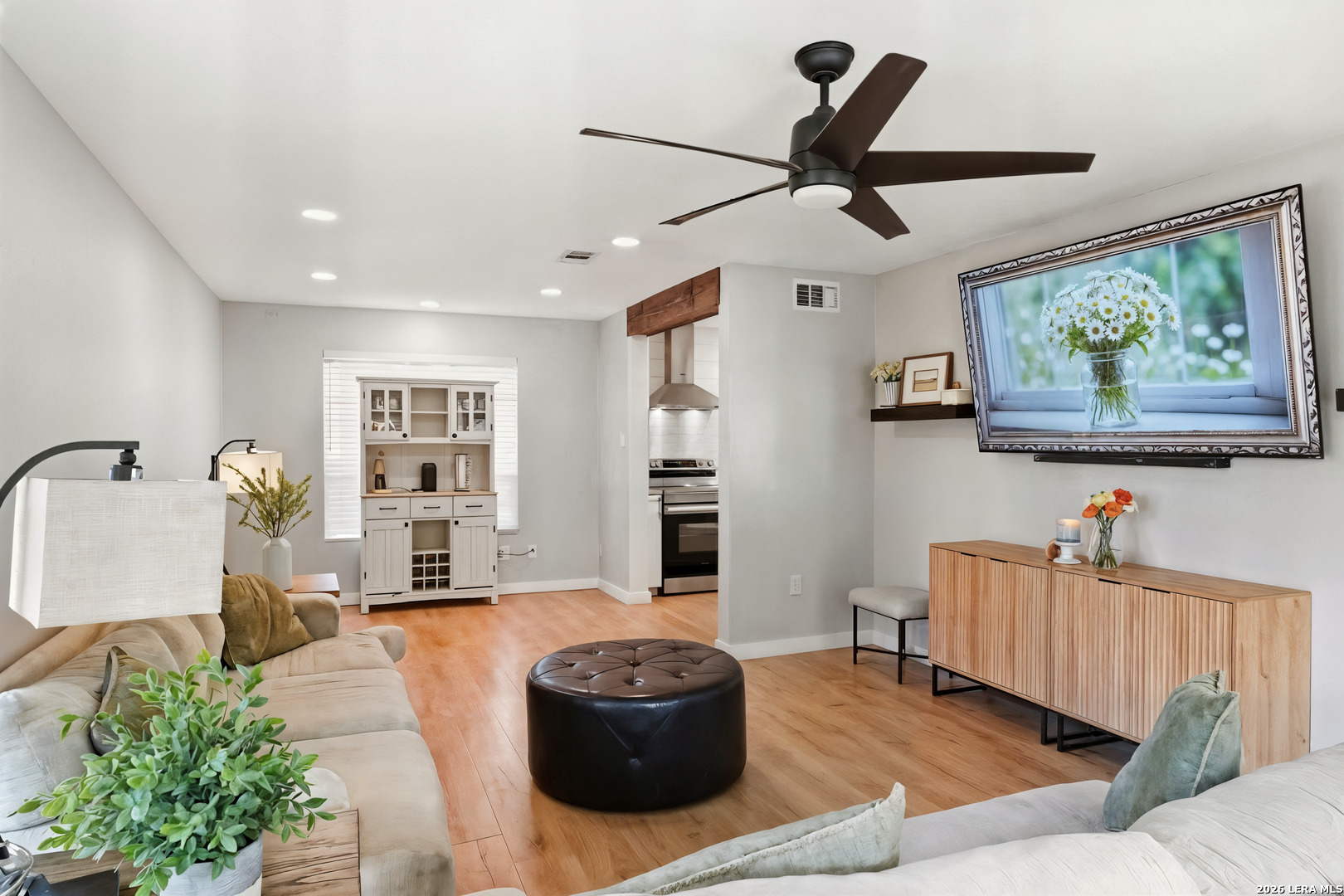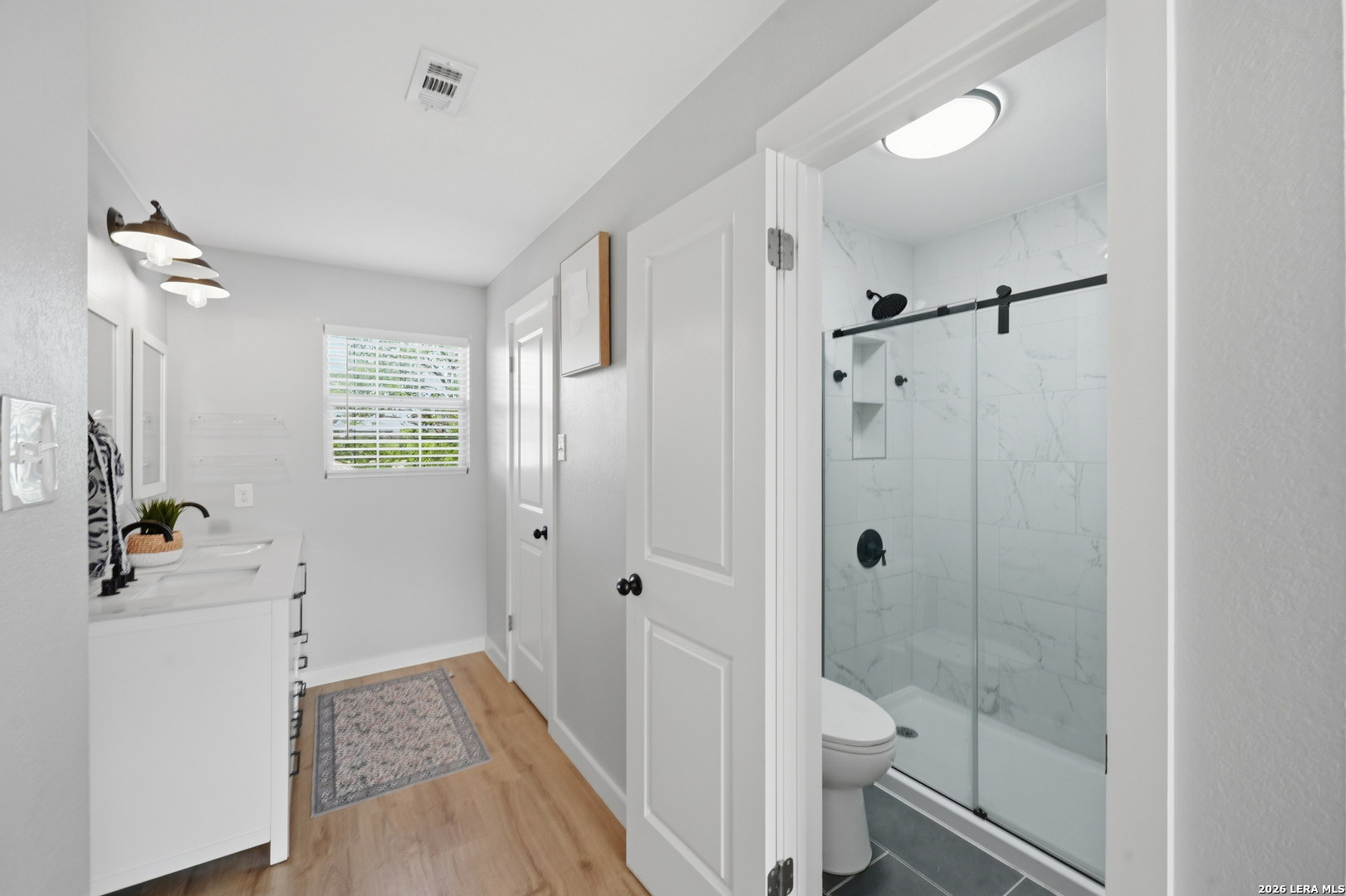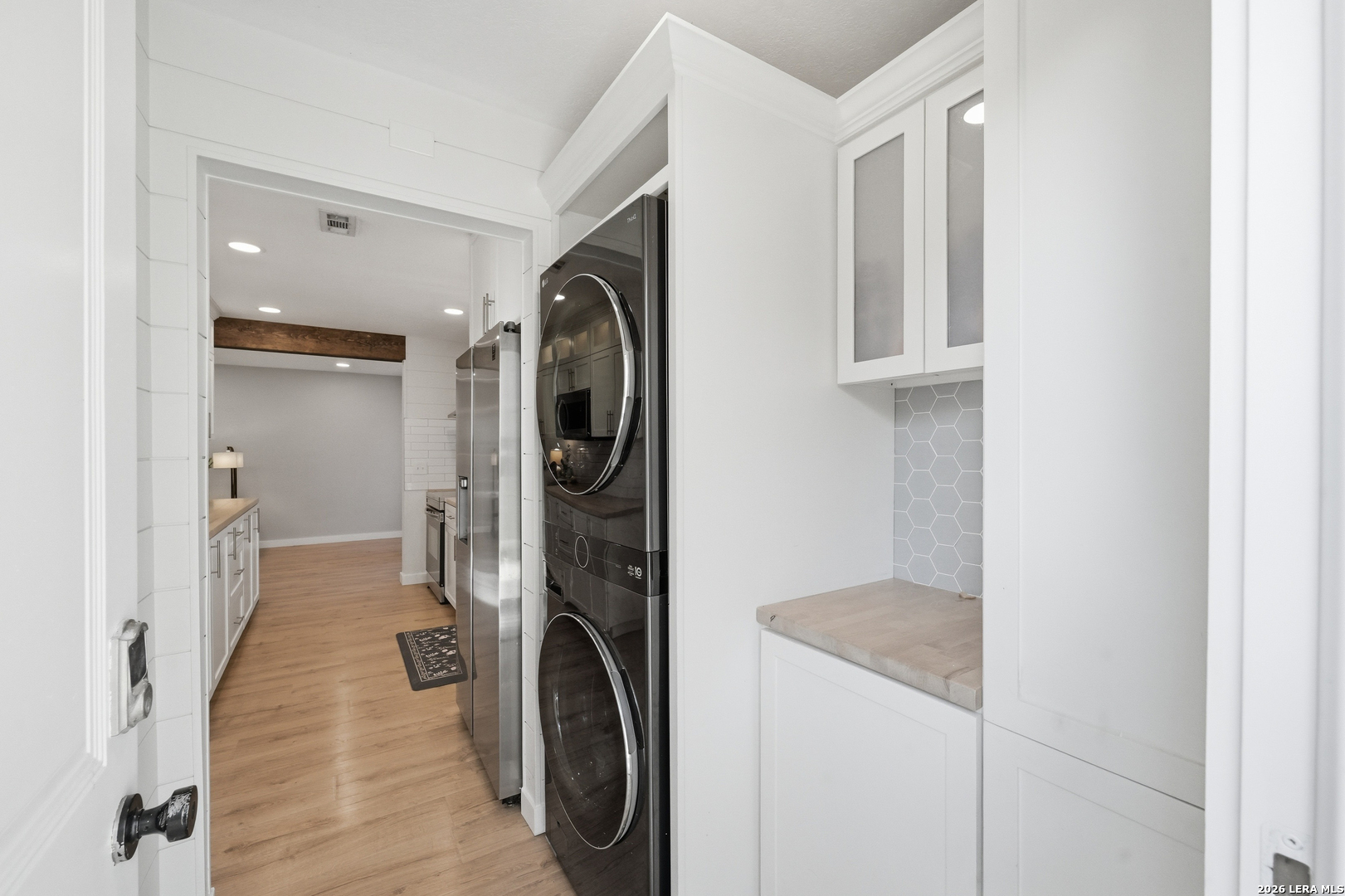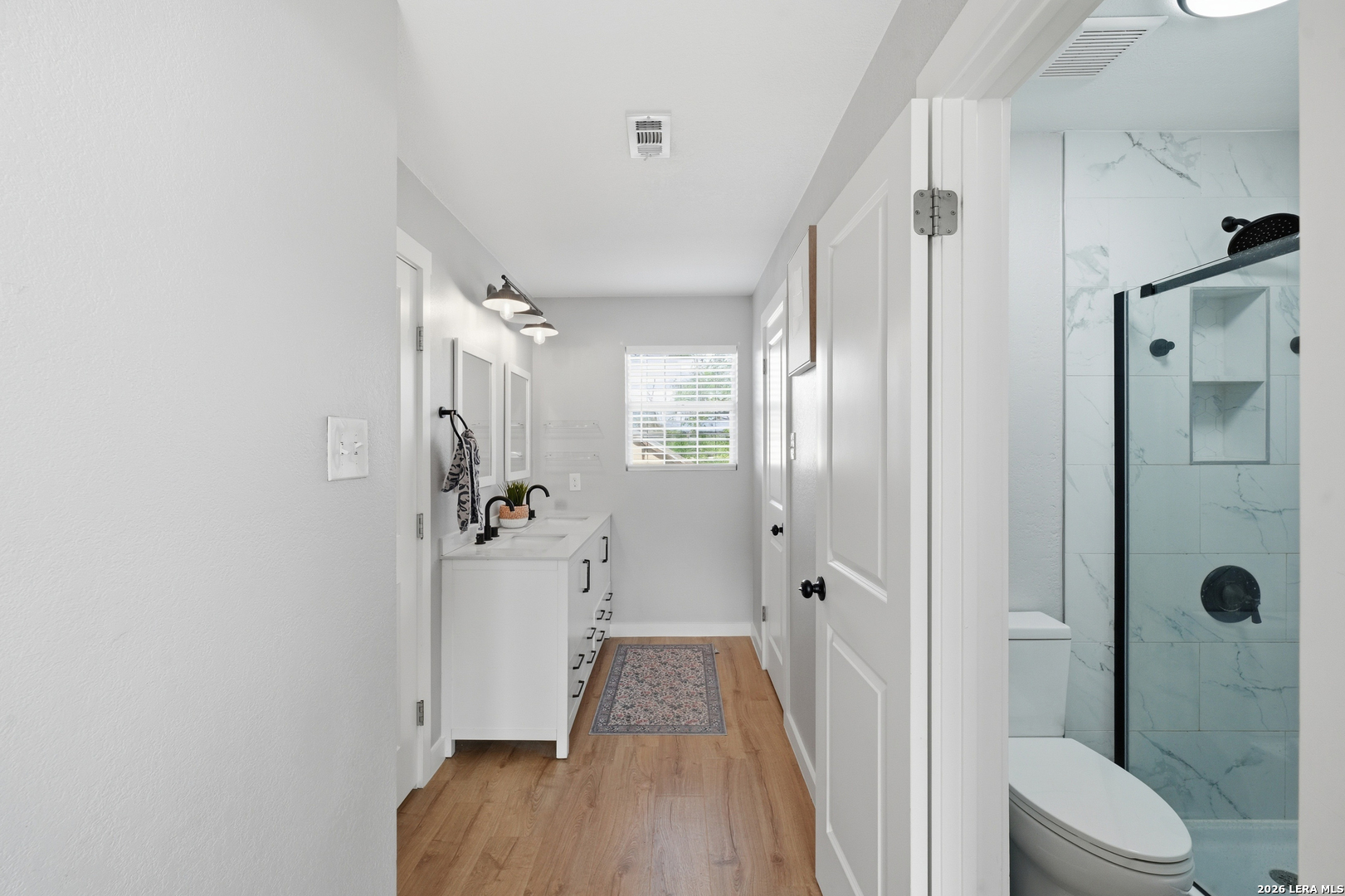 Oversized 42' x 22' workshop, 31' x 17' carport, detached ADA-compliant apartment, and 1.24 acres of usable land. This freshly renovated property delivers space, flexibility, and functionality with quick access to Hwy 90 and an easy commute to downtown San Antonio. The workshop-style garage with oversized doors is ideal for trades, storage, or working from home, while the additional carport adds even more covered space. The main home has three bedrooms, and two baths, while the detached apartment offers one additional bedroom, an additional bathroom and the large workshop also offers an additional garage. The main house has been recently updated with fresh interior paint, new flooring, updated cabinetry, countertops, and appliances, creating a clean and cohesive feel throughout. The kitchen features butcher block countertops, subway tile backsplash, an oversized stainless steel vent hood, and a farmhouse sink, all thoughtfully designed with a modern touch. The primary suite includes a recently renovated bathroom with dual vanities, updated cabinetry, a walk-in shower, and stylish white and gray tile finishes. A wraparound porch with cedar posts adds character and provides a great place to relax and enjoy the surrounding acreage. The detached ADA-compliant one-bedroom apartment includes a full kitchen, living area, and bathroom, ramp access, wide doors, hand rails, that is ideal for guests or additional living space. Situated on a corner lot with convenient highway access, this property offers a rare combination of land, improvements, and versatility. Buyer to verify all measurements, schools, and details.