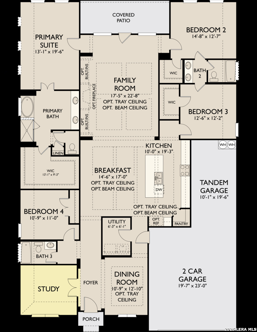 This single-story home has 4 beds, 3 baths, and a 3-car garage. The open living and dining layout creates a welcoming flow, complemented by a private study with doors that is perfect for working from home or quiet retreat space. The eat in kitchen features a center island, walk in pantry, built in oven, cooktop, microwave, and pendant lighting. The primary suite is complete with a ceiling fan, generous walk-in closet, and a spa inspired bath with a free-standing tub, mud set shower, and double vanities. Three secondary bedrooms and a private study provide additional space for study and relaxation. This home features design selections carefully curated by our studio team. Every finish, from flooring and cabinetry to countertops and details, is chosen to create a cohesive, stylish, and welcoming space that feels beautifully balanced from the moment you step inside. This home is in Saddlebrook Ranch, a master-planned community in Schertz, offering easy access to I-35, shopping, dining, Randolph AFB, a pool, playground, and top-rated schools.