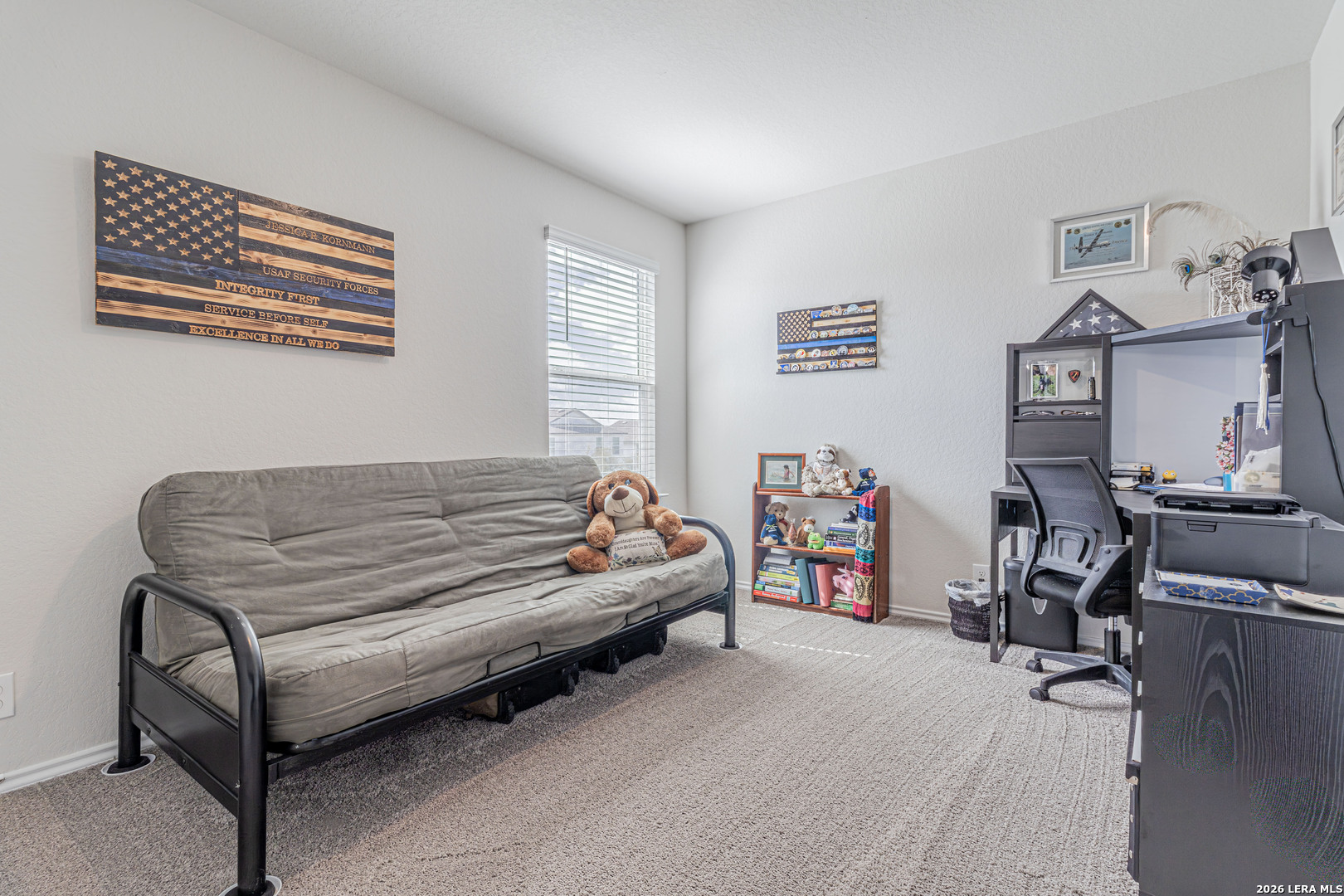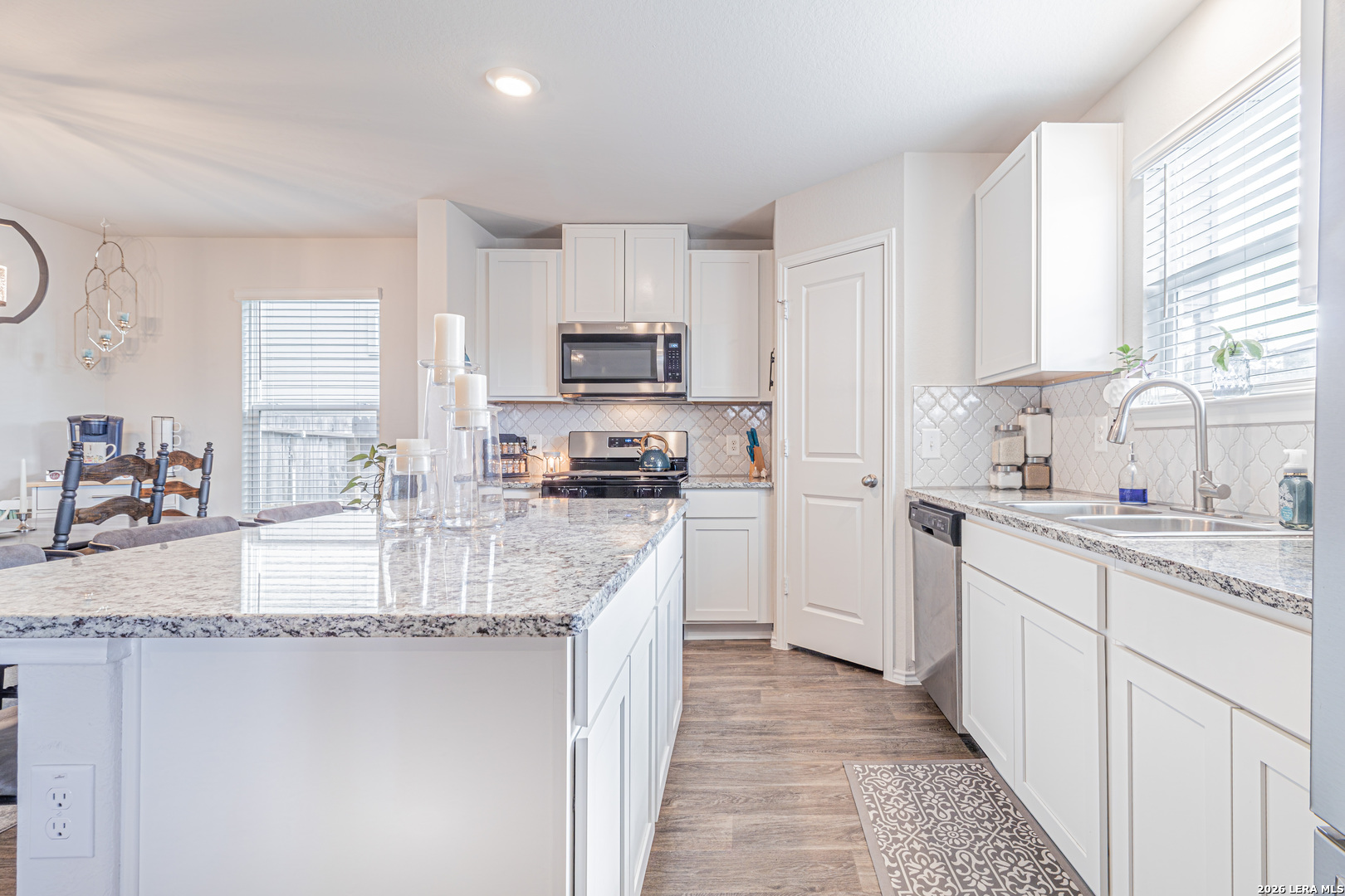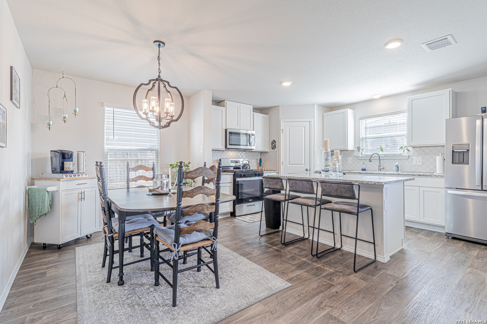 This two story home offers 1,625 square feet with 3 bedrooms and 2.5 bathrooms, designed for comfortable everyday living. A welcoming front porch leads into a foyer that opens to a spacious living area, which flows into the open kitchen and dining space. The large kitchen island creates a central gathering spot, and the kitchen provides access to the backyard and covered patio. Downstairs also includes a storage closet under the stairs and a utility room with direct access to the garage. Upstairs features a versatile loft or game room, along with the primary suite, two secondary bedrooms, and a full bathroom. The home includes smart technology that allows you to control lighting, temperature, and locks from your phone through a central hub. Additional features include sheet vinyl flooring in main living and wet areas, black appliances, granite countertops, and more.