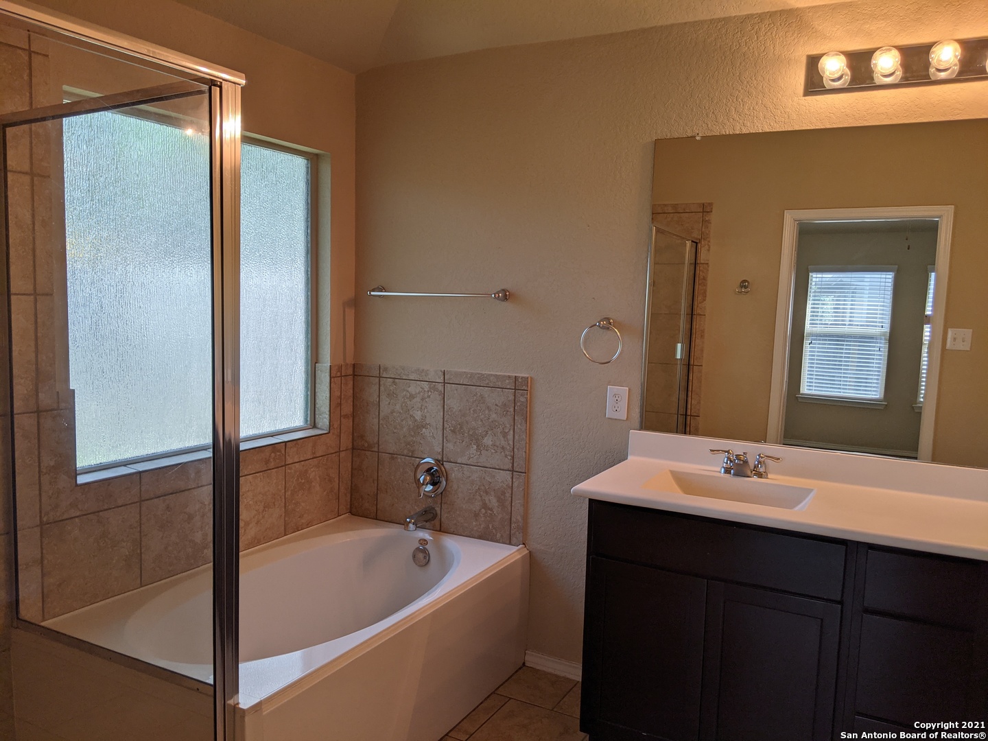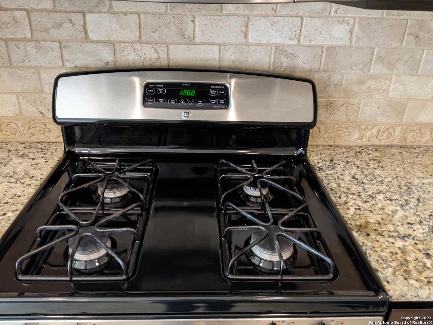 Well maintained all-front brick 1-story home with large family room and covered patio. The home offers 2" faux wood blinds, GE kitchen appliances, a gas range, and the refrigerator conveys. 12" ceramic tile in the kitchen, wet areas, and family room. Good size master bedroom and in master bathroom double vanities and separate tub/shower. Oversized garage and Irrigation system. Very convince to new Costco ,HEB, and shopping mail . New paint! New floor ! New Home !!