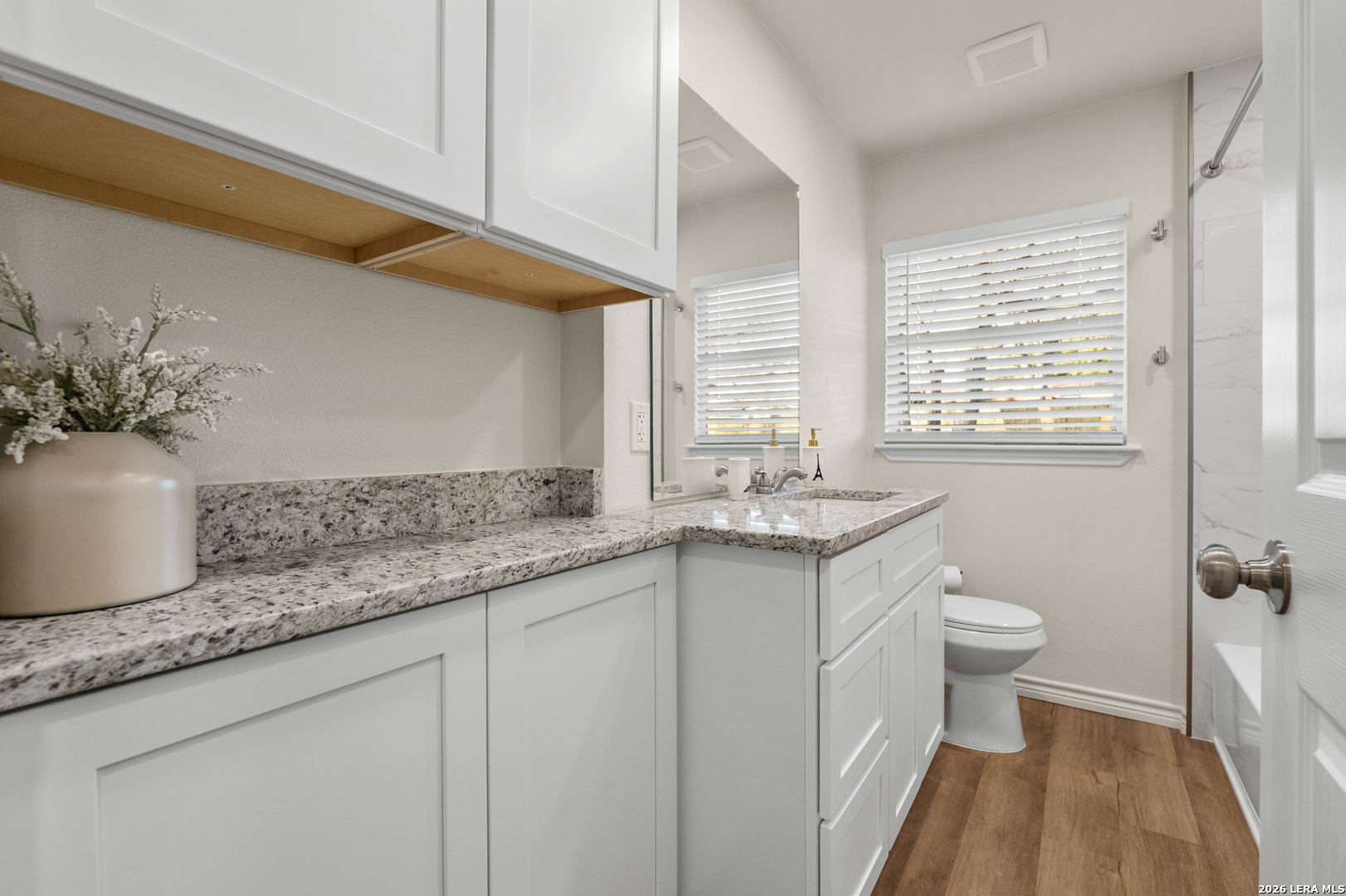 Searching for a move-in ready home in Central San Antonio? This beautifully updated home offers thoughtful upgrades, convenience, and everyday comfort in a prime central location. The home comes equipped with new major kitchen appliances, including a refrigerator, helping make your transition seamless. A washer & dryer are included as well for added convenience. Interior features include custom dovetail soft-close cabinetry, granite countertops, commercial-grade luxury vinyl plank flooring, and window blinds throughout. Major system updates provide peace of mind, including a brand-new roof, central HVAC, water heater, and home warranty. Enjoy outdoor living with a covered patio, new wood privacy fence, plus the added benefit of garage parking and No HOA restrictions. Location is everything, and this home delivers. Centrally located in San Antonio, it's approximately 5 minutes to H-E-B and Walmart, and about 15-20 minutes to North Star Mall, La Cantera, and Downtown San Antonio. Zoned to Northeast ISD, with ISA and STEM magnet programs less than 10 minutes away. Whether you're buying your first home, downsizing, or investing in San Antonio real estate, this property offers modern updates, convenience, and value in one well-rounded package. Schedule your showing today and discover the opportunity this home provides.