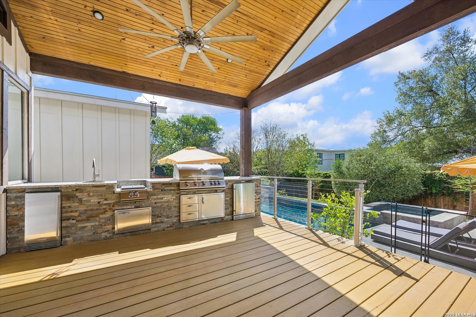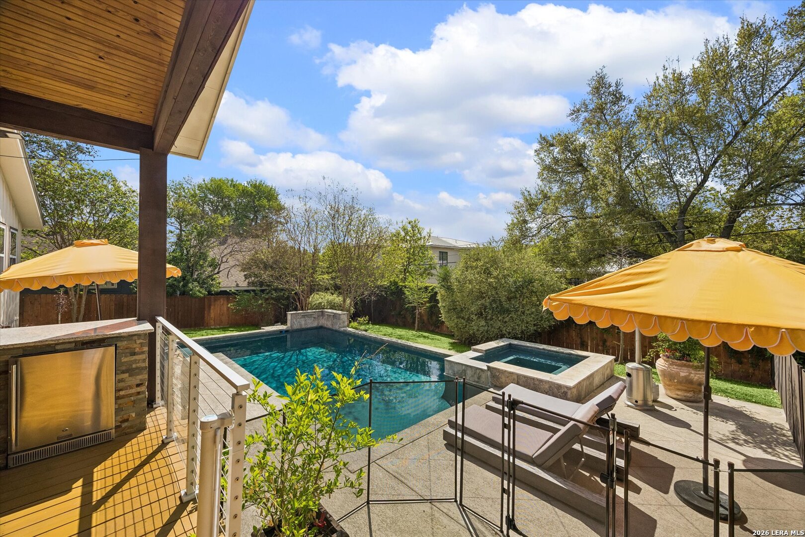 This beautiful newly remodeled home is nestled on a large lot in a quiet and upscale section of Terrell Hills. Gorgeous pool and spa with removable safety gate and additional grassy area for pets or play area and gardening. Some of the newly remodeled features from 2019 to current include new metal roof, metal front door, kitchen remodel, new tile in dining, kitchen and mud room, refinished wood flooring, AC, water heaters, luxurious covered back porch with outdoor kitchen, paint interior & exterior, pool/hot tub, fence, vapor barrier crawlspace, renovate and epoxy garage with EV plug, primary bathroom remodel, primary closet remodel, replaced siding as needed, repipe from copper to PVC, refinished back decking, alarms and cameras, fresh landscaping and sprinklers, mosquito mister, app controlled lighting, custom garage door, interior newly configuration of rooms that include either 4 bedrooms or 3 + office (no closet in one bdrm), 3.5 bathrooms, game room & media room.