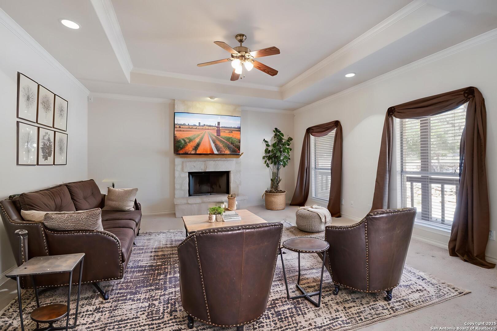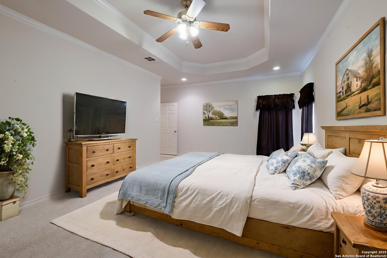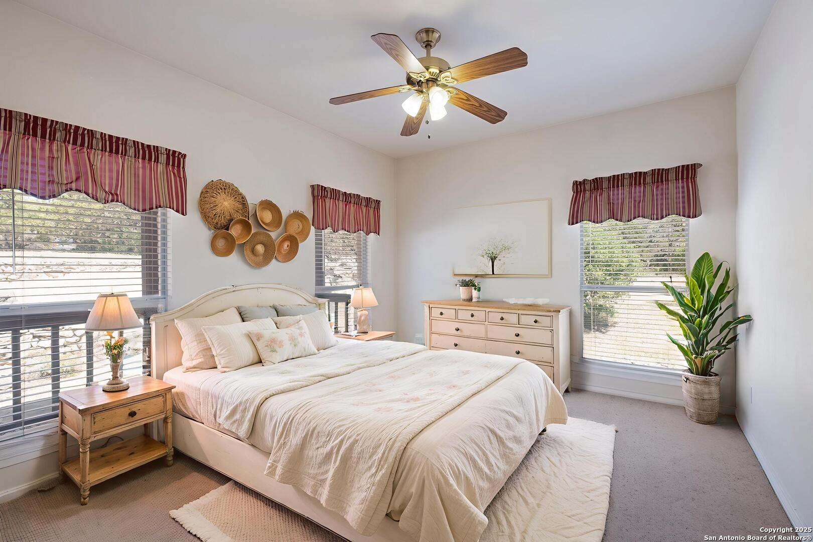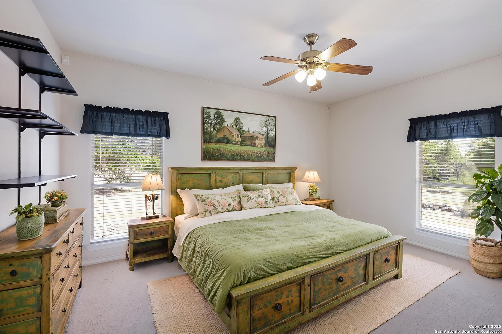 Spacious 3-bedroom, 2-bath home on 5.22 acres in Spring Branch with no HOA, located in the highly rated Smithson Valley ISD. The home features a split floor plan and high ceilings. The primary suite includes dual walk-in closets, double vanity, garden tub, and separate shower. Recent updates include a new roof (2023), serviced septic system and risers added (March 2025), and well pump/pressure tank replacement (Nov 2024). Exterior AC condenser replaced approx. 2018. The property includes a covered patio, fire pit, RV pad with water/electric hookups, barn, shed, and an additional front storage building. Electrical is available where an above-ground pool was previously located. Window screens are stored in the attic. No water softener installed, but plumbing is in place. No existing survey-buyer will need to obtain a new one. Conveniently located near Canyon Lake, Bulverde, New Braunfels, and just under an hour from San Antonio, offering both privacy and accessibility to Hill Country amenities.