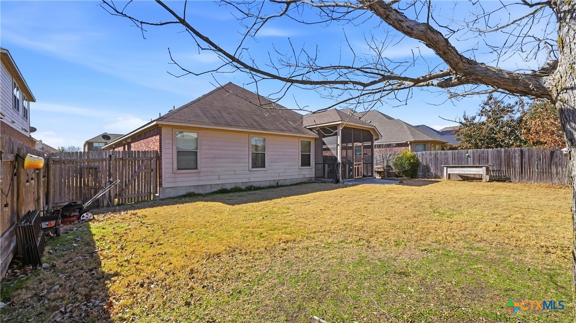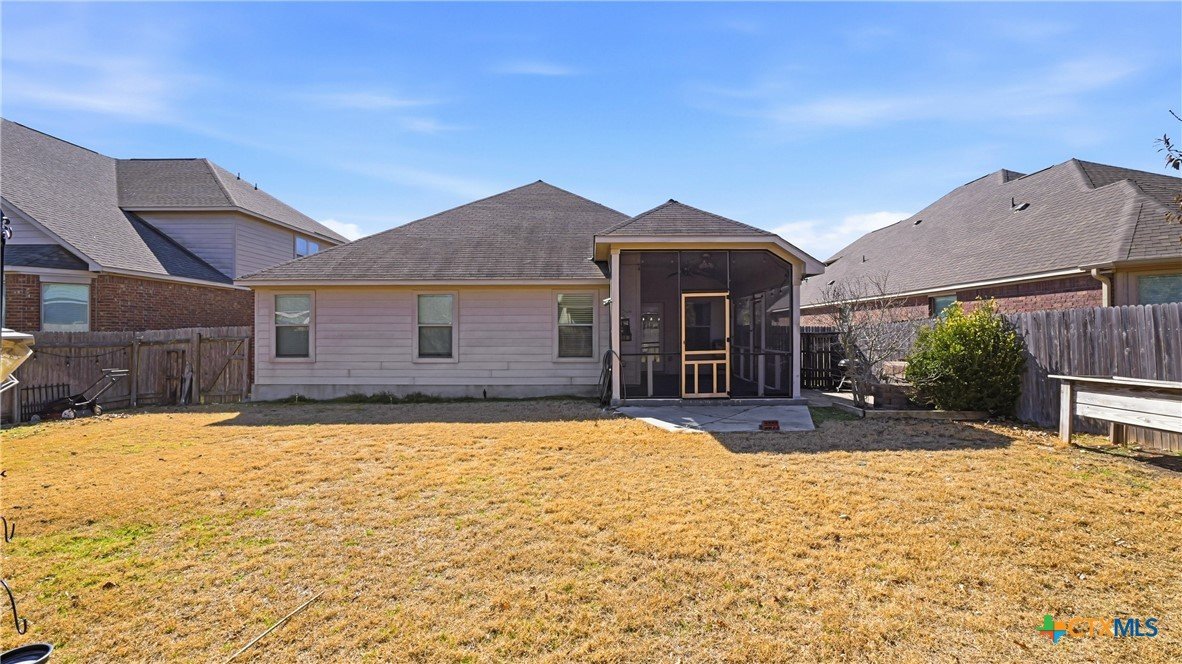 JUST CAN'T WAIT TO GET HOME are only a few words you will utter as the new owner of this beauty. Its stunning exterior has appealing brick and stone tones with attractive landscaping. The wide entry is inviting with dramatic arched outlines and rotunda design. A spacious office with French doors features a beautiful cathedral-shaped window, allowing plenty of natural lighting as well as three Clerestory Windows to bring in high-level sunlight without causing glare or distractions . The kitchen is a chef's delight with granite countertops, a center island, pendant lighting, and open to the dining area. The living room is tucked away with the feeling of a peaceful getaway. The owner's retreat offers a vaulted ceiling and large ensuite bathroom with amply sized separate shower and deep bathtub. The covered/screened-in patio and outdoor area are a great oasis for the upcoming spring with padded flooring and extended cobblestone area. Located a mile or less from Cottonwood Creek Elementary, Hutto Middle, and Hutto High Schools. Offers quick access to TX-130 and US-79, connecting to nearby shopping, dining, local banking, medical services, Hutto Public Library, and Hutto Park at Brushy Creek. Contact your favorite real estate agent for a tour then construct the offer that will make this great house your new home! Set your appointment TODAY!