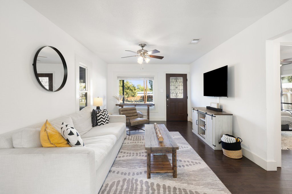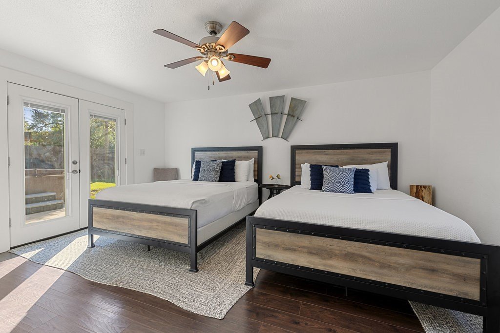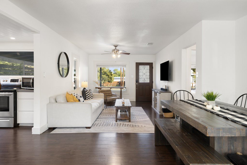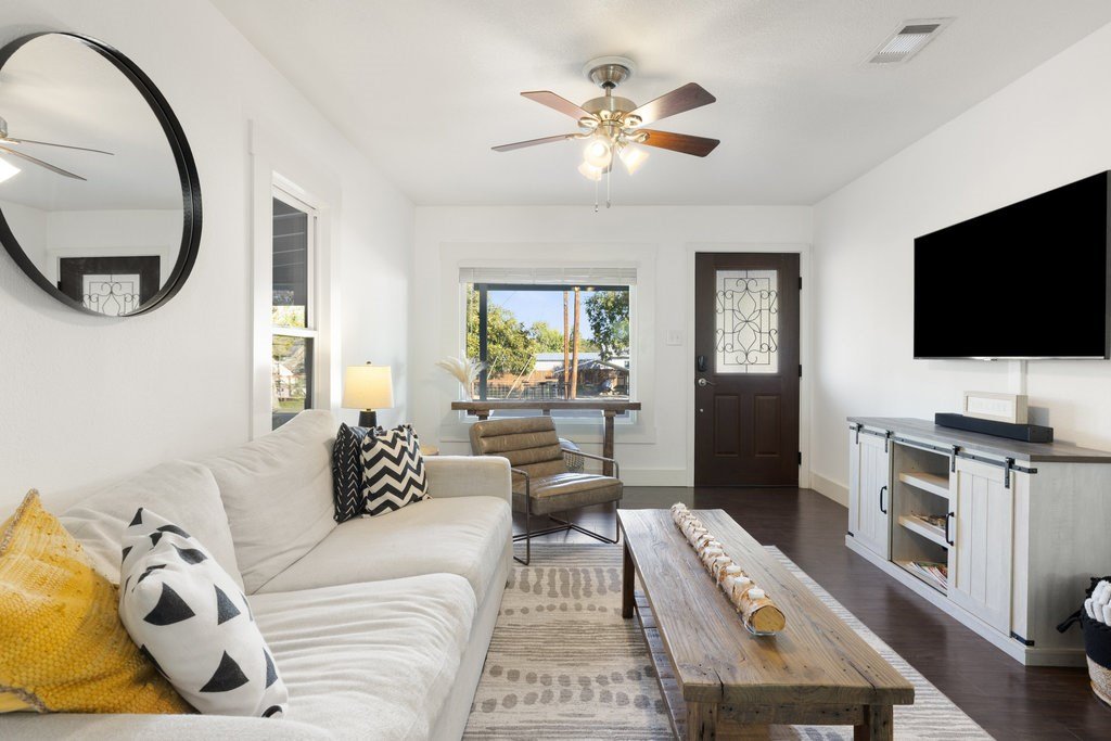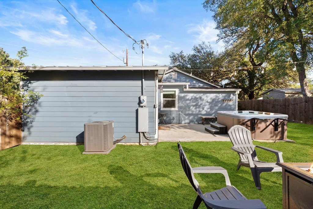 Adorable and thoughtfully updated, this charming 2-bedroom, 2-bath home of approximately 1,244 sq ft is nestled in the heart of Johnson City, Texas. Remodeled in 2021with a brand-new metal roof in 2025 and new A/C unit installed in 2025 the residence offers a spacious and modern feel while retaining its classic Hill Country charm. Step into a bright, open-plan living space framed by large windows that flood the home with natural light. Property highlights include stylish laminate flooring, updated kitchen and baths, and two walk-in closets giving each full bathroom its own level of comfort and privacy. Step outside to a fully fenced backyard designed for relaxation and entertaining, featuring a cozy hot tub and space for evening gatherings under the Texas stars. Ideally located just minutes from Main Street, you'll enjoy easy access to Johnson City's boutiques, restaurants, and vibrant small-town charm. Perfect as a full-time residence, vacation getaway, or income-producing investment. Currently operating as a successful short-term rental and ranked in the top 10% of homes on Airbnb, this property offers a fantastic turnkey opportunity - most furnishings convey with the sale.