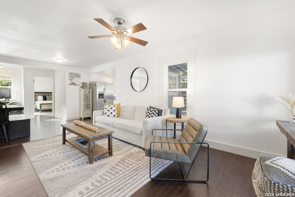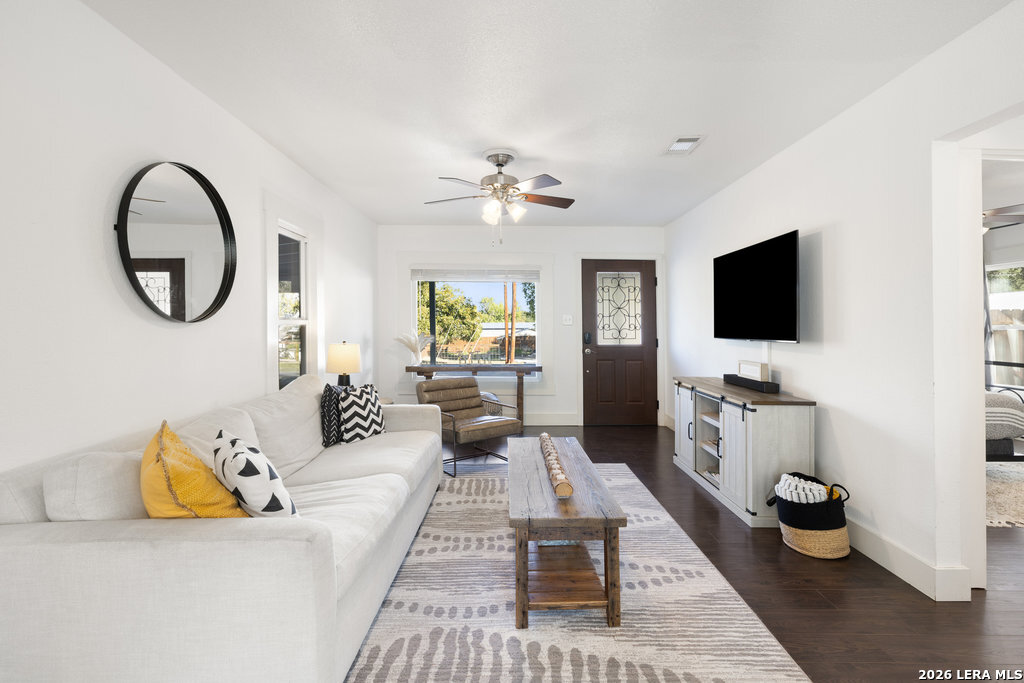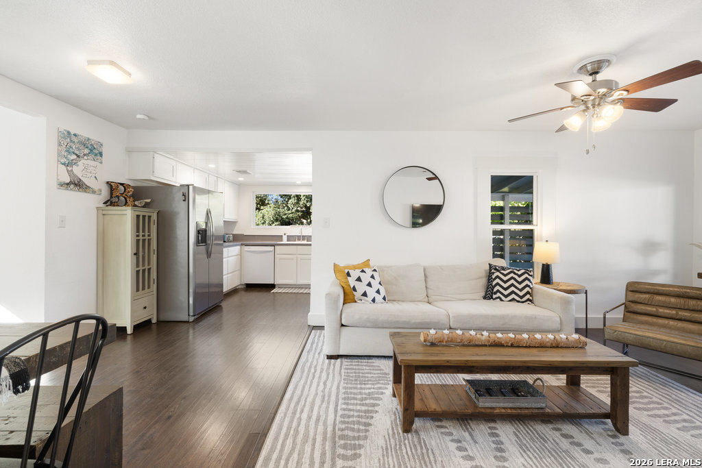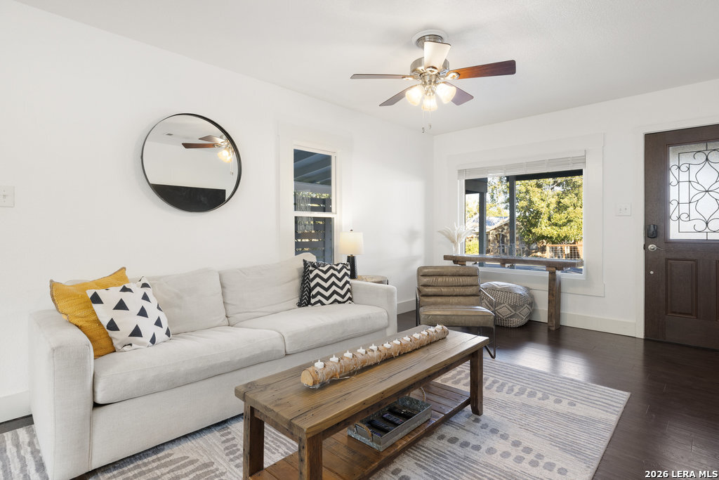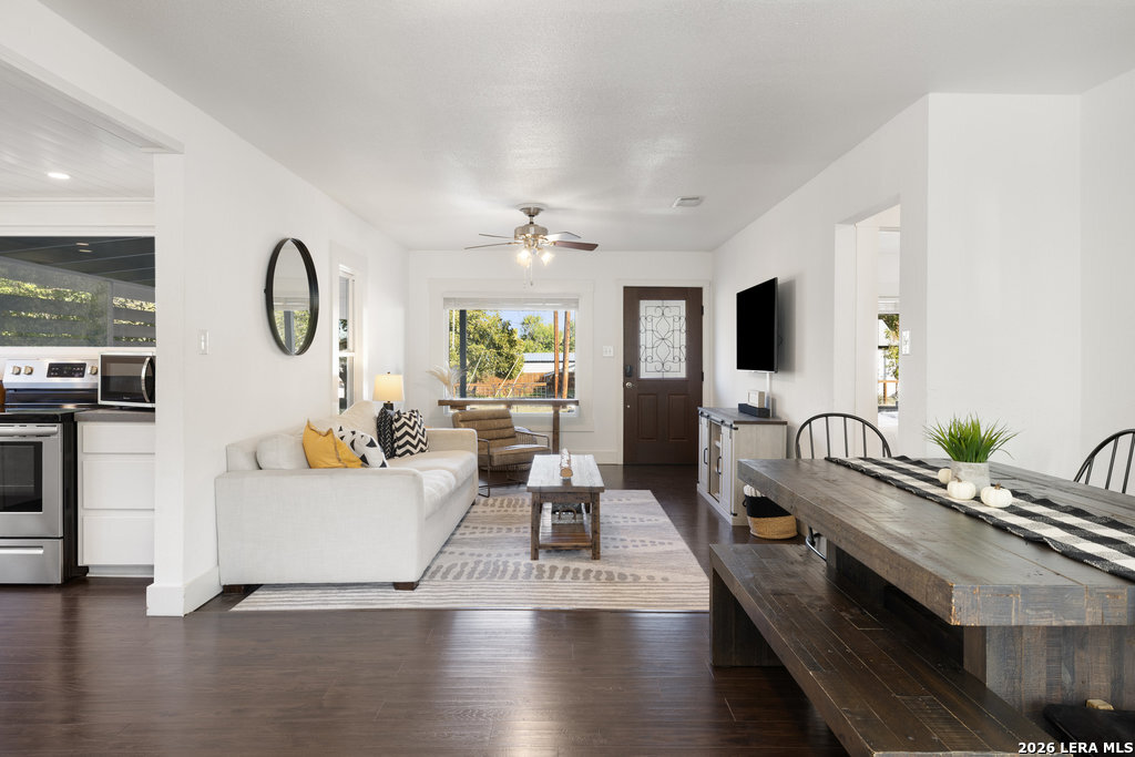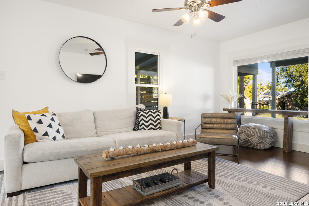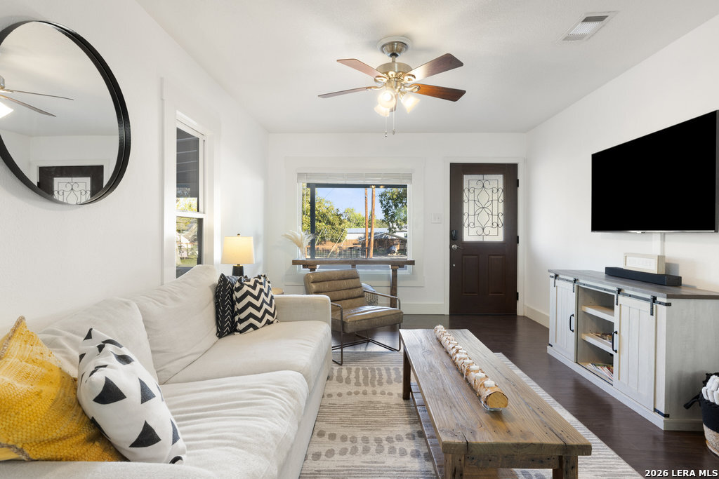 Adorable and thoughtfully updated, this charming 2-bedroom, 2-bath home of approximately 1,244 sq ft is nestled in the heart of Johnson City, Texas. Remodeled in 2021with a brand-new metal roof in 2025 and new A/C unit installed in 2025 the residence offers a spacious and modern feel while retaining its classic Hill Country charm. Step into a bright, open-plan living space framed by large windows that flood the home with natural light. Property highlights include stylish laminate flooring, updated kitchen and baths, and two walk-in closets giving each full bathroom its own level of comfort and privacy. Step outside to a fully fenced backyard designed for relaxation and entertaining, featuring a cozy hot tub and space for evening gatherings under the Texas stars. Ideally located just minutes from Main Street, you'll enjoy easy access to Johnson City's boutiques, restaurants, and vibrant small-town charm. Perfect as a full-time residence, vacation getaway, or income-producing investment. Currently operating as a successful short-term rental and ranked in the top 10percent of homes on Airbnb, this property offers a fantastic turnkey opportunity - most furnishings convey with the sale.