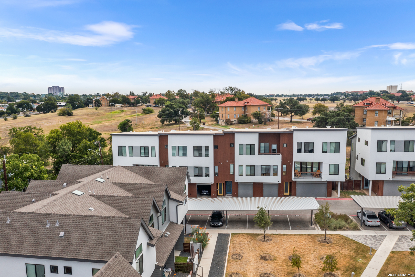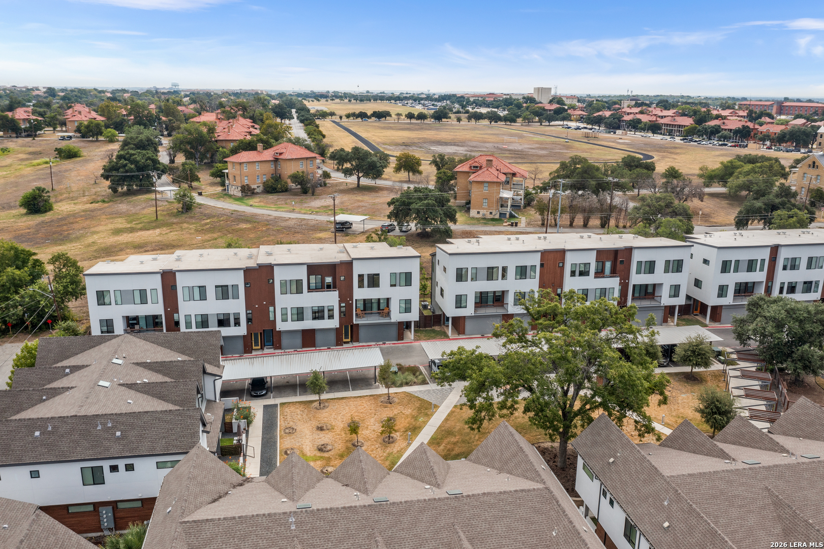 Well-appointed condo that lives like a single-family home, featuring a three-level layout with 4 bedrooms, 3.5 baths, multiple outdoor spaces, and a two-car garage. The home offers high ceilings, abundant natural light, and a clean, timeless palette. The first level includes a private bedroom with ensuite bath, ideal for guests or a home office, plus backyard access. The second level showcases an open-concept living, dining, and kitchen area with a half bath and private deck. Upstairs, the primary suite features a walk-in closet and ensuite bath, along with two additional bedrooms, a full bath, laundry room, and a desk nook. Located in Mahncke Park, residents enjoy weekly landscaping and amenities including a private trash services, dog park, wash station, fire pit, and grill area-all just minutes from Fort Sam Houston, the Pearl, Brackenridge Park, and top local attractions.