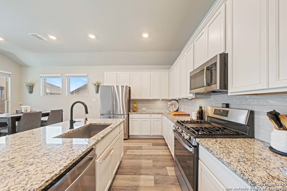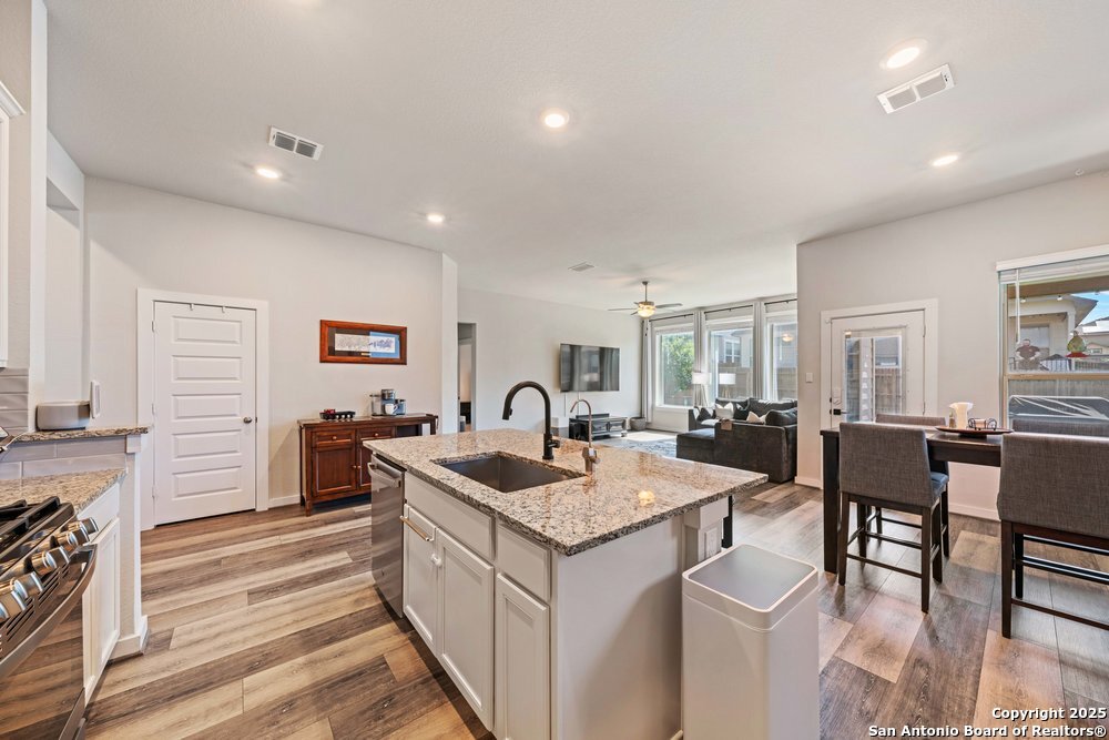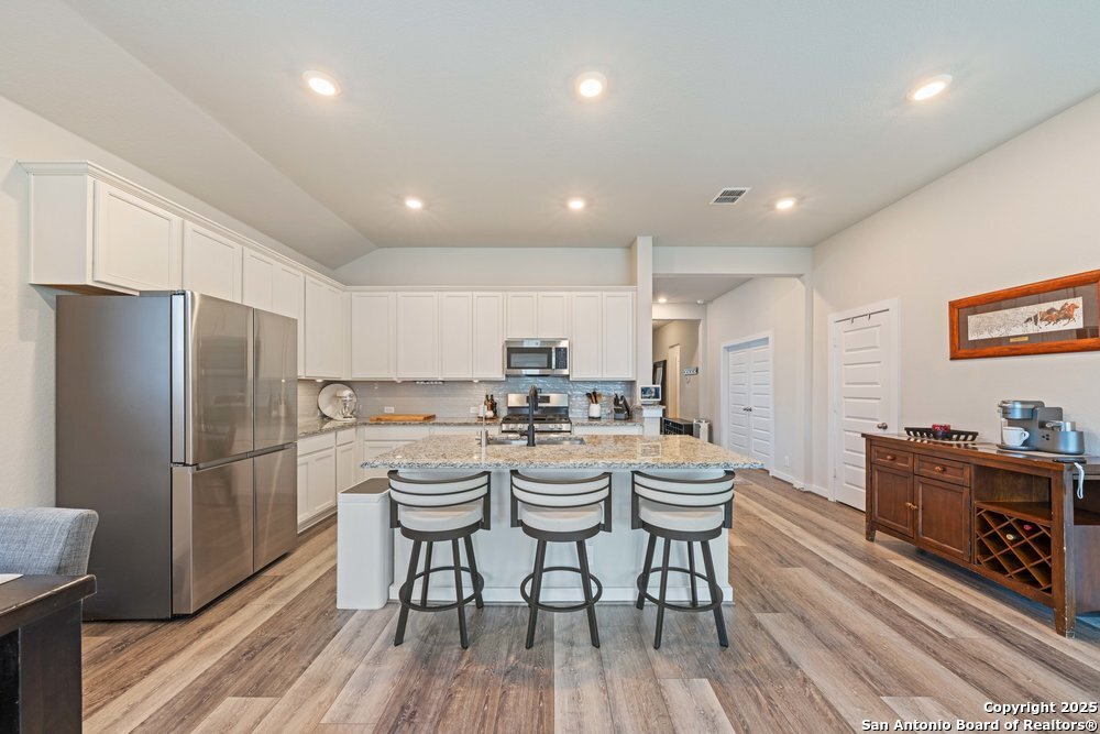 Well-maintained 3-bedroom, 2-bath home with 2,320 sq. ft. featuring an inviting island kitchen and stylish vinyl plank flooring throughout living areas. The primary suite offers a large bedroom and the primary bath features dual vanities and a spacious walk-in shower. Enjoy relaxing or entertaining on the covered back patio. Conveniently located near downtown New Braunfels with quick access to I-35, restaurants, grocery stores, and shopping.