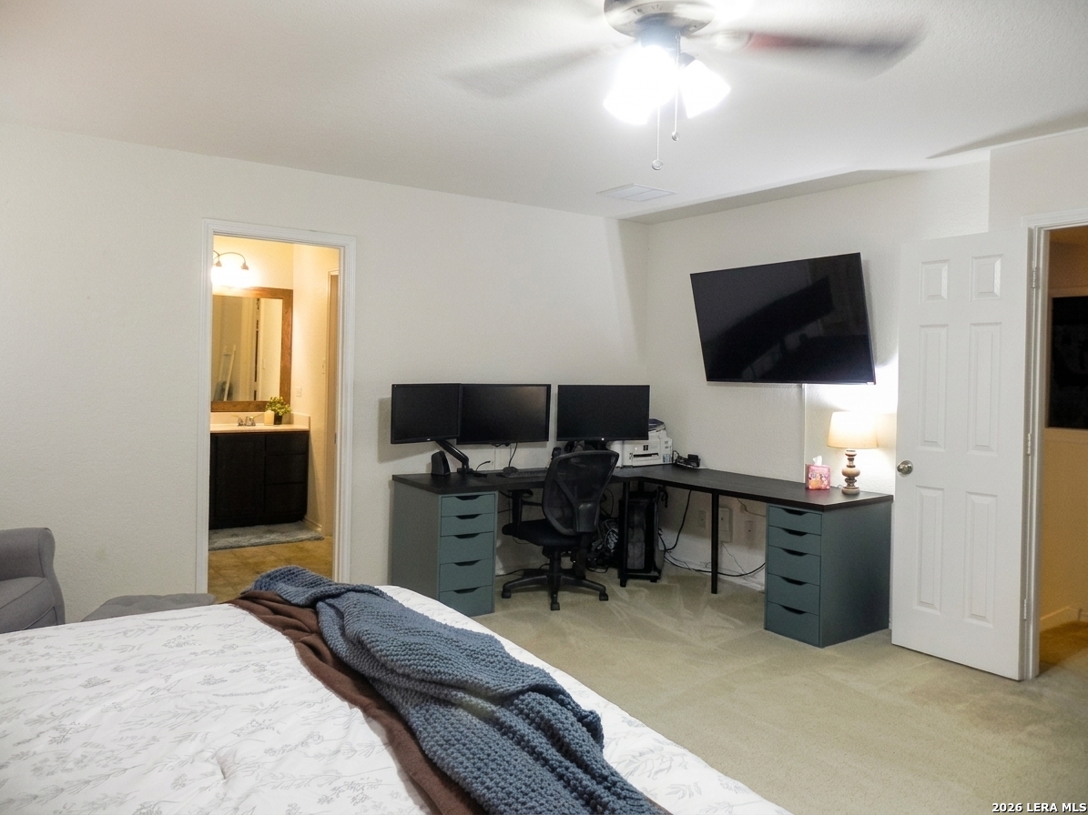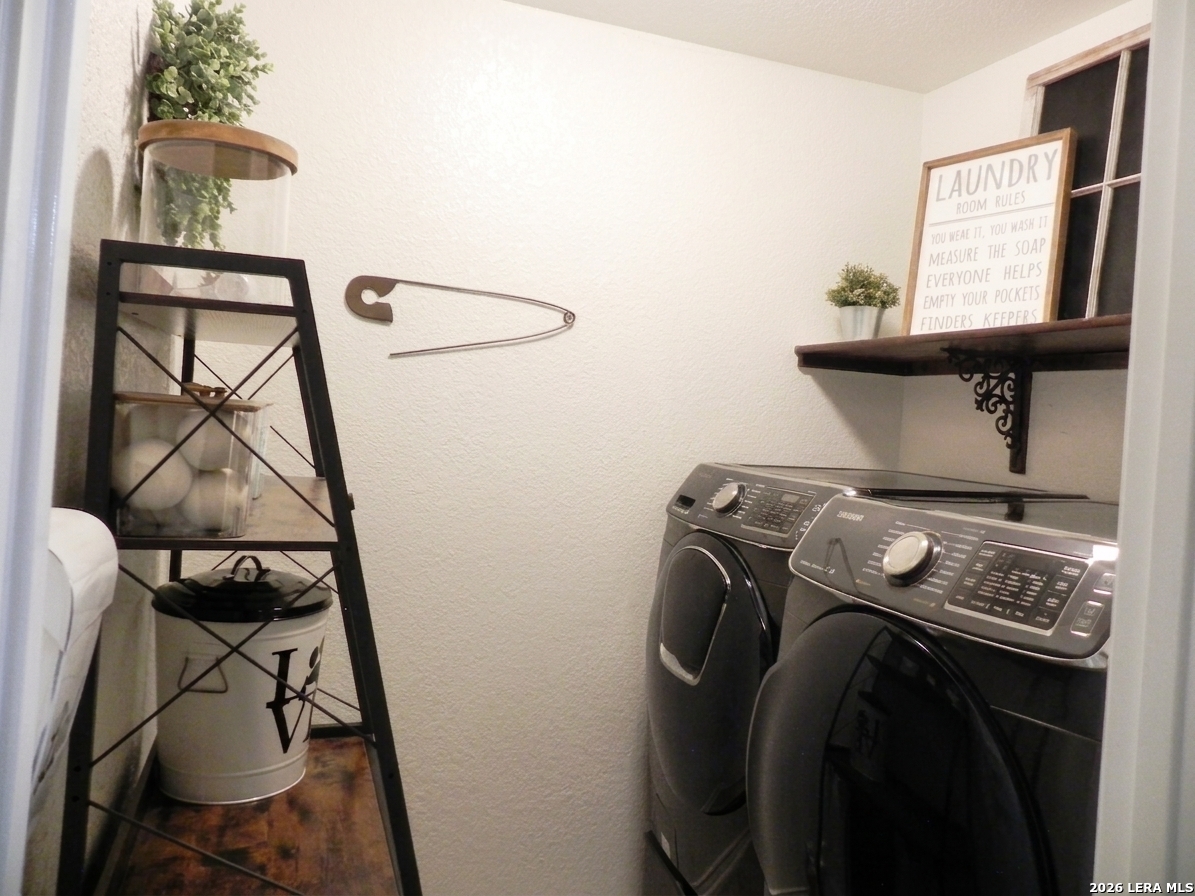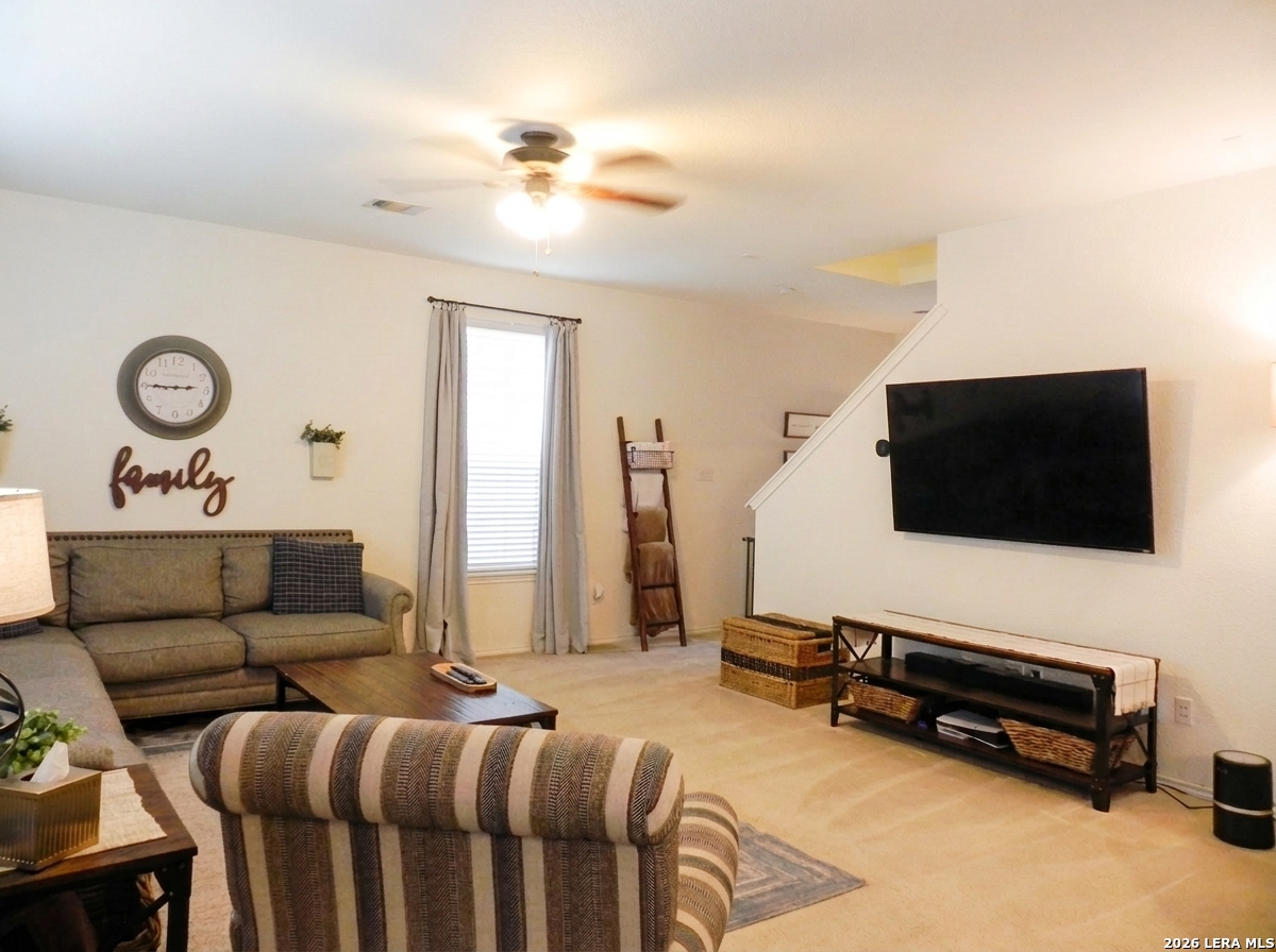 Welcome to this beautiful 3-bedroom, 2 1/2 baths home offering comfort, functionality, and a great location! All bedrooms are conveniently located upstairs, the upstairs laundry room adds extra convenience. The spacious primary suite offers a relaxing retreat. The primary bathroom features a garden tub/shower combo. Walk in closet. Downstairs, you'll find a welcoming living area that flows dining space and kitchen, ideal for entertaining or everyday living. The kitchen is complete with stainless steel appliances, including a stove, microwave and dishwasher. Step outside to enjoy the extended patio slab, perfect for weekend BBQs, outdoor dining, or simply relaxing. The backyard also features a privacy fence. Located near Lackland AFB, shopping and restaurants. Easy access to Hwy 90 and Loop 1604. Community Pool.