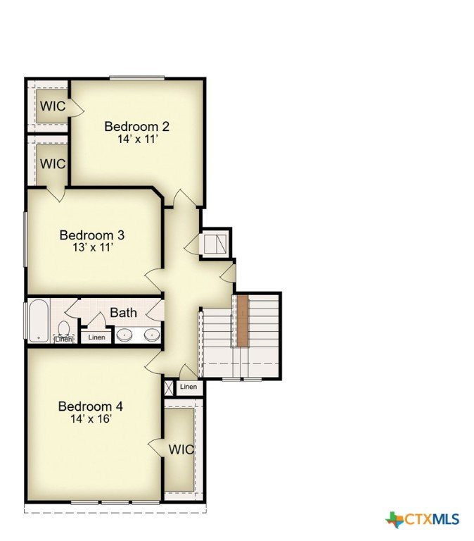 Check out the Sabine plan if you're looking for a two-story home. All secondary bedrooms in this plan are on the second story. The Sabine features a four-bedroom, two-and-a-half-bathroom layout across 2,312 square feet. This plan features an open-concept family room, kitchen, and dining area. The kitchen includes stainless steel appliances with a large island and walk-in pantry, while the primary suite has a private water closet, dual vanity sinks, and a spacious closet. All bedrooms on the second story have expansive walk-in closets, perfect for large families. This plan also has a two-car garage. Plan variations include the choice of a dining room or study off the entryway, a walk-in shower or separate tub and shower in the primary bath, and an outdoor fireplace.