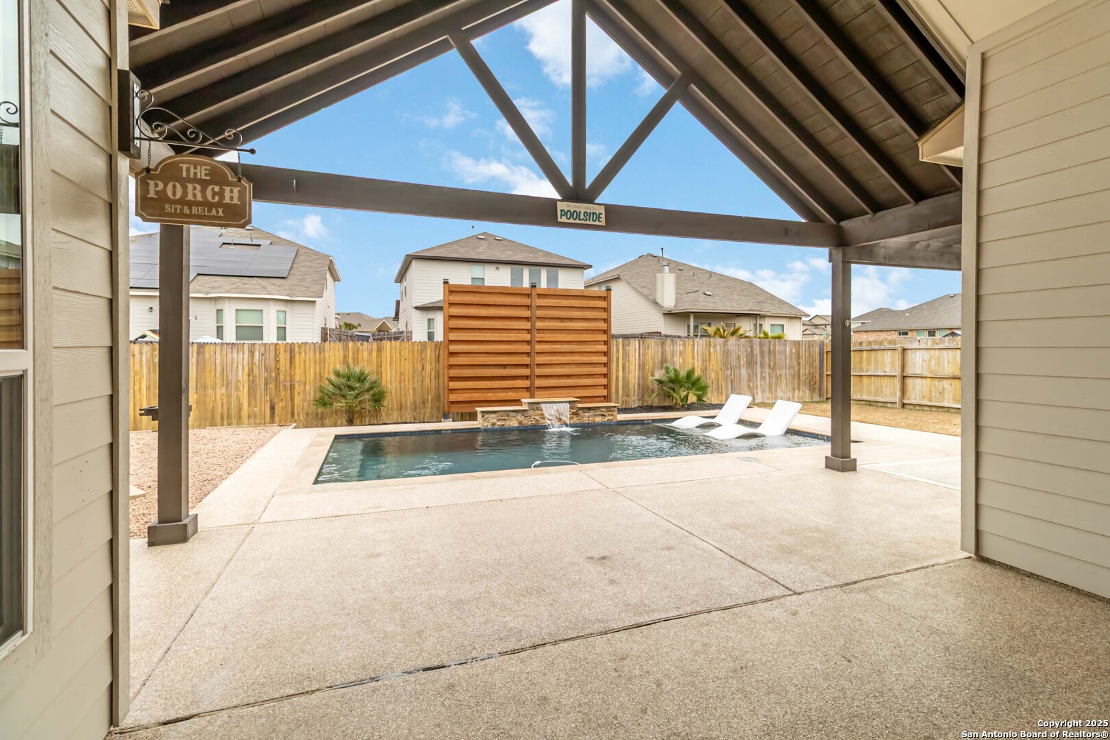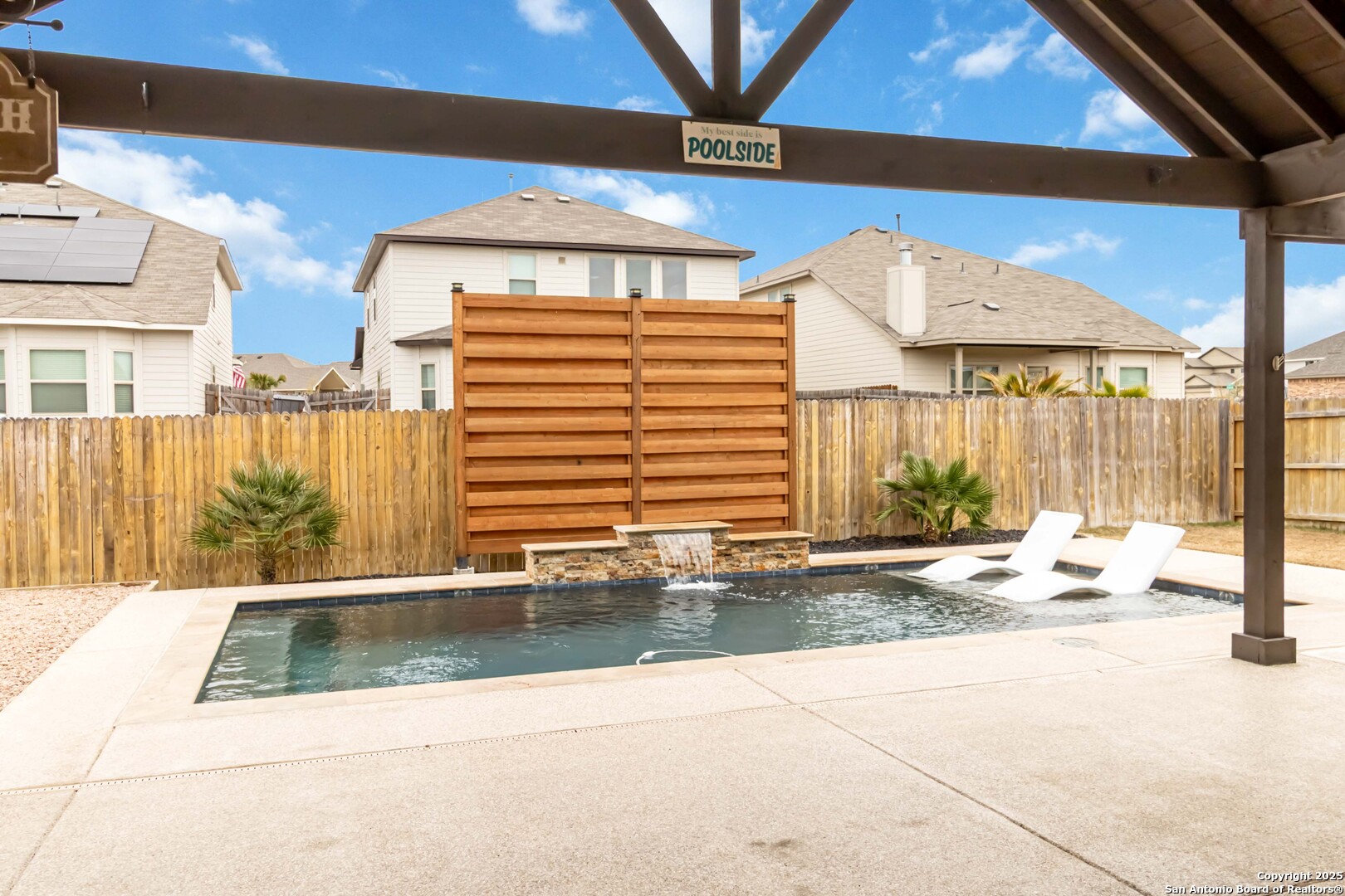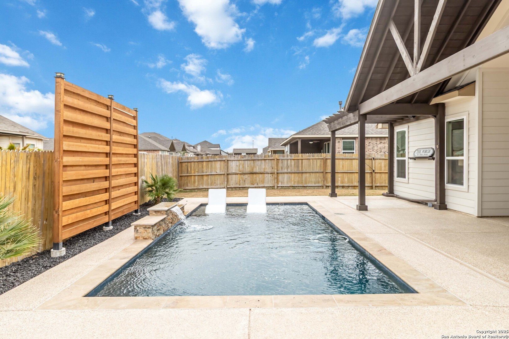 Stunning 4-Bedroom Home with Pool in Highland Grove! Welcome to this exceptional single-story home in the highly sought-after Highland Grove community-just minutes from the charm and history of Gruene! Featuring an open floor plan, this home is designed for modern living with 4 bedrooms and 3 full baths. The spacious kitchen is a chef's dream, complete with an oversized island that overlooks the breakfast area, family room, and covered patio-perfect for entertaining! The primary suite is a true retreat, offering separate vanities, a luxurious oversized shower with elegant ceramic tile, and a Texas-sized walk-in closet. Step outside to your own private oasis-a beautiful pool with a waterfall creates a serene backyard escape. Additional highlights include no carpet throughout, an oversized 2-car garage, and access to the wonderful amenities of this master-planned community. Don't miss your chance to own this stunning home in one of New Braunfels' most desirable neighborhoods! Schedule a showing today!