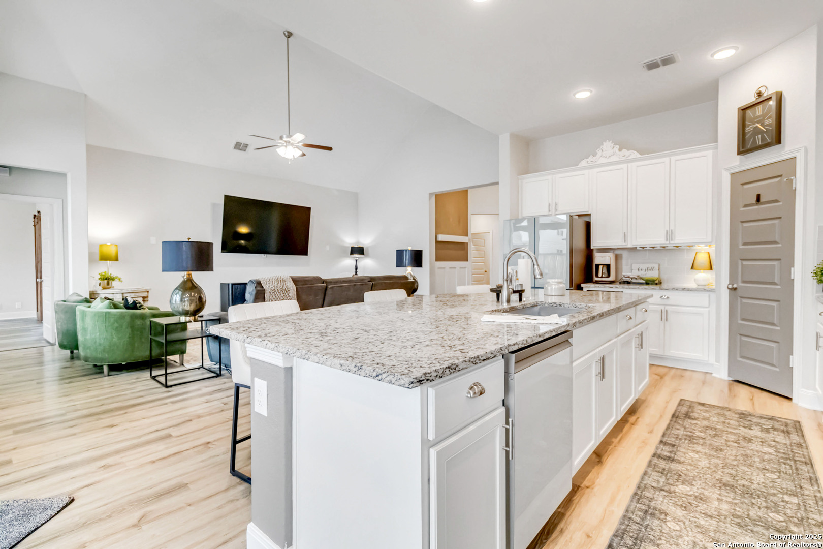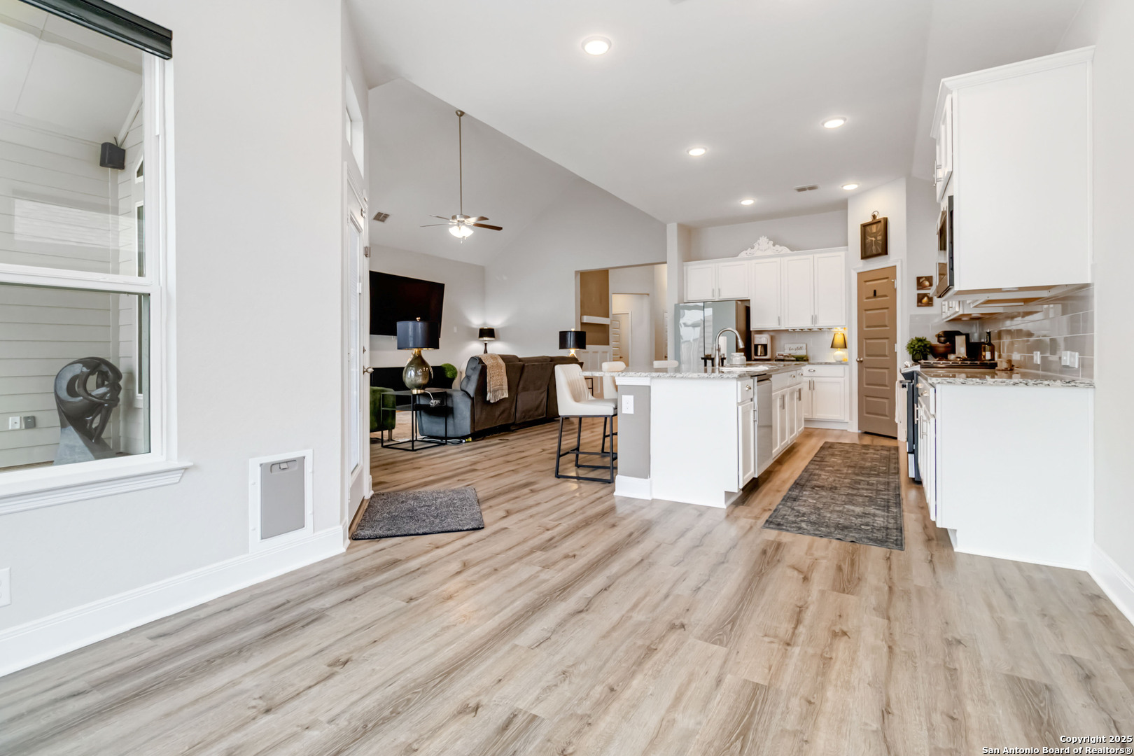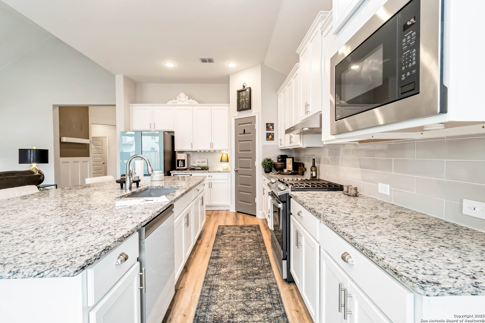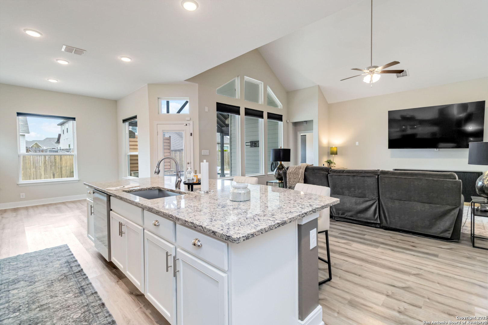 Stunning 4-Bedroom Home with Pool in Highland Grove! Welcome to this exceptional single-story home in the highly sought-after Highland Grove community-just minutes from the charm and history of Gruene! Featuring an open floor plan, this home is designed for modern living with 4 bedrooms and 3 full baths. The spacious kitchen is a chef's dream, complete with an oversized island that overlooks the breakfast area, family room, and covered patio-perfect for entertaining! The primary suite is a true retreat, offering separate vanities, a luxurious oversized shower with elegant ceramic tile, and a Texas-sized walk-in closet. Step outside to your own private oasis-a beautiful pool with a waterfall creates a serene backyard escape. Additional highlights include no carpet throughout, an oversized 2-car garage, and access to the wonderful amenities of this master-planned community. Don't miss your chance to own this stunning home in one of New Braunfels' most desirable neighborhoods! Schedule a showing today!