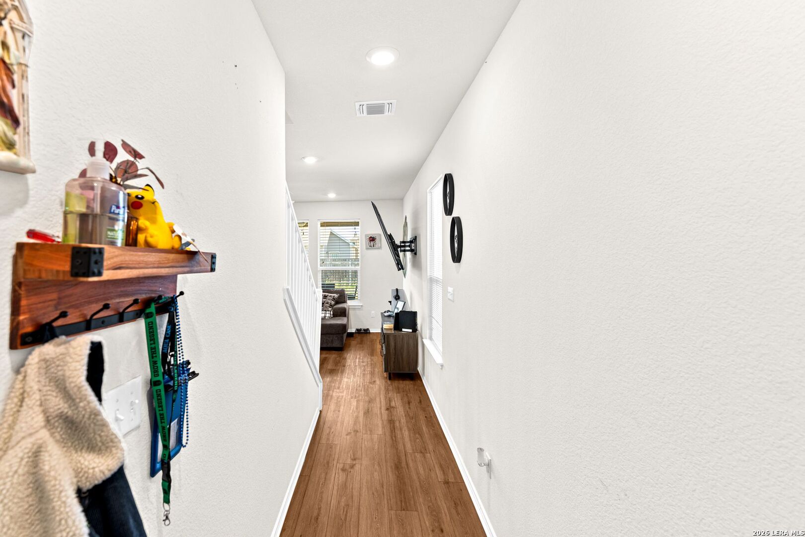 Step into this beautifully designed two-story home that perfectly blends comfort and modern style. The open-concept layout creates a bright and inviting main living space, ideal for both everyday living and entertaining. The kitchen stands out with sleek cabinetry, granite countertops, a stylish tile backsplash, and quality fixtures, offering both function and elegance. Upstairs, the spacious primary suite provides a relaxing retreat with a walk-in closet and a well-appointed ensuite featuring dual vanities, contemporary finishes, and a beautifully tiled shower. Throughout the home, you'll find a mix of durable vinyl plank flooring in main areas and soft carpeting in the bedrooms, along with thoughtful upgrades like ceiling fans and a smart thermostat for added convenience. Step outside to enjoy the covered back patio-perfect for unwinding or hosting guests.