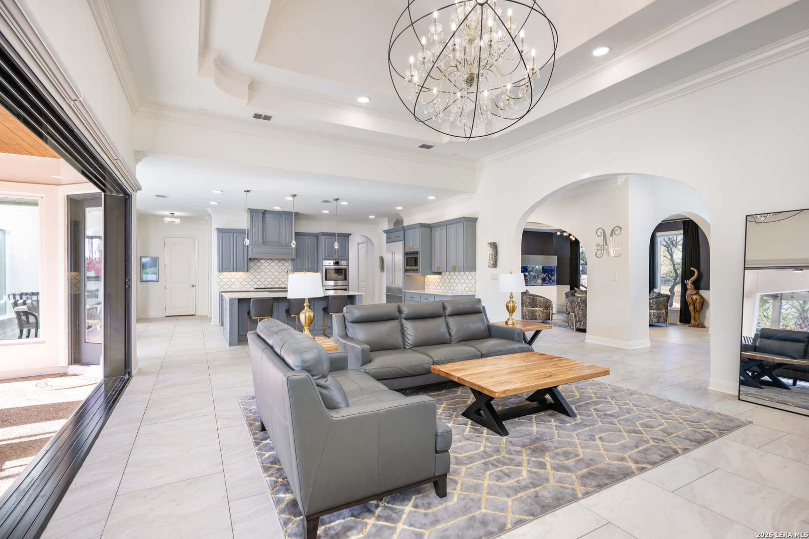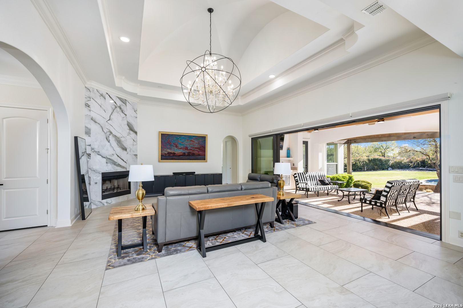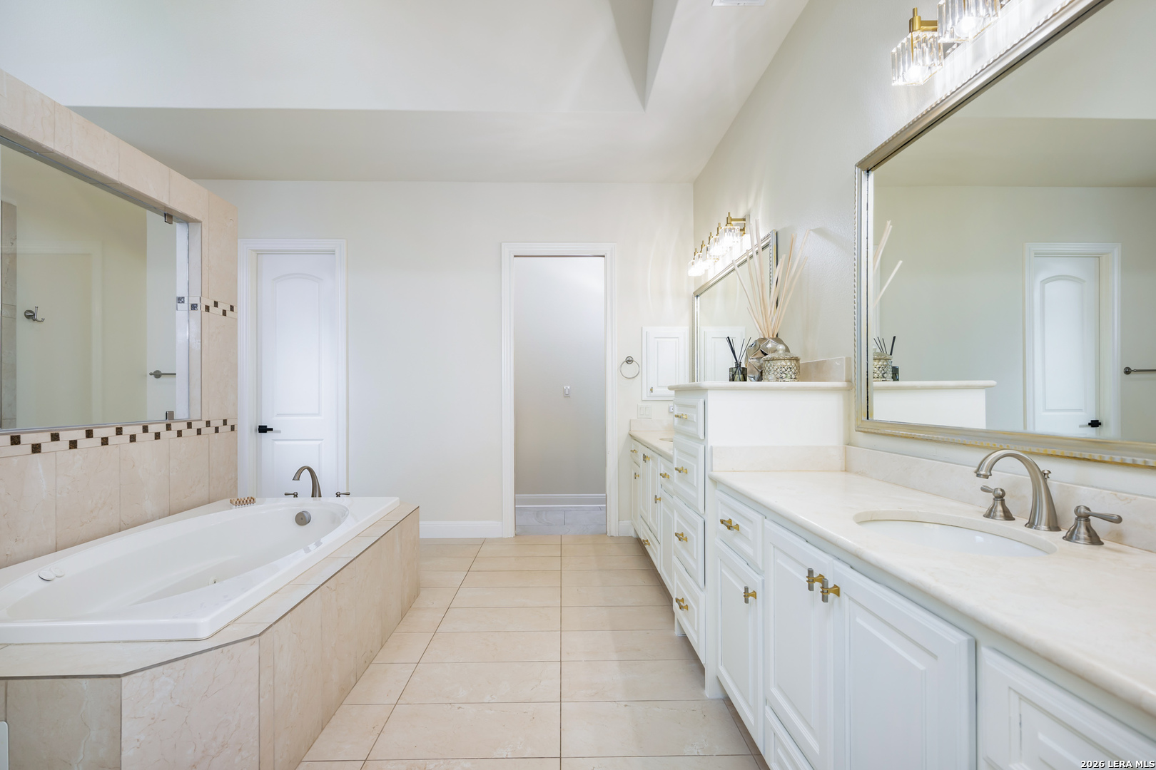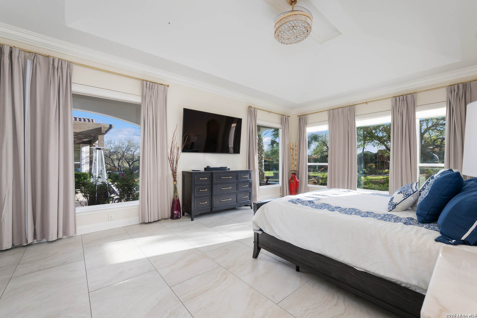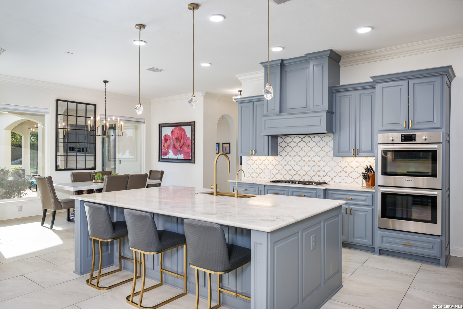 Timeless in design, this custom-built home in the gated Heights at Stone Oak Waterford has been extensively updated and upgraded. The perfected floorplan covers every base, and the indoor/outdoor flow allows for an elevated living experience. Fresh exterior paint, a circular driveway, a Cantera stone fountain, beautifully maintained grounds, and an oversized custom iron front door with Flemish glass create a strong architectural presence. Immediate views upon entry draw your eye to a park-like, resort-style backyard. Turn-key and move-in ready, this home has been meticulously maintained and needs nothing! MAIN LIVING AREAS | The main living area features a floor-to-ceiling stone fireplace and opens to wall-to-wall sliding doors, creating a seamless connection to the outdoor living space. The kitchen has been updated with added custom drawers, a new sink, updated hardware, natural stone countertops, double ovens, gas cooking, Bosch stainless steel appliances, and custom cabinetry. A wet bar and large wine cellar enhance the home's entertaining capabilities. DOWNSTAIRS LIVING | A downstairs guest suite with a full bath and walk-in shower offers privacy and flexibility for guests or multigenerational living. The primary suite includes a sitting area and a well-appointed bathroom with a garden tub, glass walk-in shower, dual vanities, and multiple walk-in closets, along with direct access to the backyard. The home also features a beautiful flex space with extra-large windows and access to the backyard, as well as a wet bar area that is perfect for a game room, theater room, indoor gym, or overall flex space. UPSTAIRS | Three generously sized bedrooms, two bathrooms, a loft/sitting room, and an additional office or flex space with exceptional views. OUTDOOR LIVING | The outdoor space is designed for both relaxation and recreation, with a pool (heated), waterfall, hot tub, gazebo, newly added turf, a designated large dog run, a designated play area, and a private basketball court. ADDITIONAL FEATURES | Additional features include a 3-car side-entry garage, two living areas, and a formal dining space. Double entry access from the garage, a large mudroom, and an oversized laundry room with a large walk-in pantry add to the home's functionality. HIGHLIGHTS | Resort-style backyard with pool, waterfall, hot tub, gazebo, and private basketball court | Over 3,000 sq ft of turf | Wall-to-wall sliding doors | Two tankless water heaters | Full bathroom remodel in bedroom 3 | Designated large dog run | Updated kitchen with Bosch stainless steel appliances, gas cooking, double ovens, natural stone countertops, new sink, hardware, and added custom drawers | Large wine cellar and wet bar | Floor-to-ceiling stone fireplace | Custom iron front door with Flemish glass | Fresh exterior/interior paint | 3-car side-entry garage | Double entry garage access | Large mudroom | Oversized laundry room with sink/countertop and room for two stackable washer/dryers sets and then some | large walk-in pantry | Spacious flex room with backyard access | Upstairs game room and additional office/flex space | Generously sized bedrooms. Floor plan available. Must show pre-approval or proof of funds for showings.