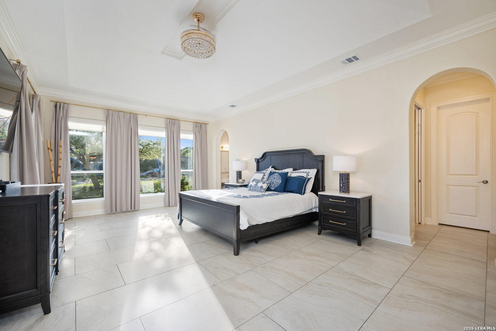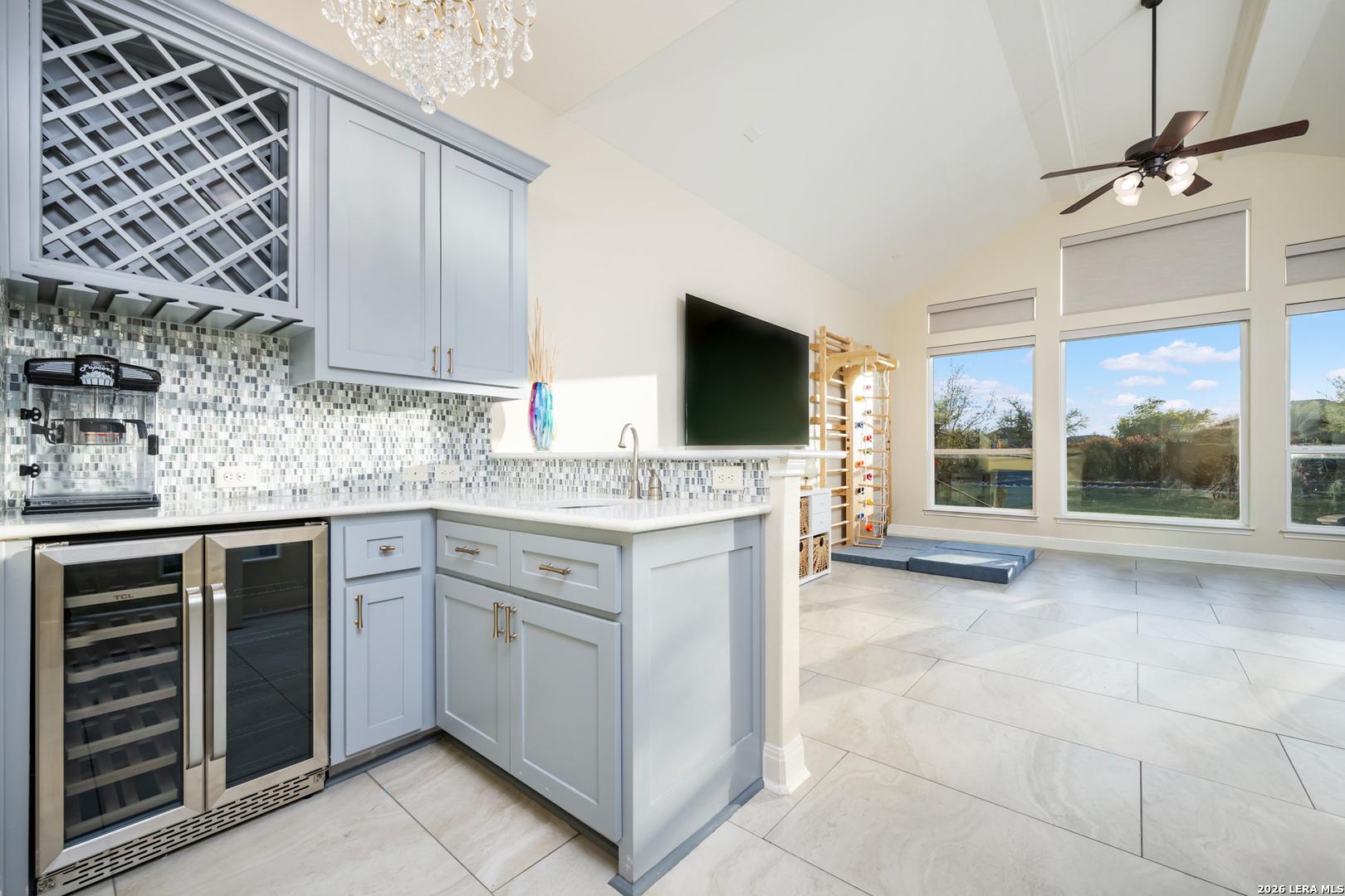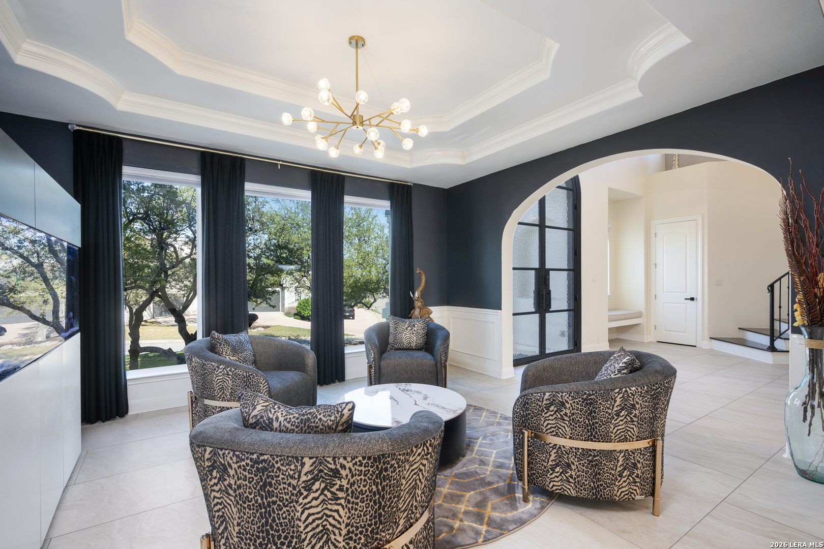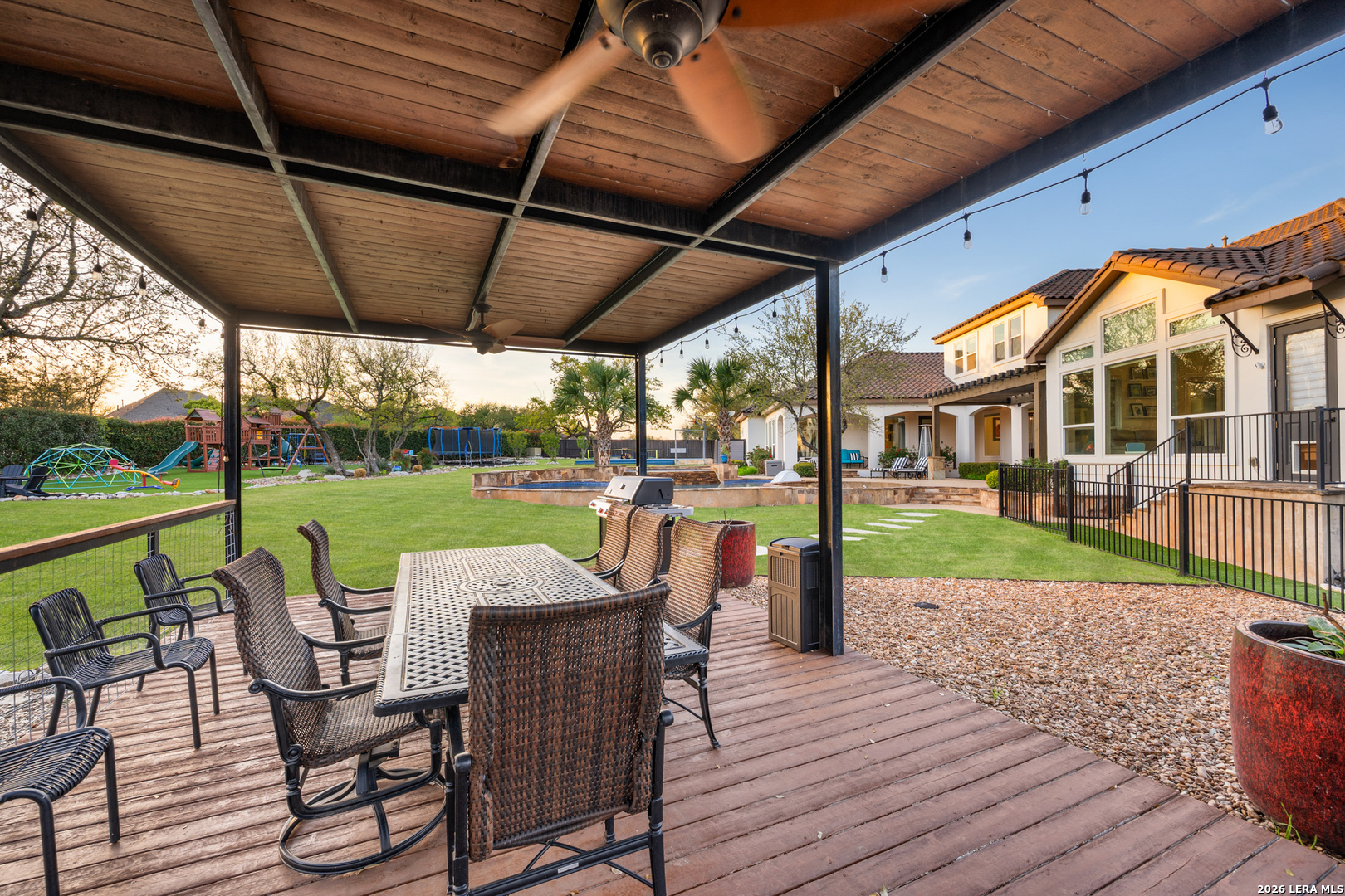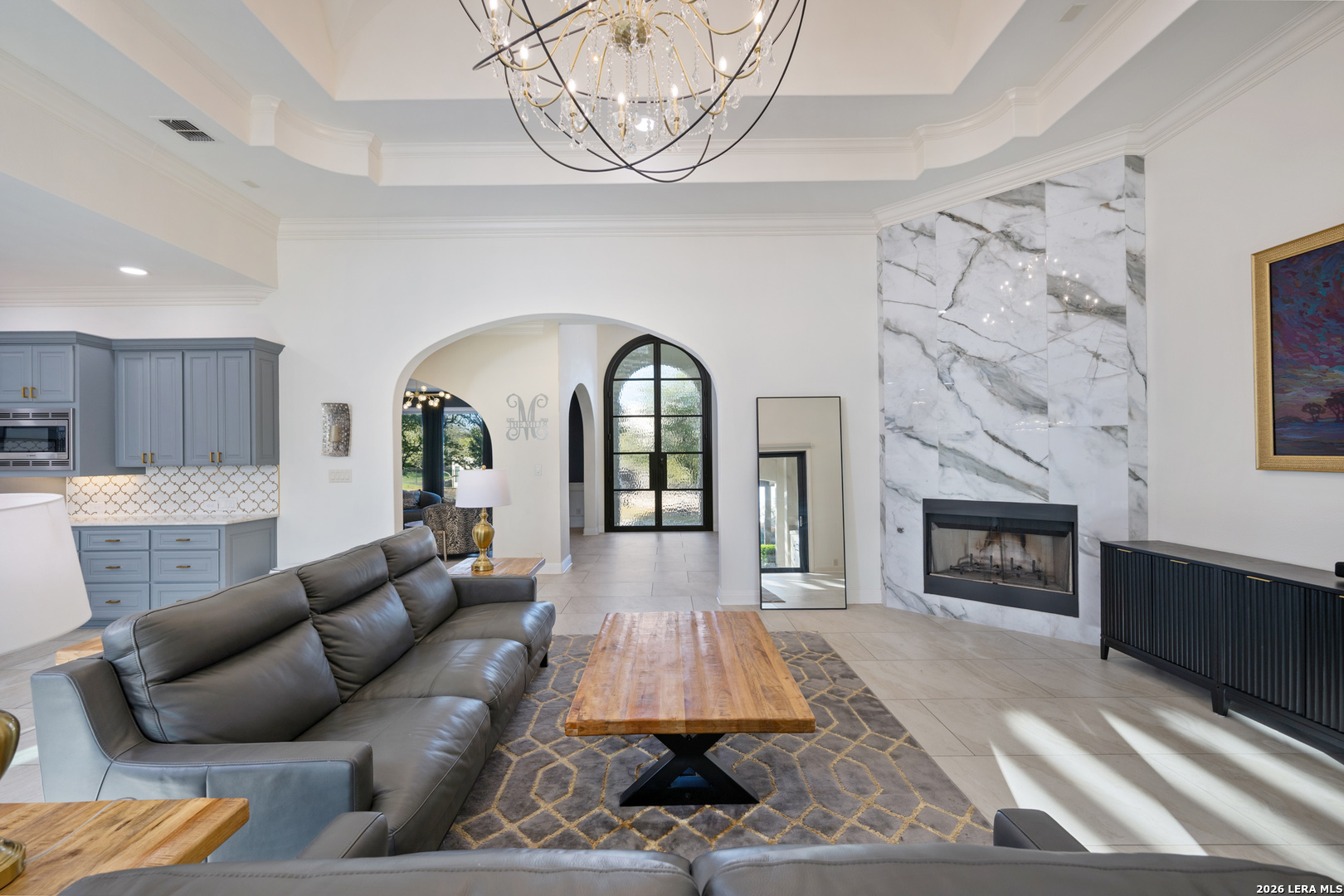 Timeless in design, this custom-built home in the gated Heights at Stone Oak Waterford has been extensively updated and upgraded. The perfected floorplan covers every base, and the indoor/outdoor flow allows for an elevated living experience. Fresh exterior paint, a circular driveway, a Cantera stone fountain, beautifully maintained grounds, and an oversized custom iron front door with Flemish glass create a strong architectural presence. Immediate views upon entry draw your eye to a park-like, resort-style backyard. Turn-key and move-in ready, this home has been meticulously maintained and needs nothing! MAIN LIVING AREAS | The main living area features a floor-to-ceiling stone fireplace and opens to wall-to-wall sliding doors, creating a seamless connection to the outdoor living space. The kitchen has been updated with added custom drawers, a new sink, updated hardware, natural stone countertops, double ovens, gas cooking, Bosch stainless steel appliances, and custom cabinetry. A wet bar and large wine cellar enhance the home's entertaining capabilities. DOWNSTAIRS LIVING | A downstairs guest suite with a full bath and walk-in shower offers privacy and flexibility for guests or multigenerational living. The primary suite includes a sitting area and a well-appointed bathroom with a garden tub, glass walk-in shower, dual vanities, and multiple walk-in closets, along with direct access to the backyard. The home also features a beautiful flex space with extra-large windows and access to the backyard, as well as a wet bar area that is perfect for a game room, theater room, indoor gym, or overall flex space. UPSTAIRS | Three generously sized bedrooms, two bathrooms, a loft/sitting room, and an additional office or flex space with exceptional views. OUTDOOR LIVING | The outdoor space is designed for both relaxation and recreation, with a pool (heated), waterfall, hot tub, gazebo, newly added turf, a designated large dog run, a designated play area, and a private basketball court. ADDITIONAL FEATURES | Additional features include a 3-car side-entry garage, two living areas, and a formal dining space. Double entry access from the garage, a large mudroom, and an oversized laundry room with a large walk-in pantry add to the home's functionality. HIGHLIGHTS | Resort-style backyard with pool, waterfall, hot tub, gazebo, and private basketball court | Over 3,000 sq ft of turf | Wall-to-wall sliding doors | Two tankless water heaters | Full bathroom remodel in bedroom 3 | Designated large dog run | Updated kitchen with Bosch stainless steel appliances, gas cooking, double ovens, natural stone countertops, new sink, hardware, and added custom drawers | Large wine cellar and wet bar | Floor-to-ceiling stone fireplace | Custom iron front door with Flemish glass | Fresh exterior/interior paint | 3-car side-entry garage | Double entry garage access | Large mudroom | Oversized laundry room with sink/countertop and room for two stackable washer/dryers sets and then some | large walk-in pantry | Spacious flex room with backyard access | Upstairs game room and additional office/flex space | Generously sized bedrooms. Floor plan available. Must show pre-approval or proof of funds for showings.